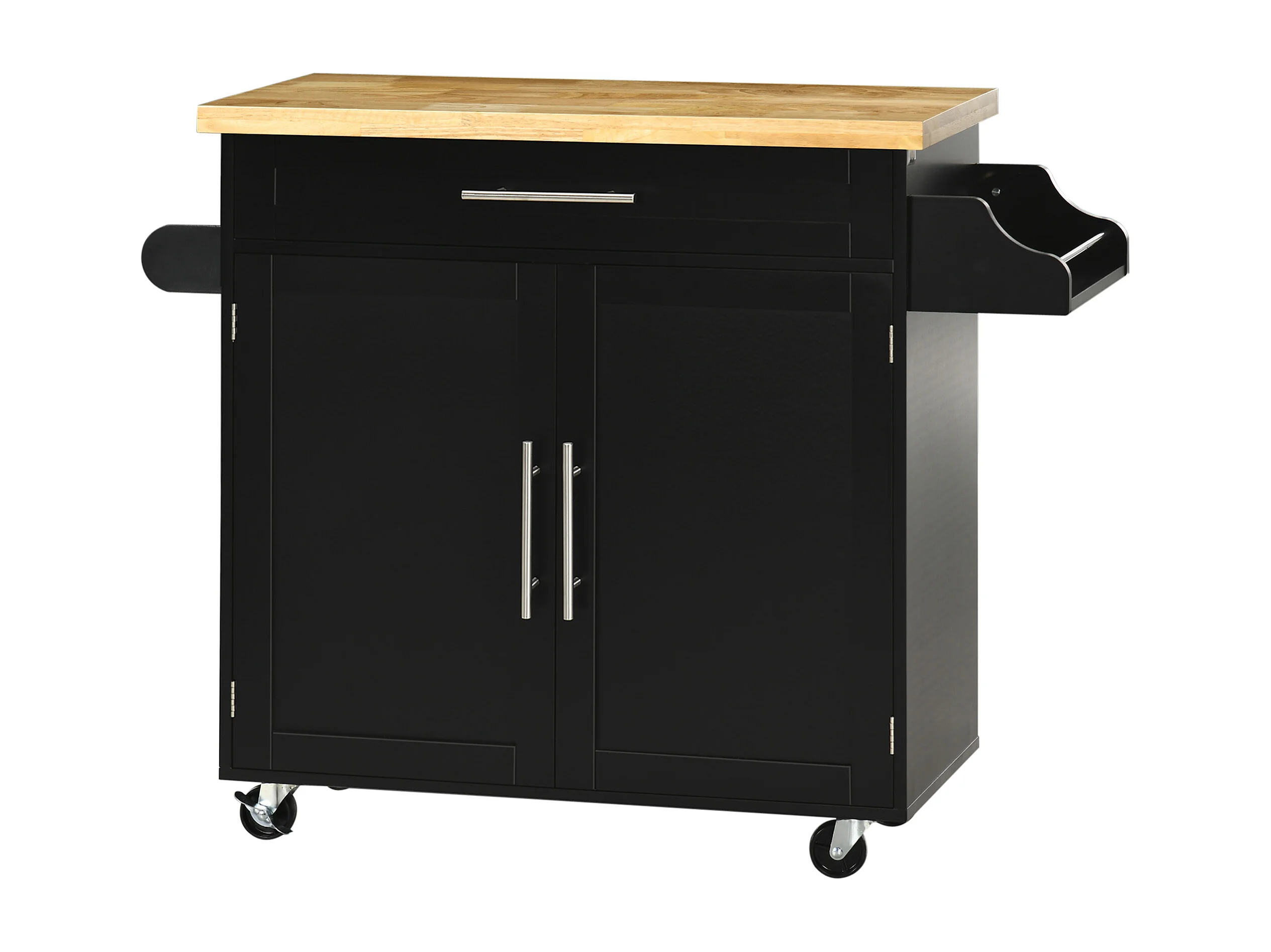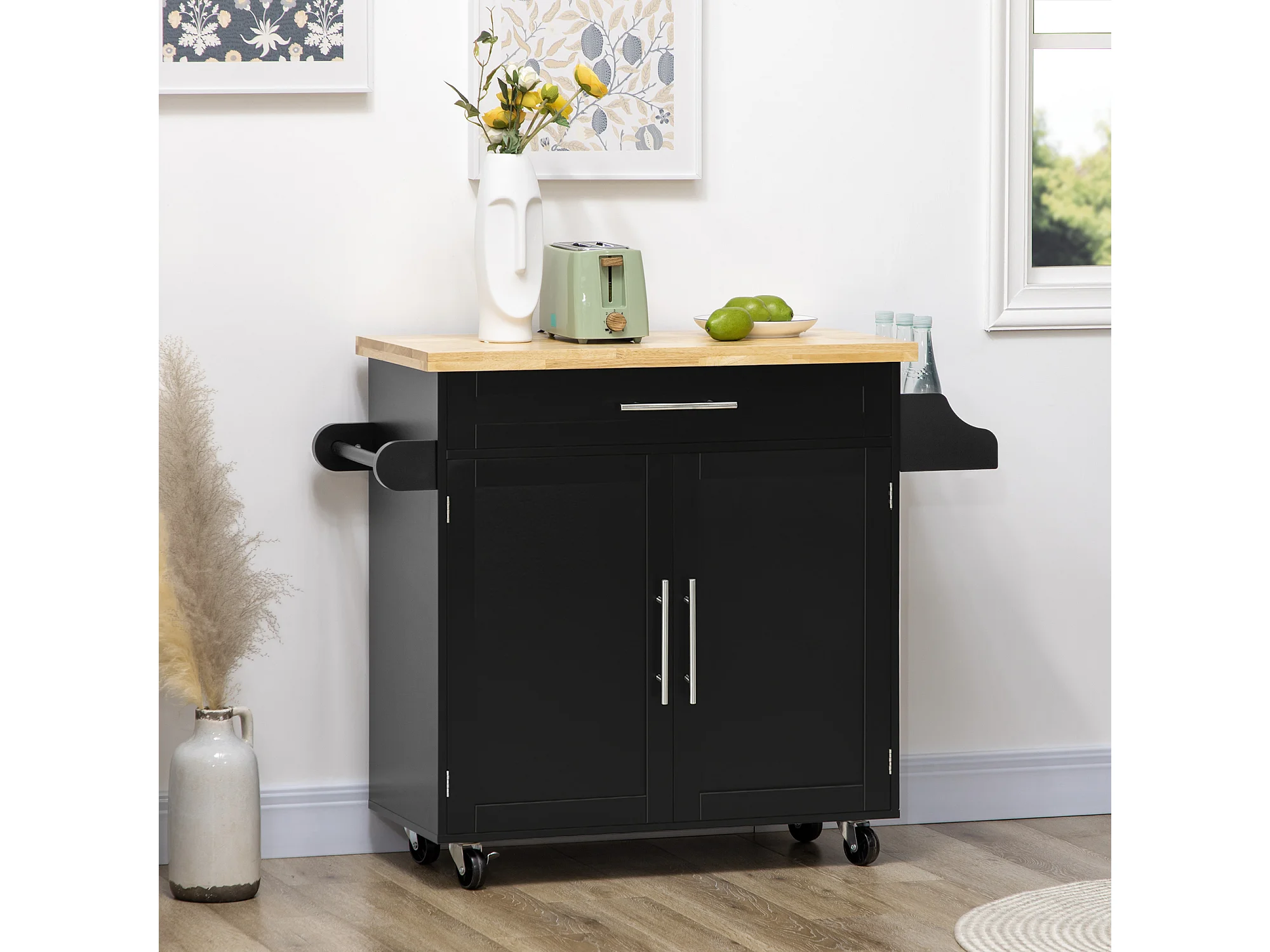 Carrello cucina in legno con 2 cassetti armadietto e ruote nero