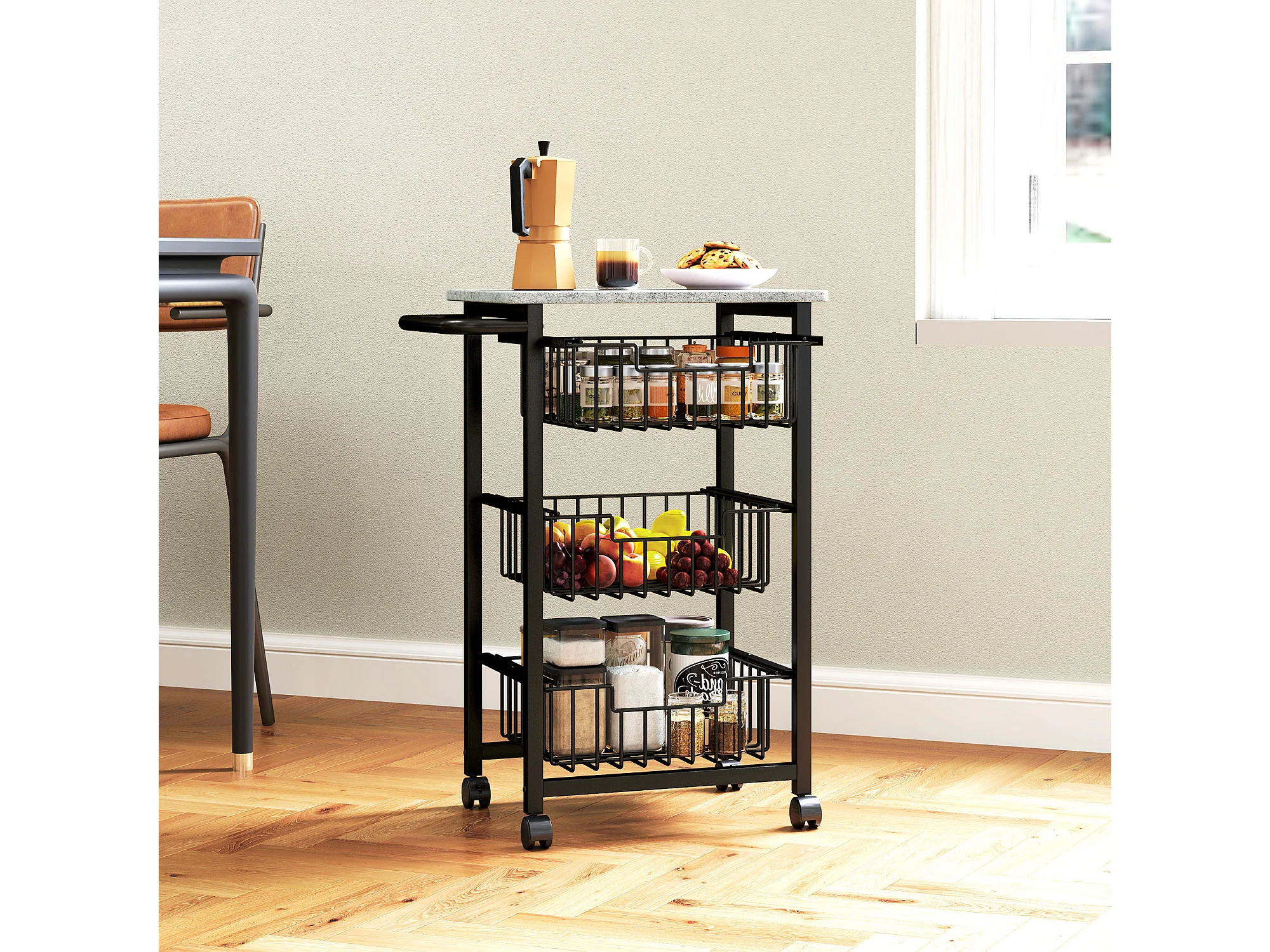 carrello cucina a 4 ripiani, carrellino cucina salvaspazio con cestini estraibili