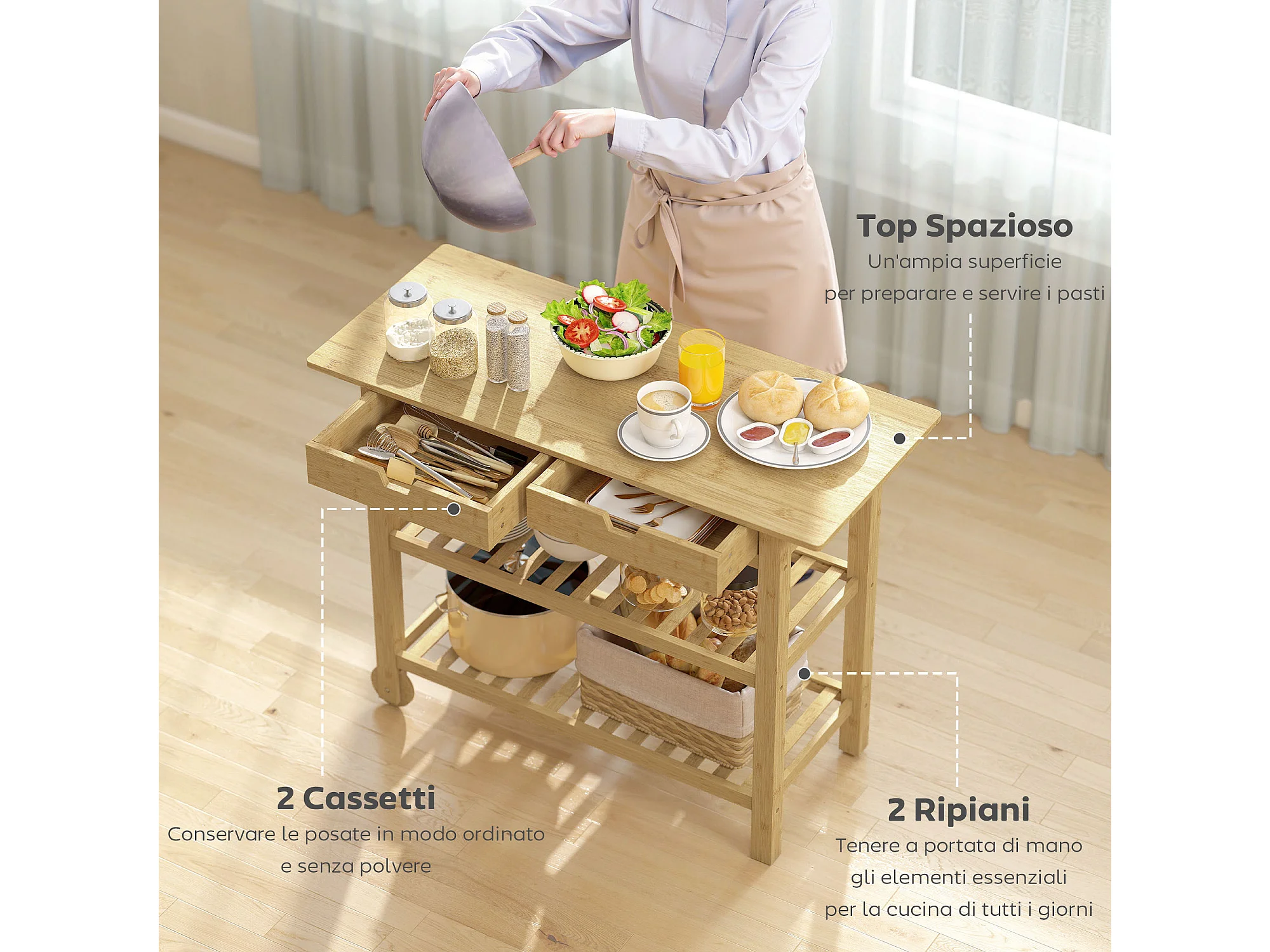 Carrello cucina in bambù con 2 rotelle e 2 gambe carrello cucina salvaspazio