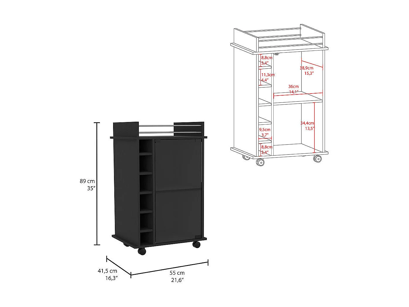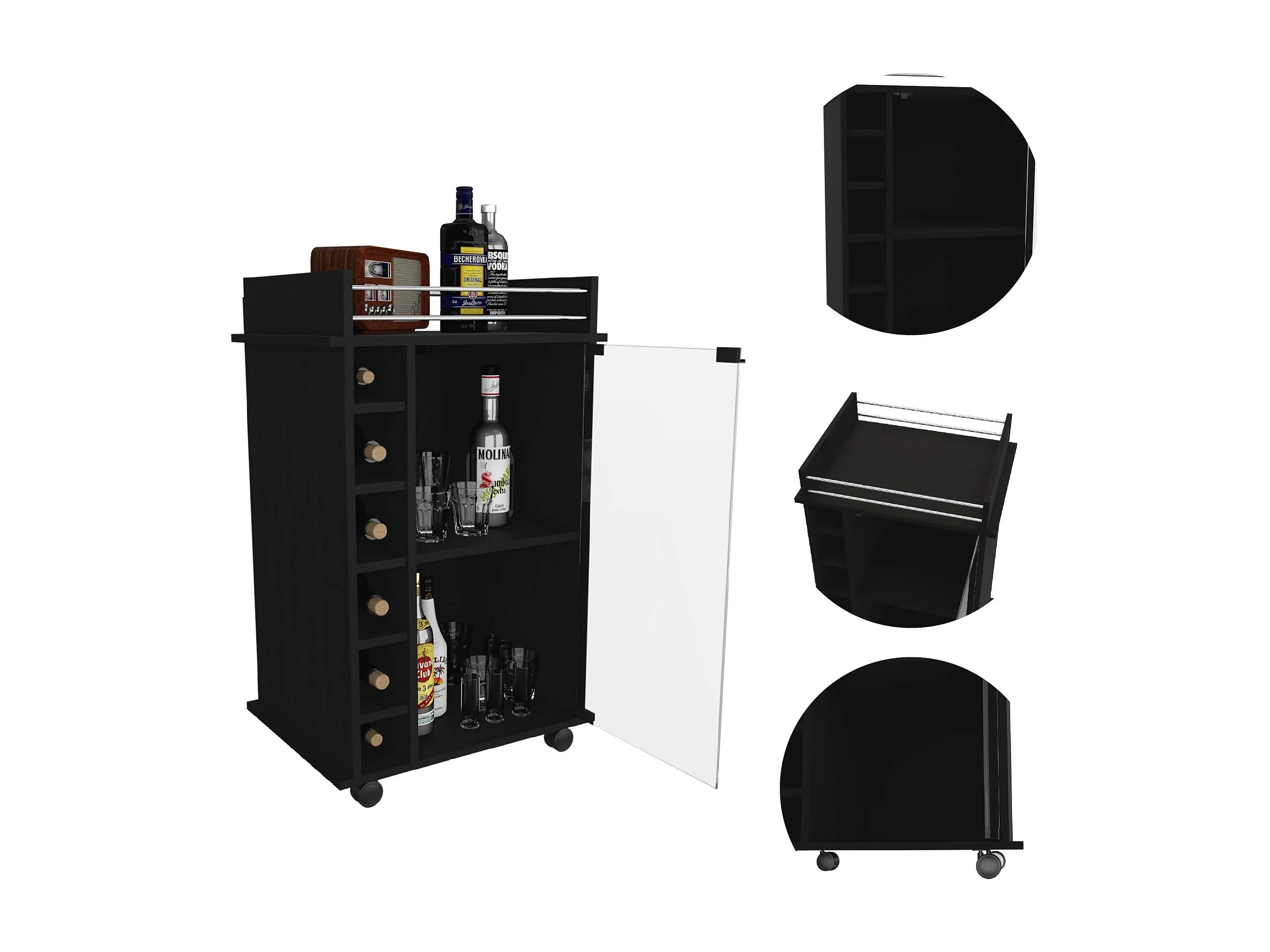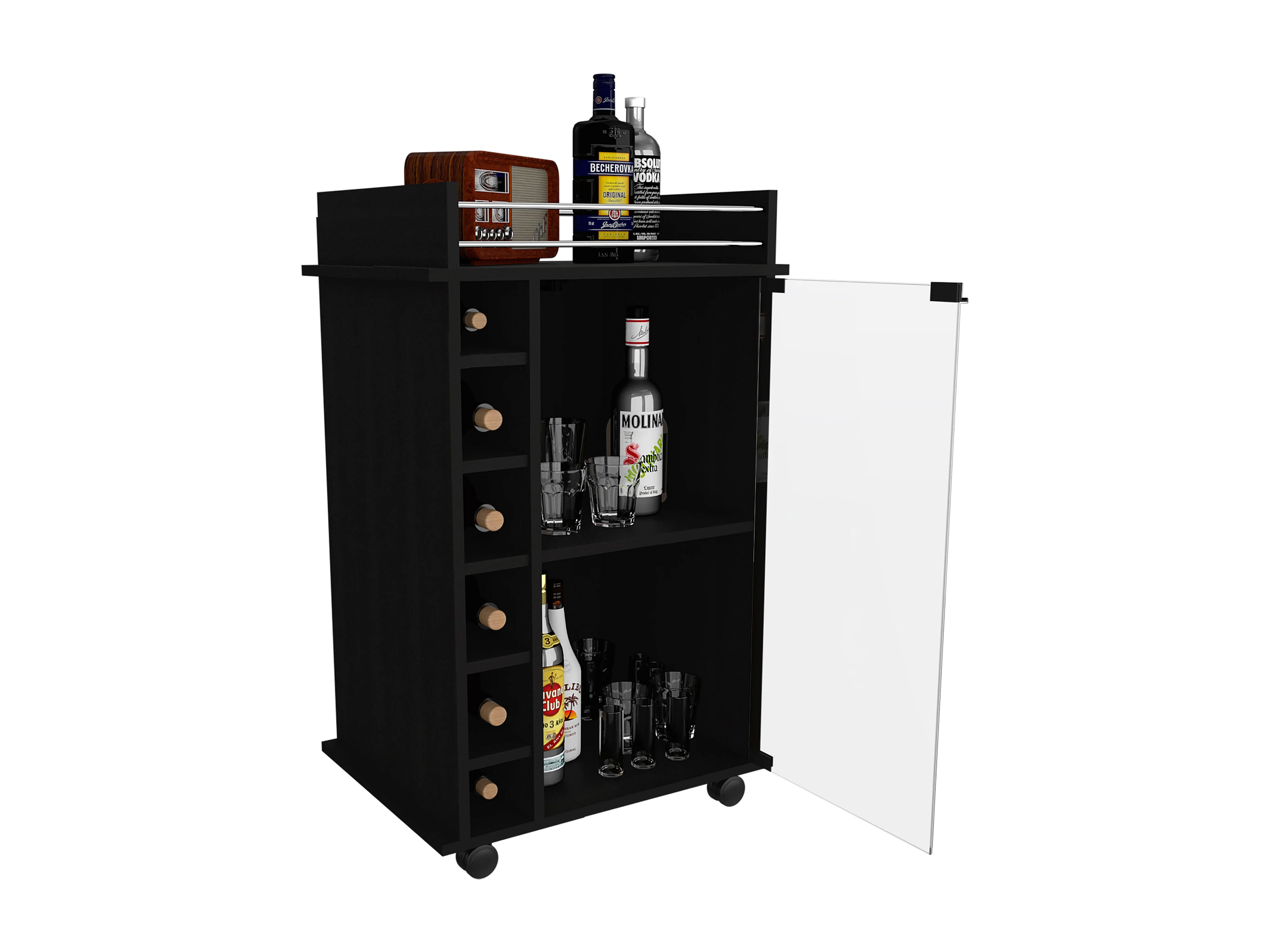 Carrello bar Dukat, con ruote e anta in vetro