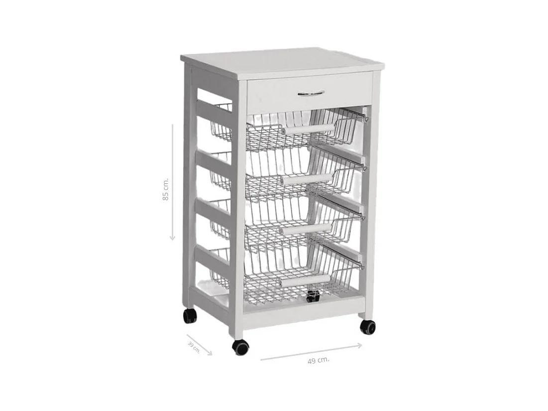 Carrello da cucina 4 cestini estraibili ed un cassetto Vesuvio colore rovere