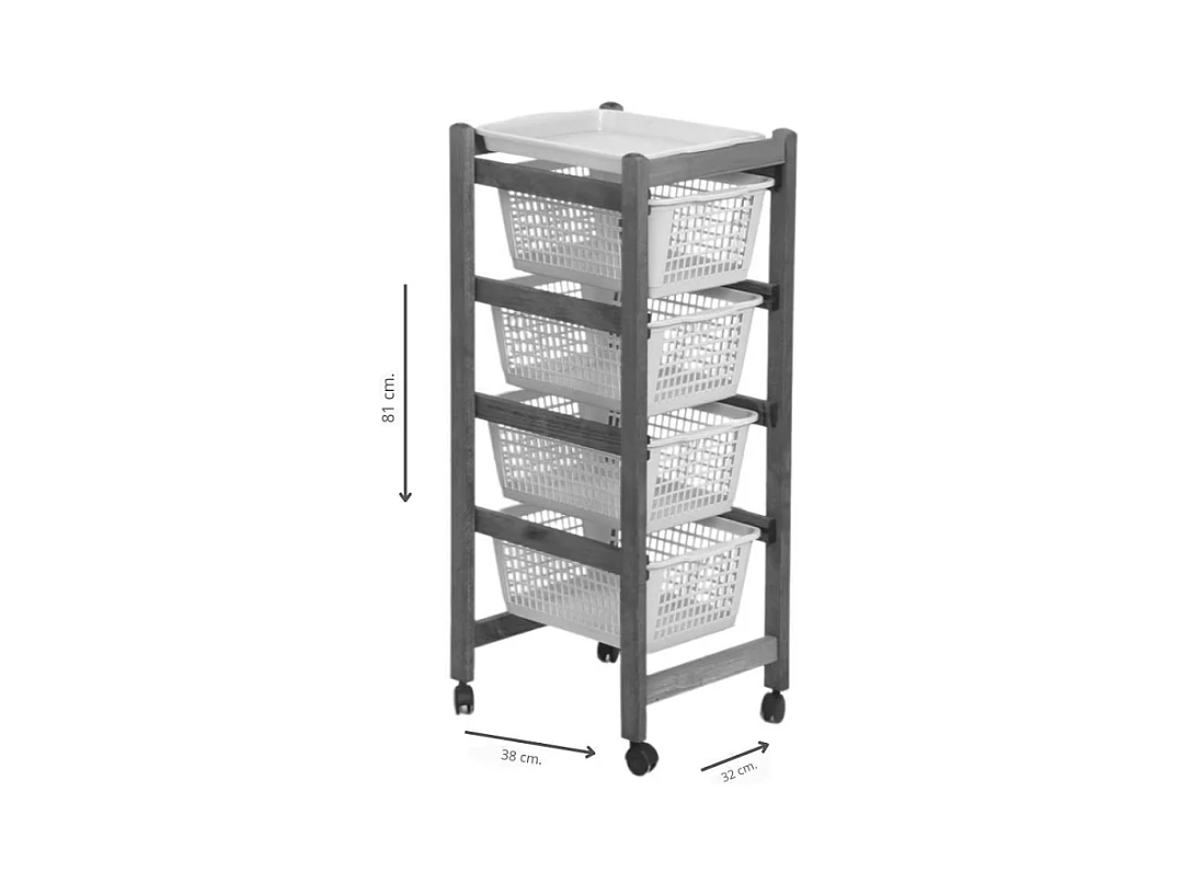 Carrello da cucina 4 cestini estraibili ed un cassetto Vesuvio colore rovere