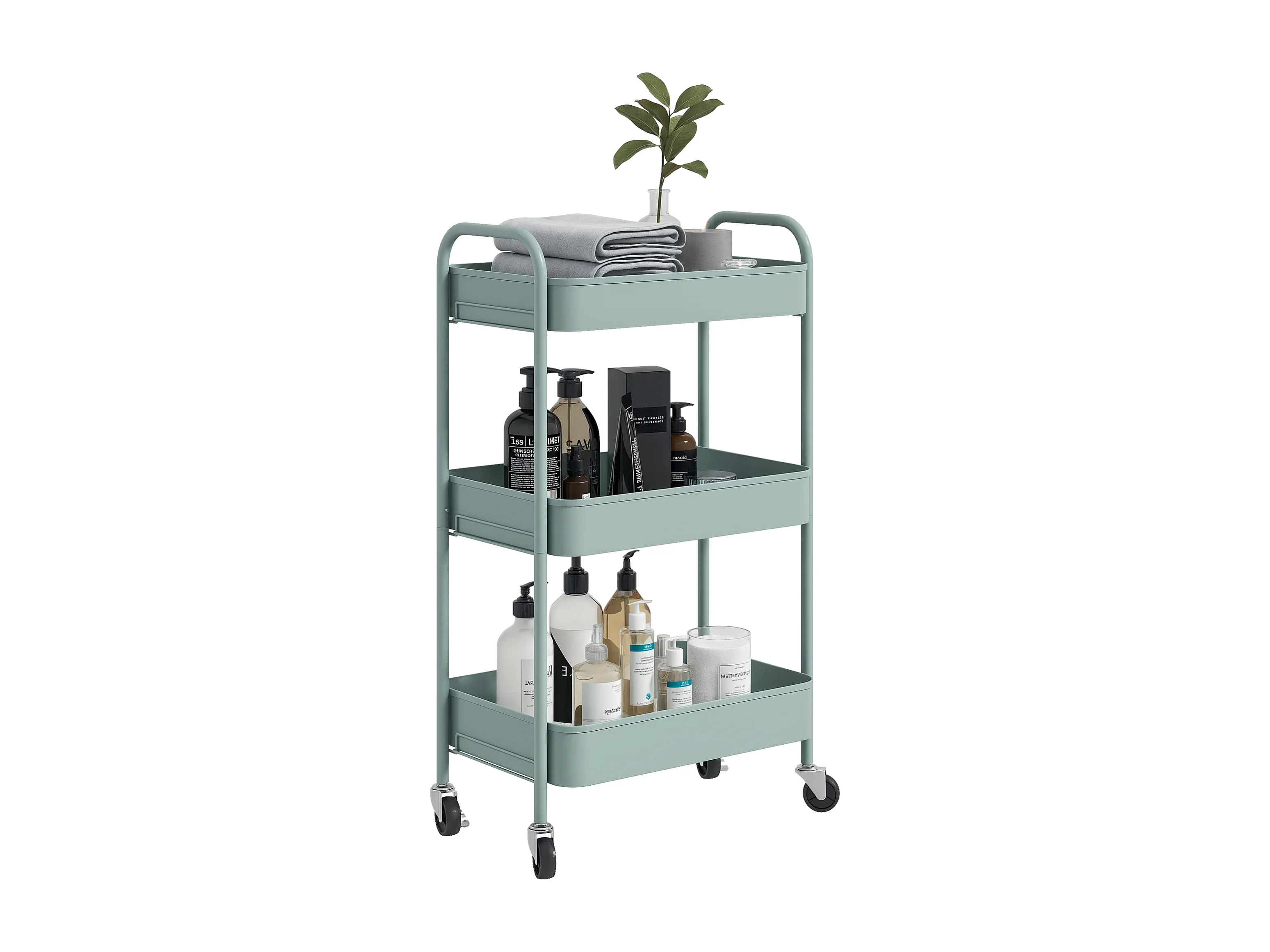 Carrello da cucina a 3 livelli in acciaio con maniglie azzurro