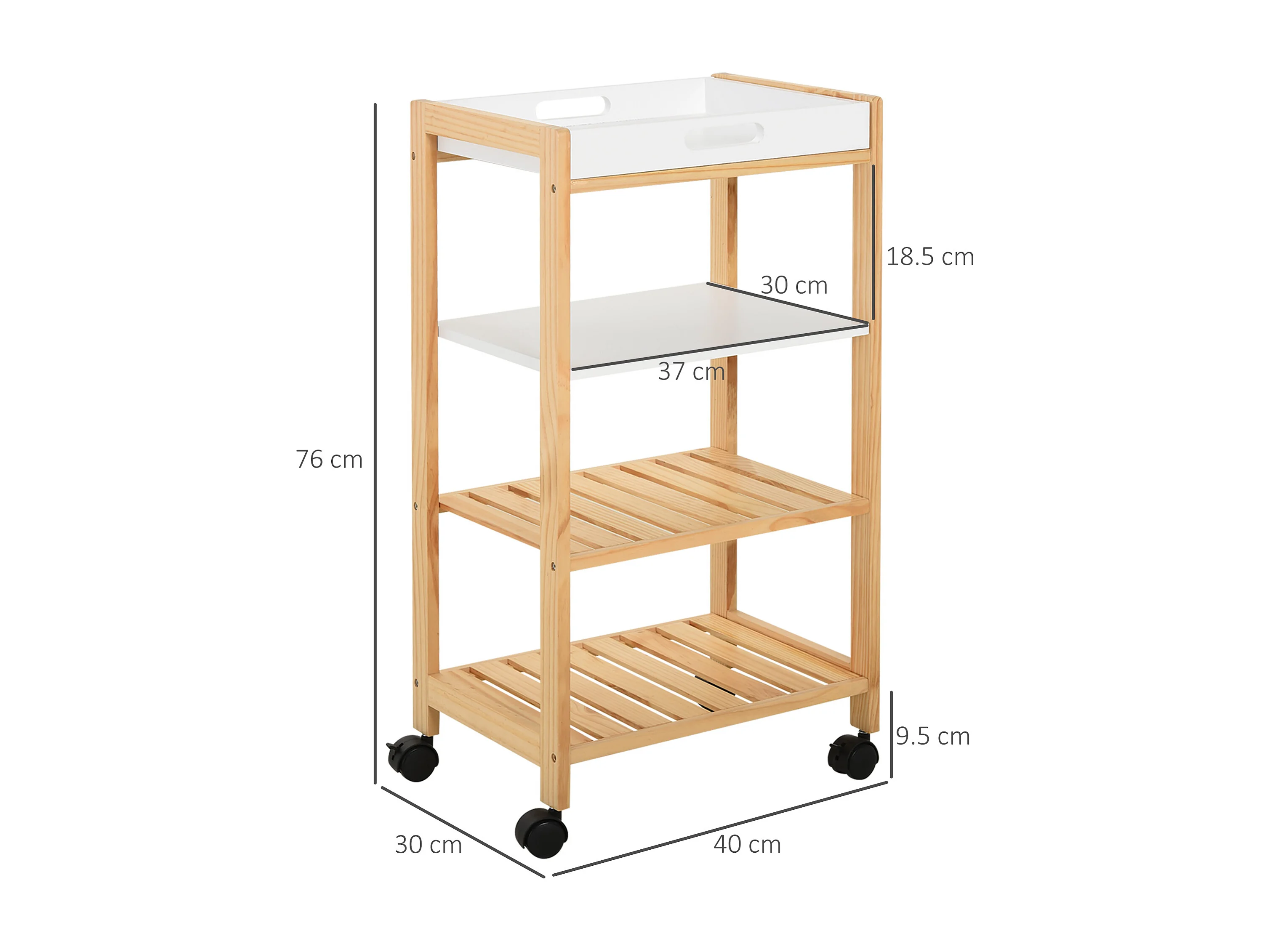 Carrello da cucina a 4 livelli in mdf e legno di pino