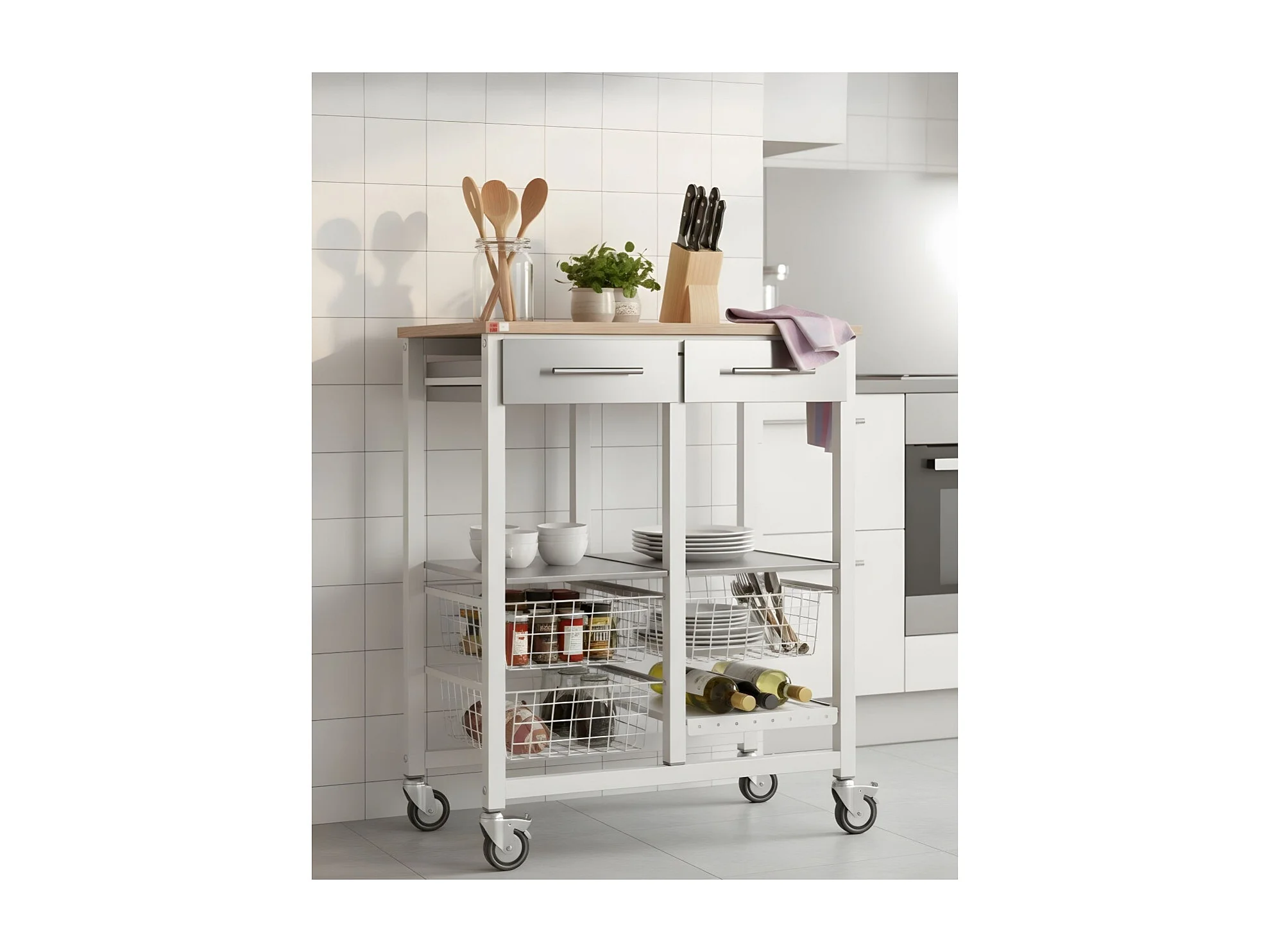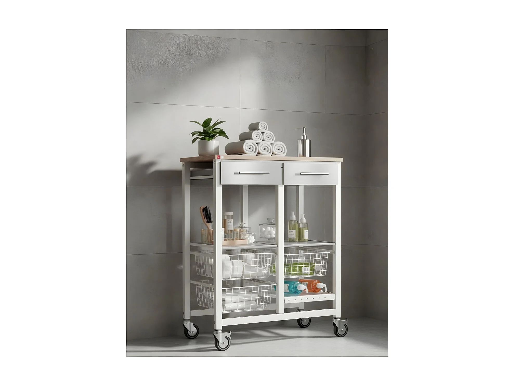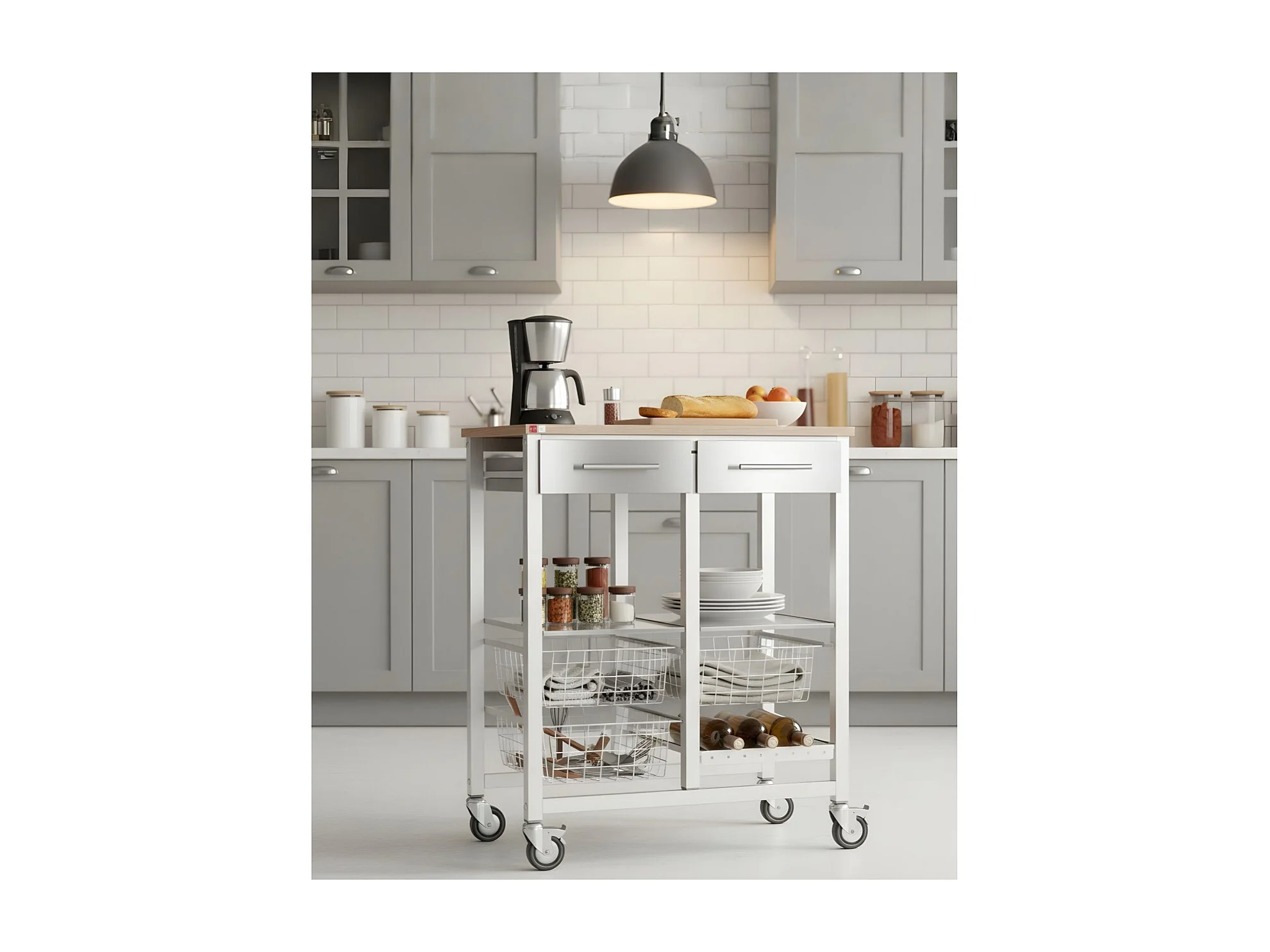 Carrello da cucina, Carrello portatutto - colore Bianco, Acciaio inox, Olmo - 91,5*71*43 cm - ONDA DOBLE