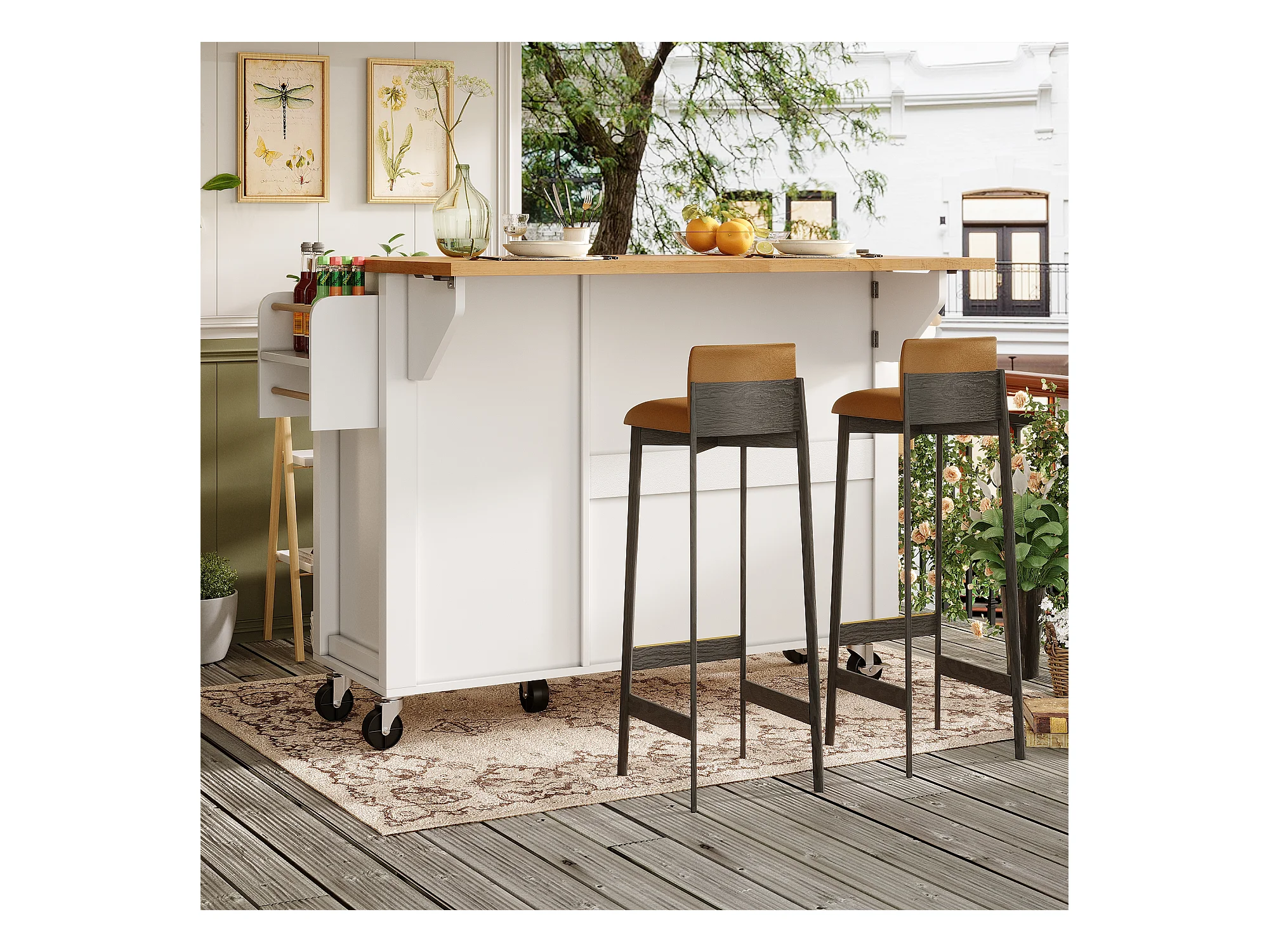 Carrello da cucina con 3 ante, 1 cassetto, portasciugamani e porta spezie, design tavolo pieghevole, colori bianco e naturale