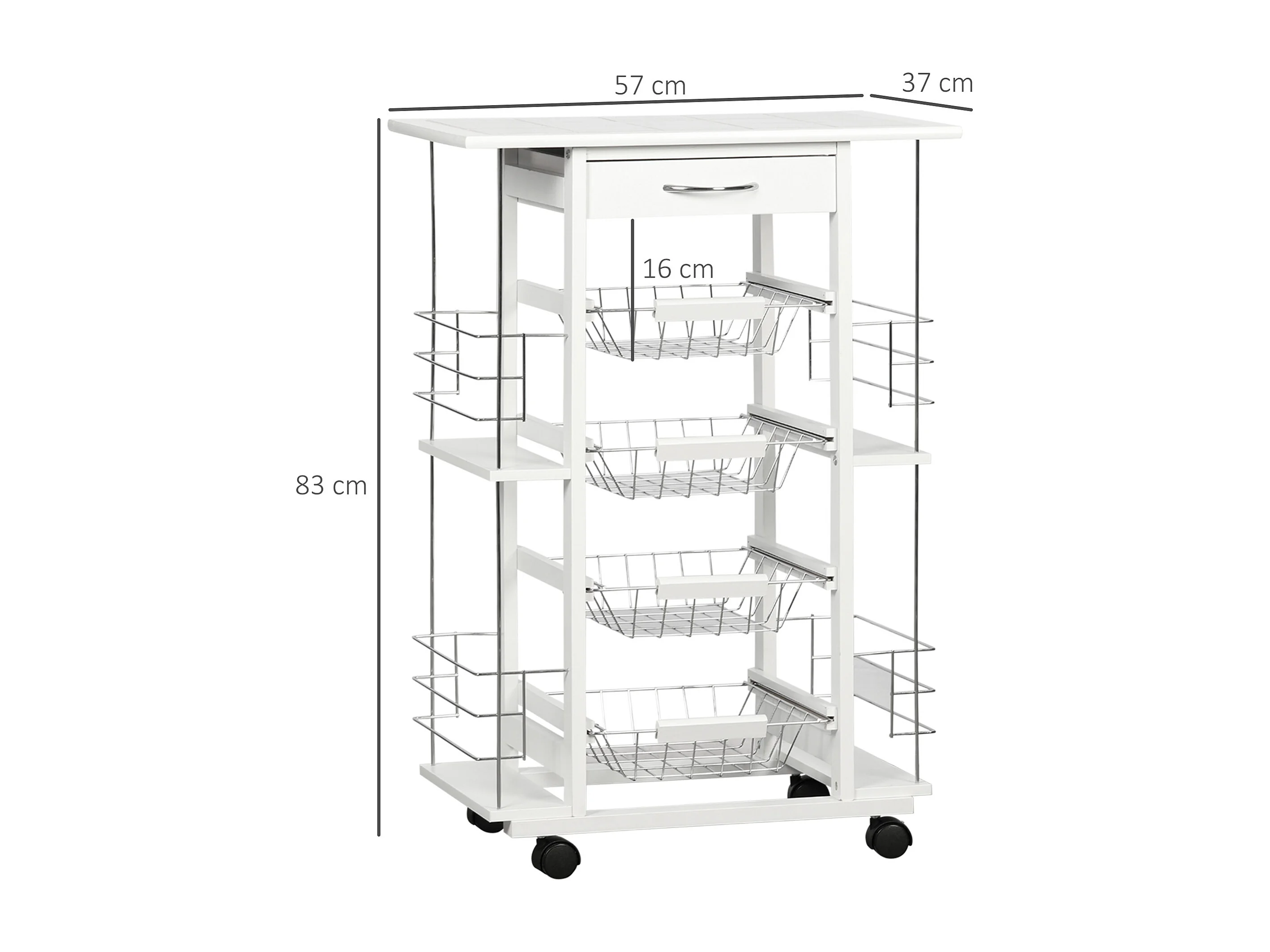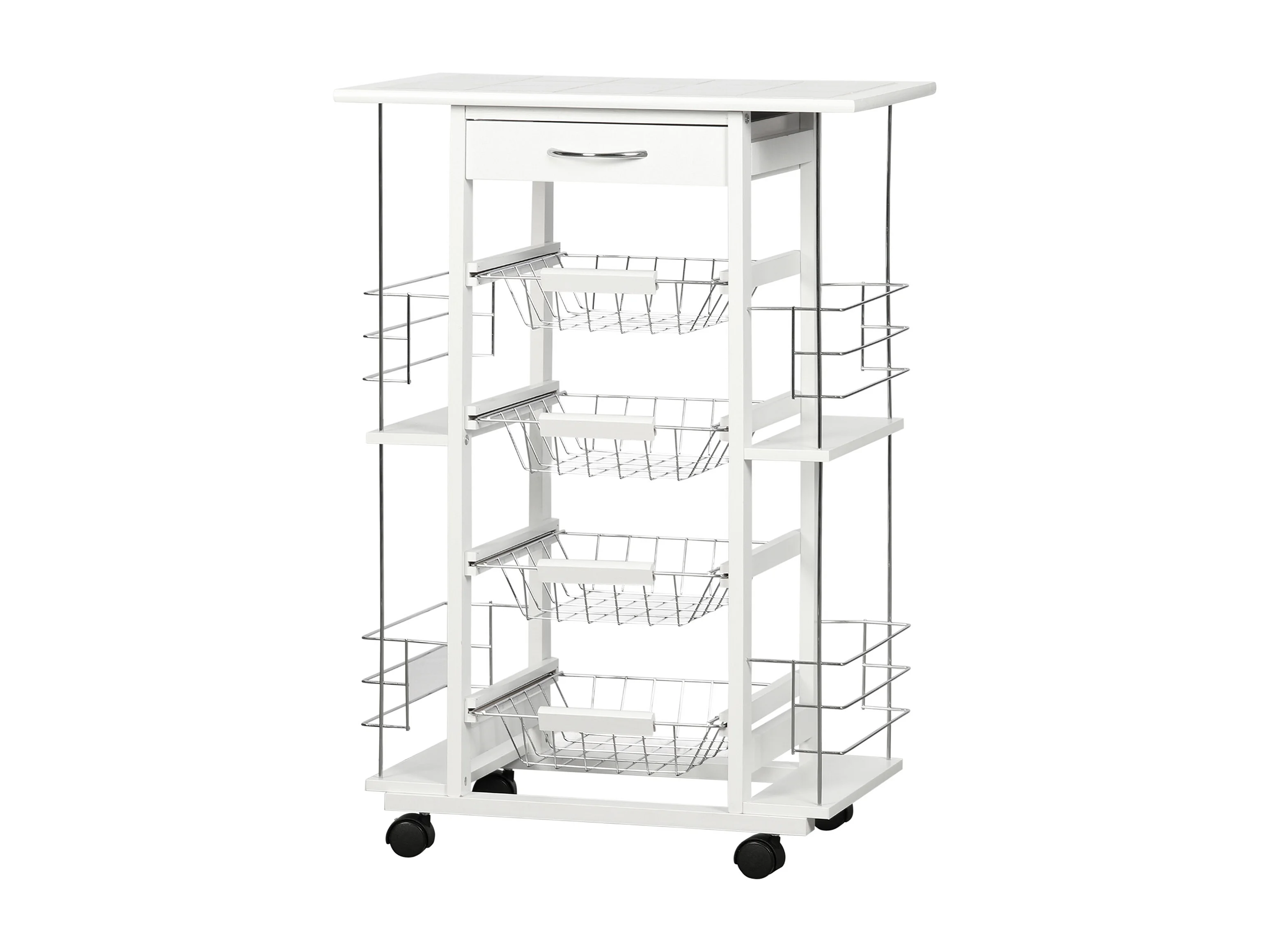 Carrello da cucina con cassetto, 4 cesti e 4 ripiani bianco