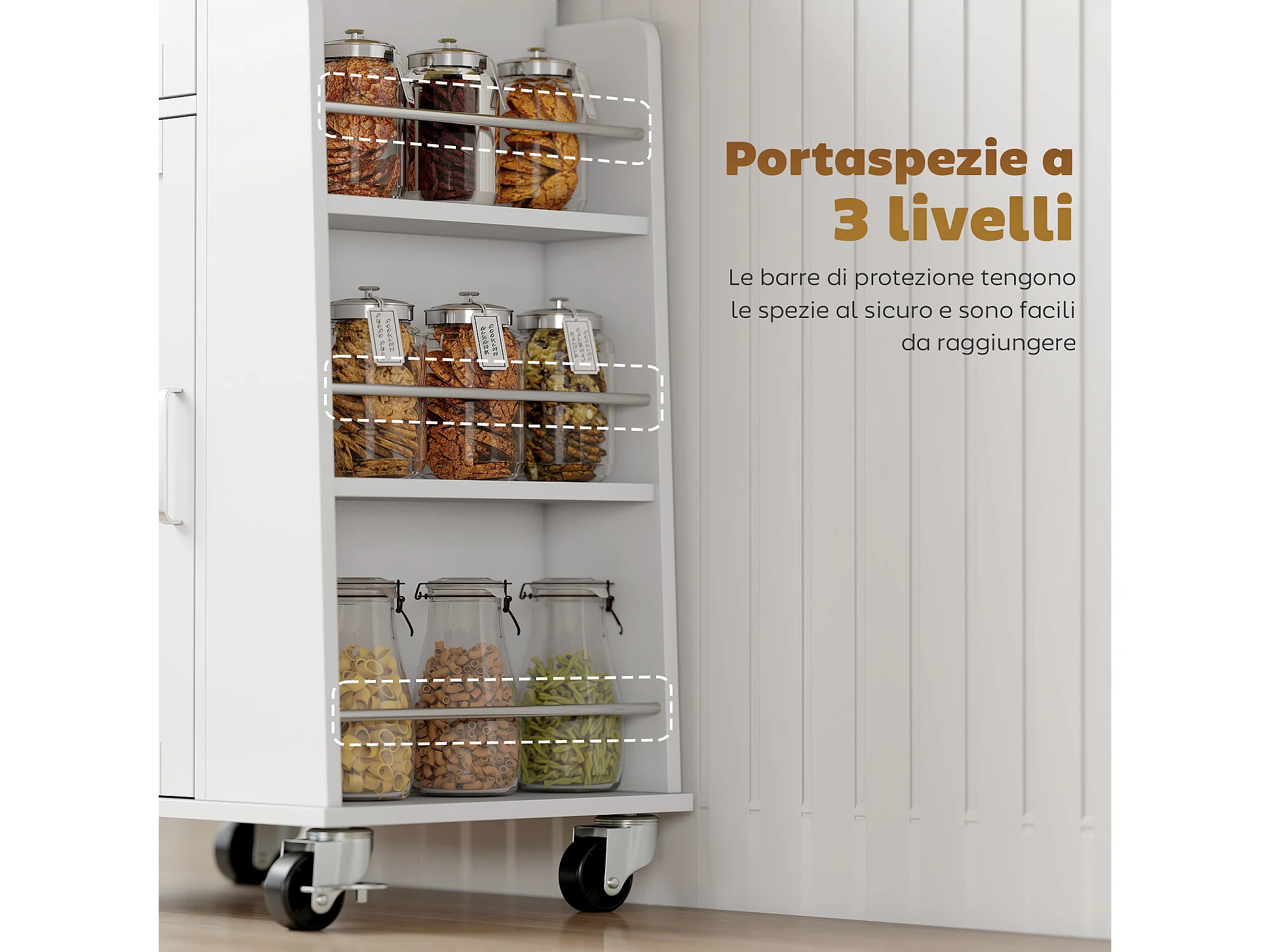 Carrello da cucina con cassetto portasciugamani e 3 portaspezie bianco