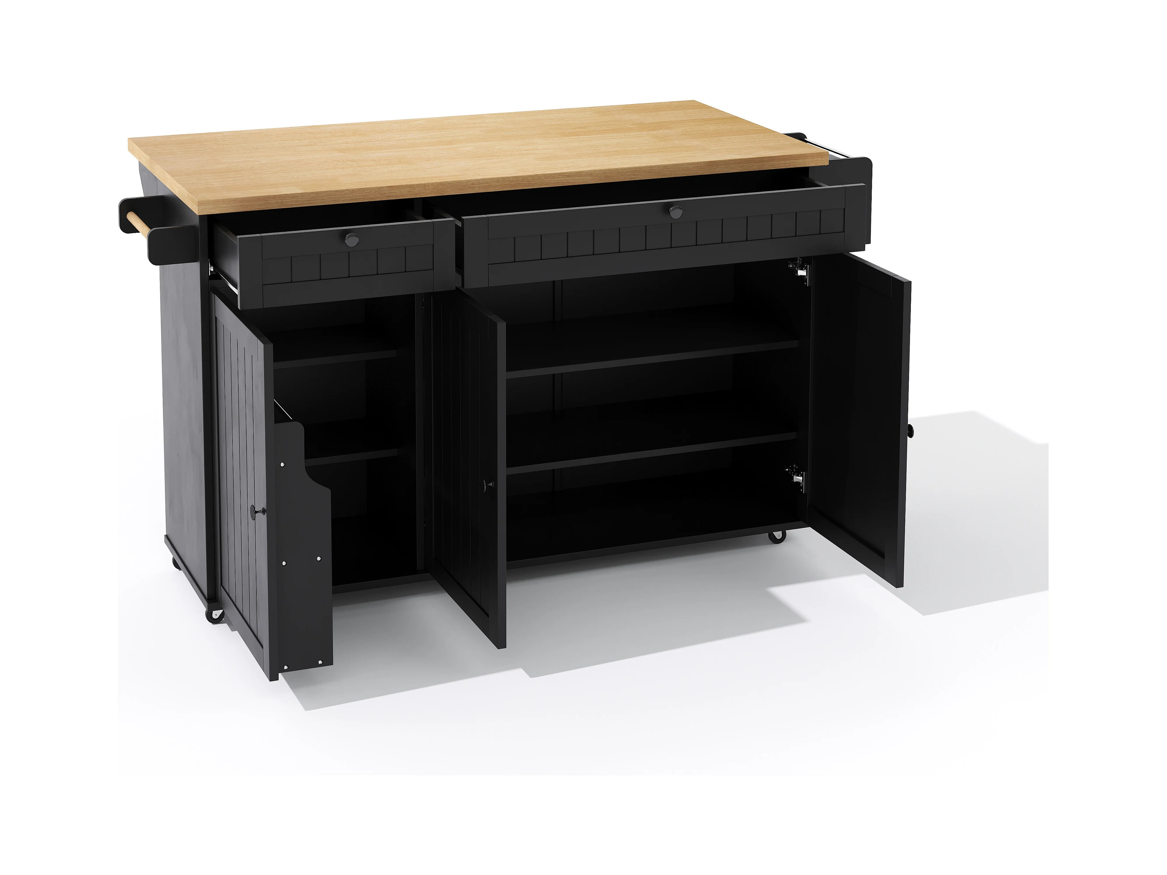 Carrello da cucina con piano ribaltabile, 2 cassetti e 3 ante, 6 ruote bloccabili, nero