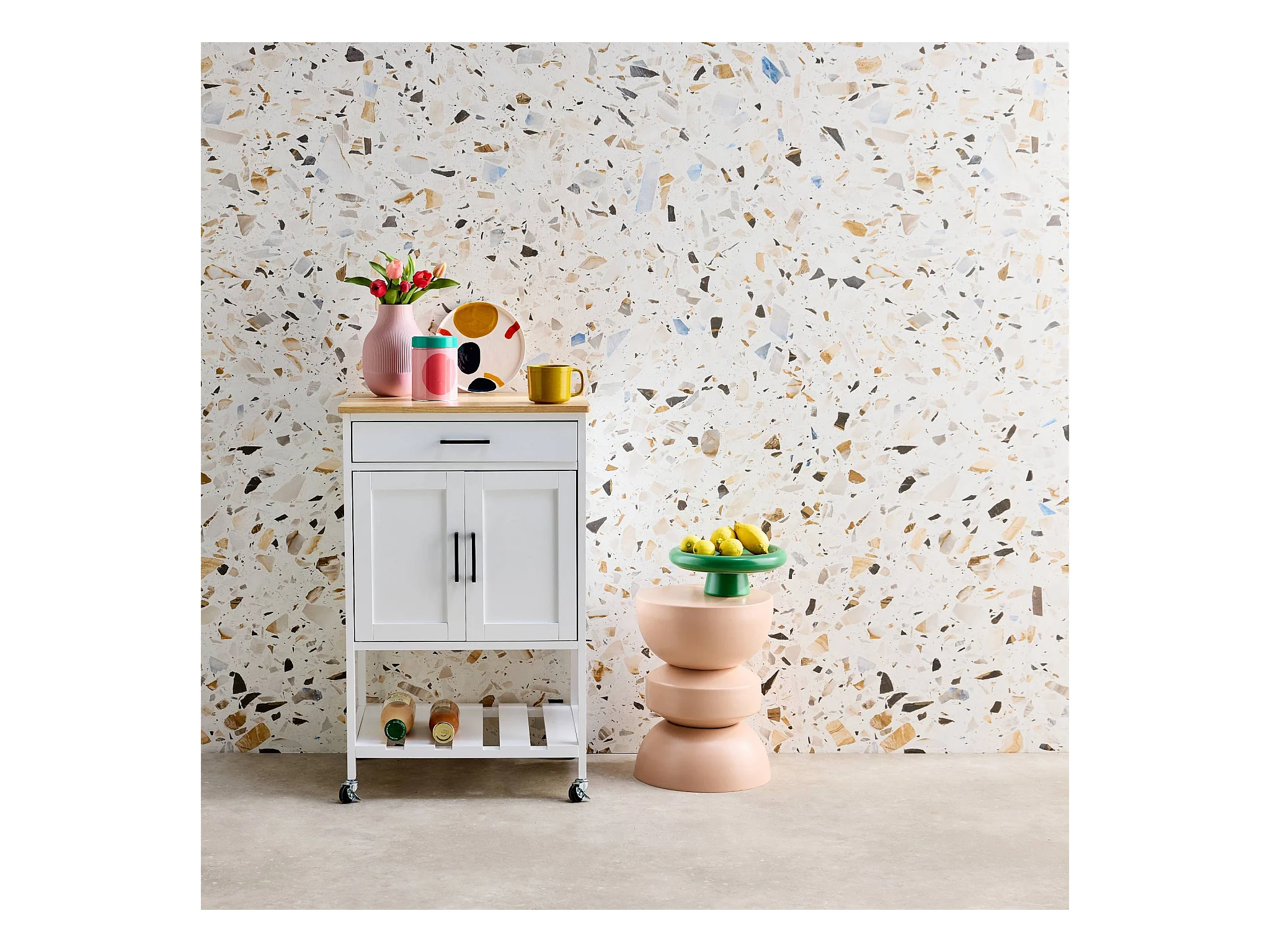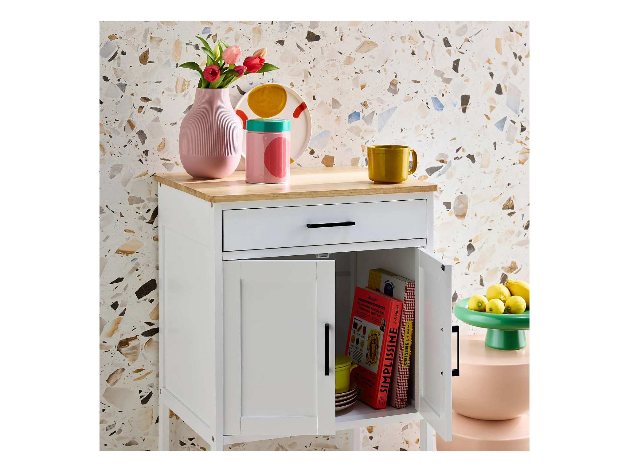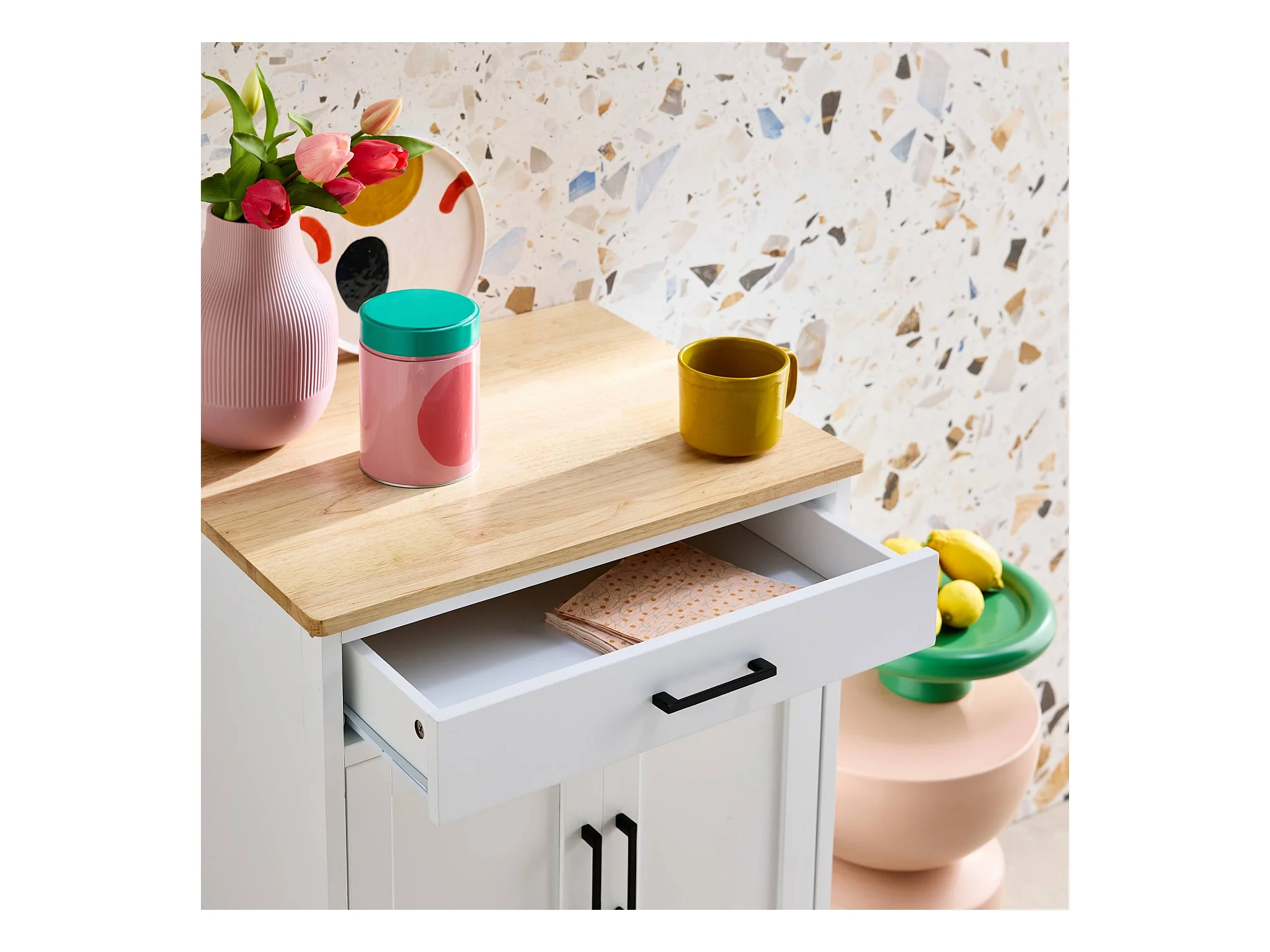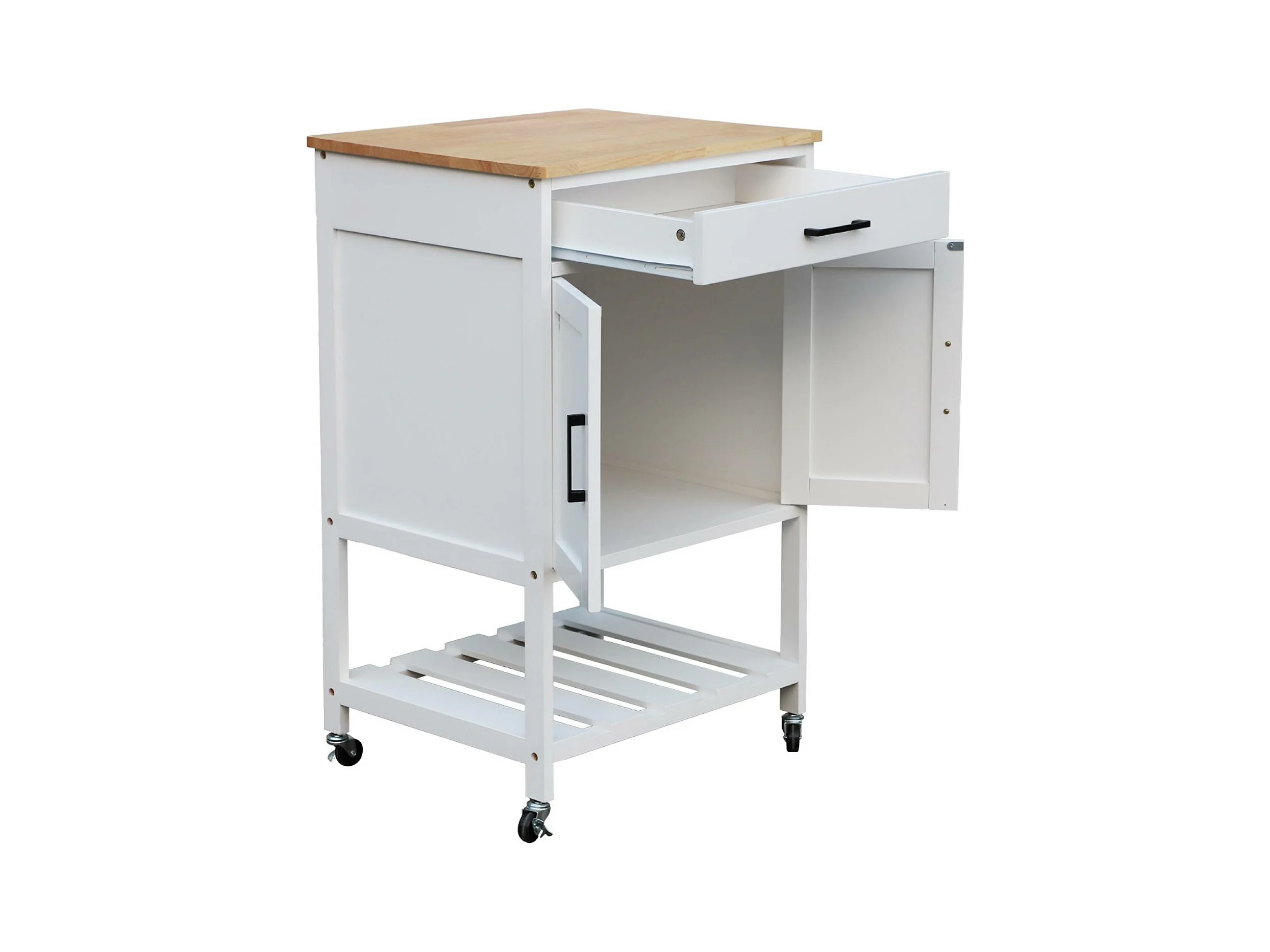 Carrello da cucina in legno di gomma con 2 ripiani, 56cm , bianco