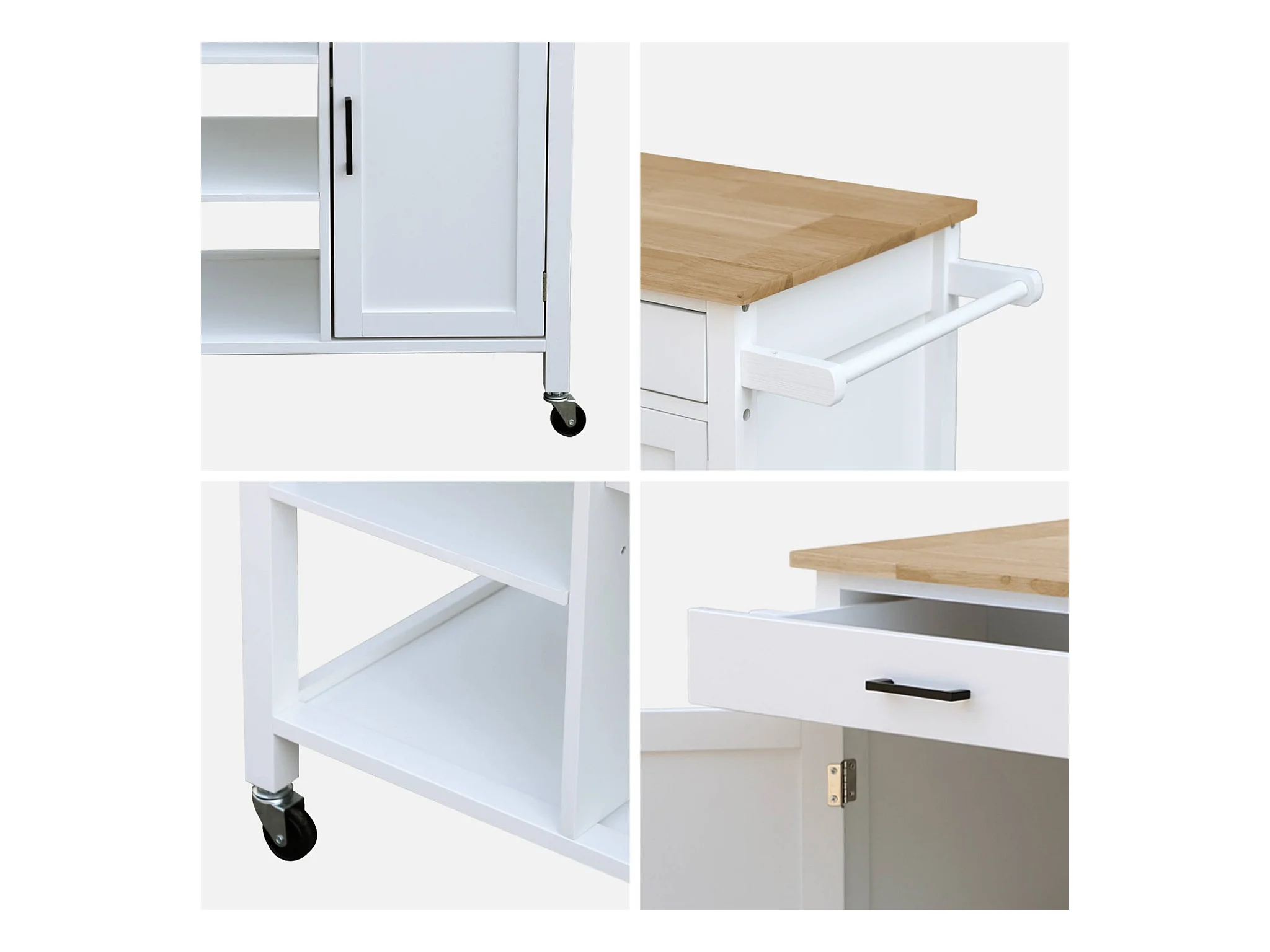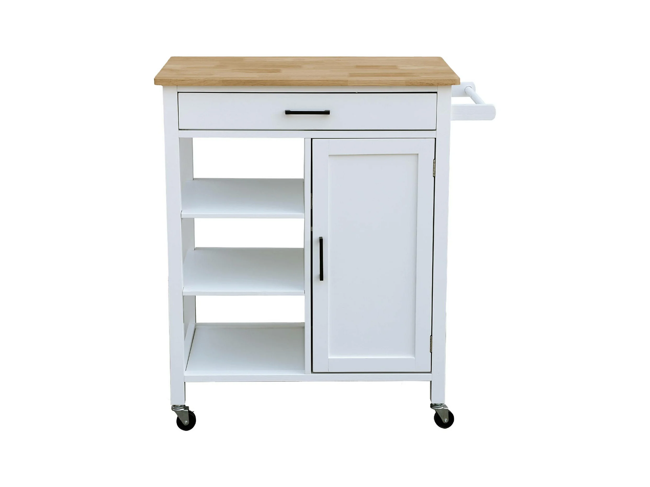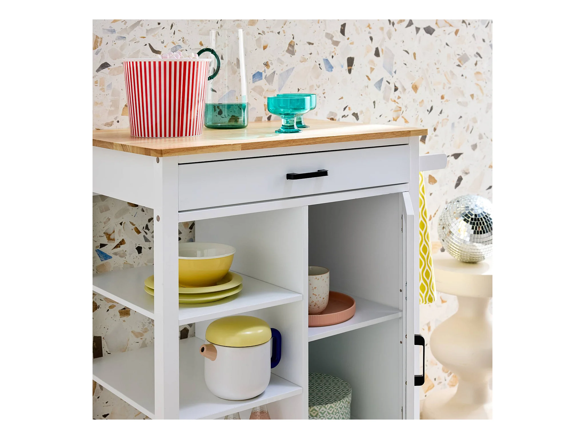 Carrello da cucina in legno di gomma con 2 ripiani, 56cm , bianco