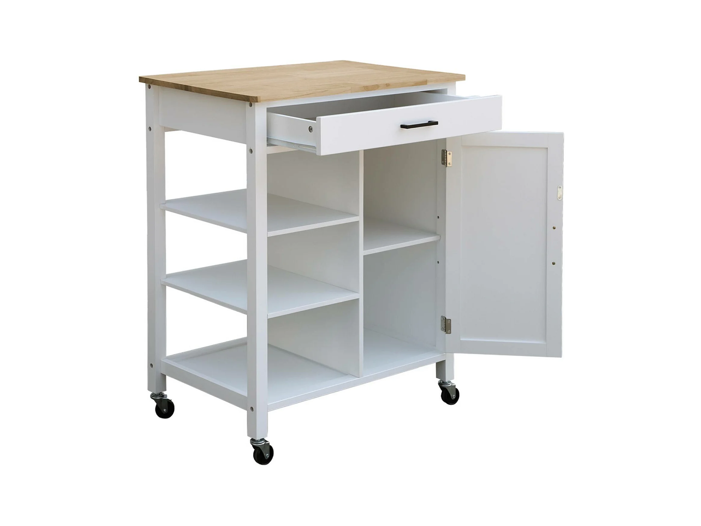 Carrello da cucina in legno di gomma con 5 ripiani, 74cm, bianco