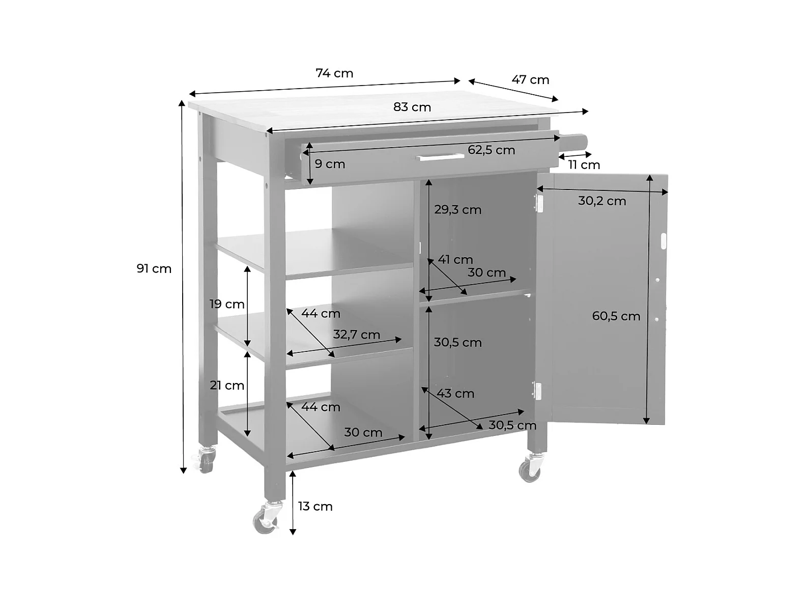 SoBuy Carrello multiuso Scaffale da cucina credenza soggiorno con armadietto e casseto 74x40x85cm FKW125-WN