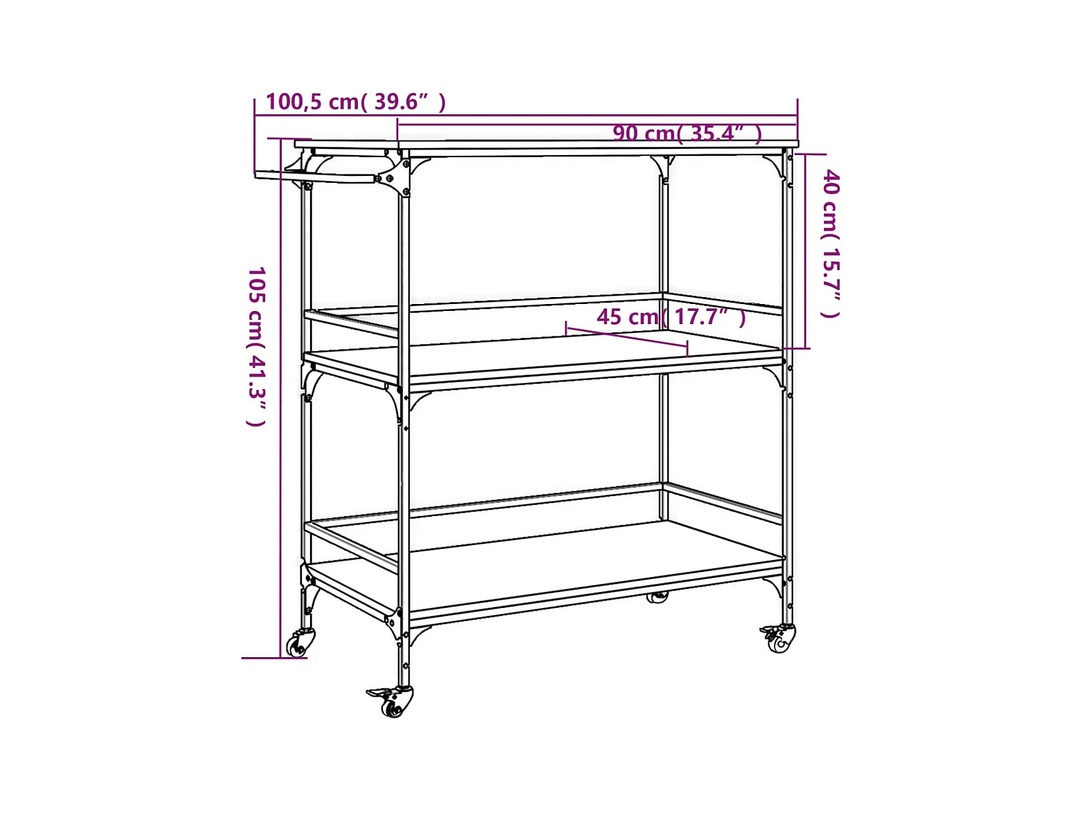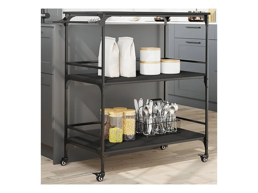 Carrello da Cucina Nero 100,5x50x105 cm in Legno Multistrato