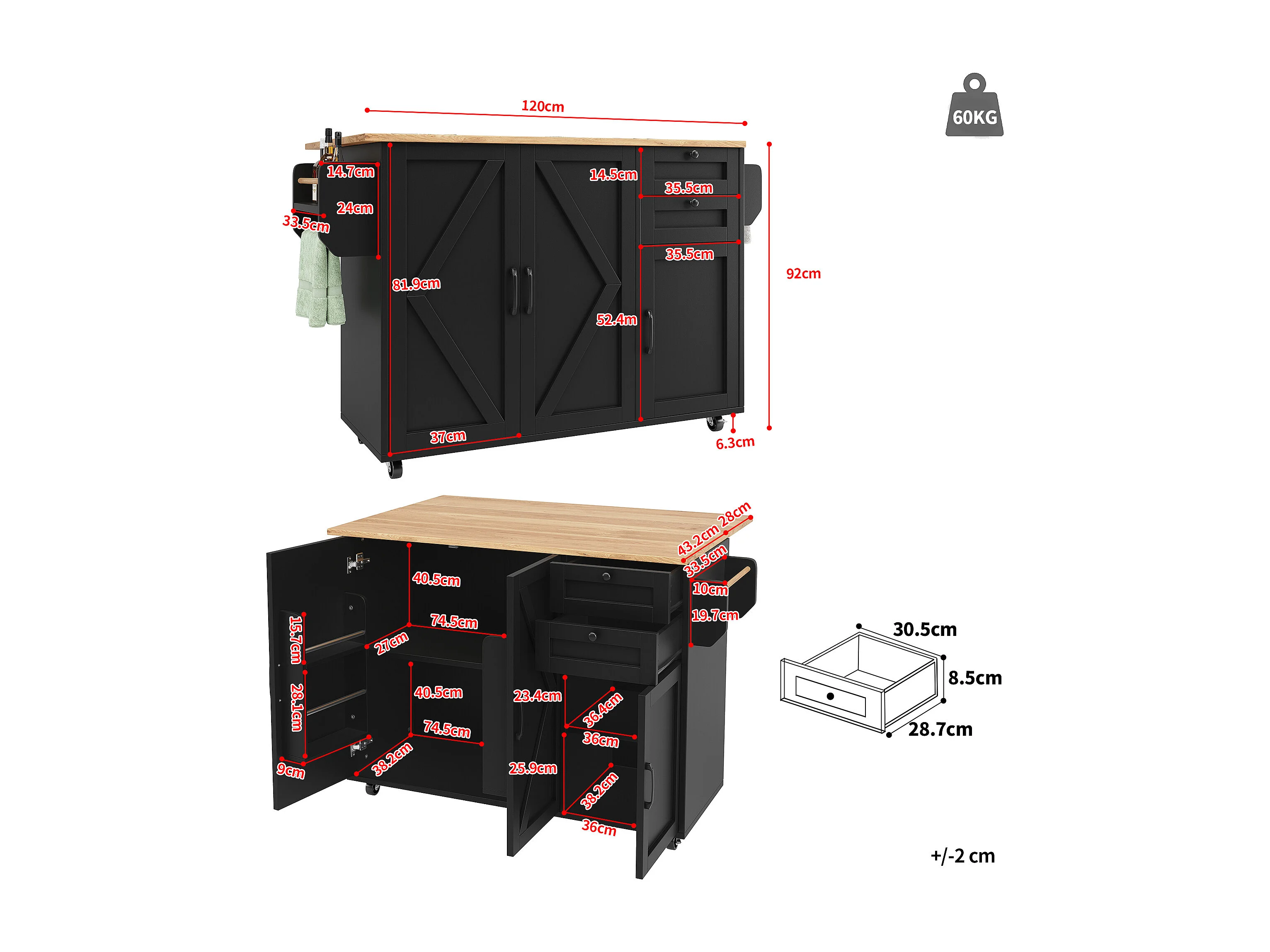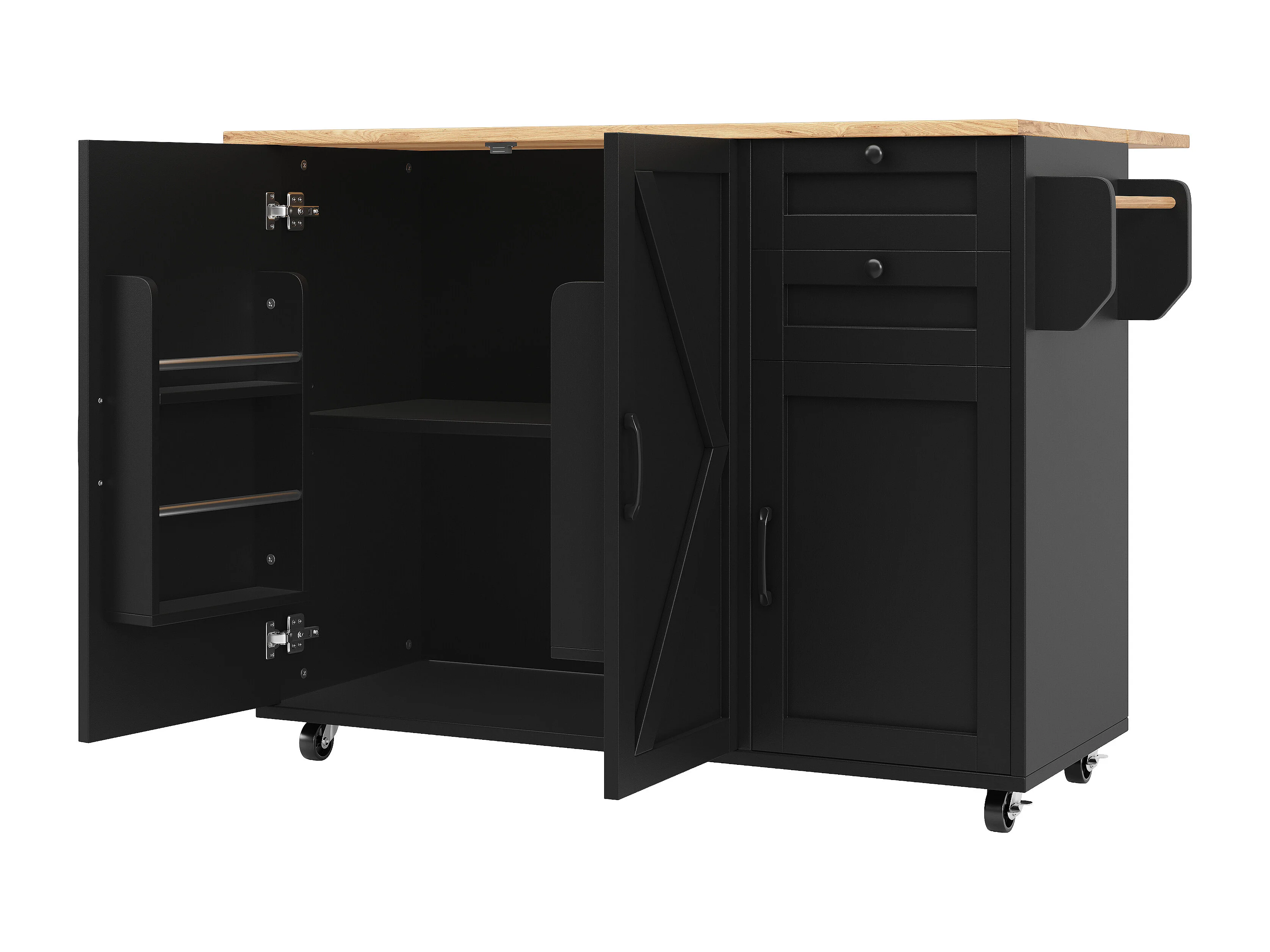 Carrello da cucina nero - Isola da cucina mobile con porta spezie e 3 ante - portasciugamani e cassetto - per cucina