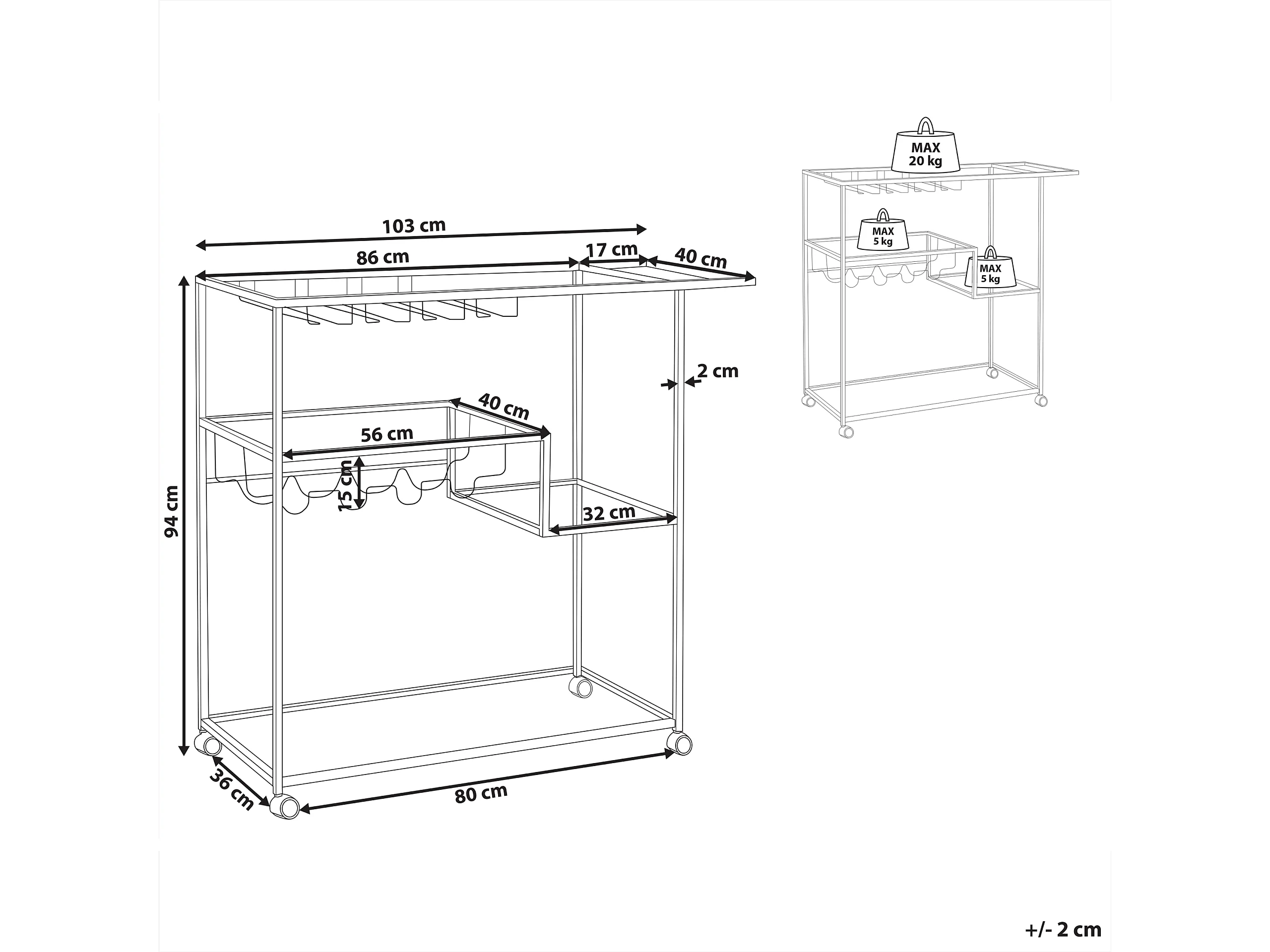 Carrello da portata cucina MCW-C64 metallo 37x44x79cm nero