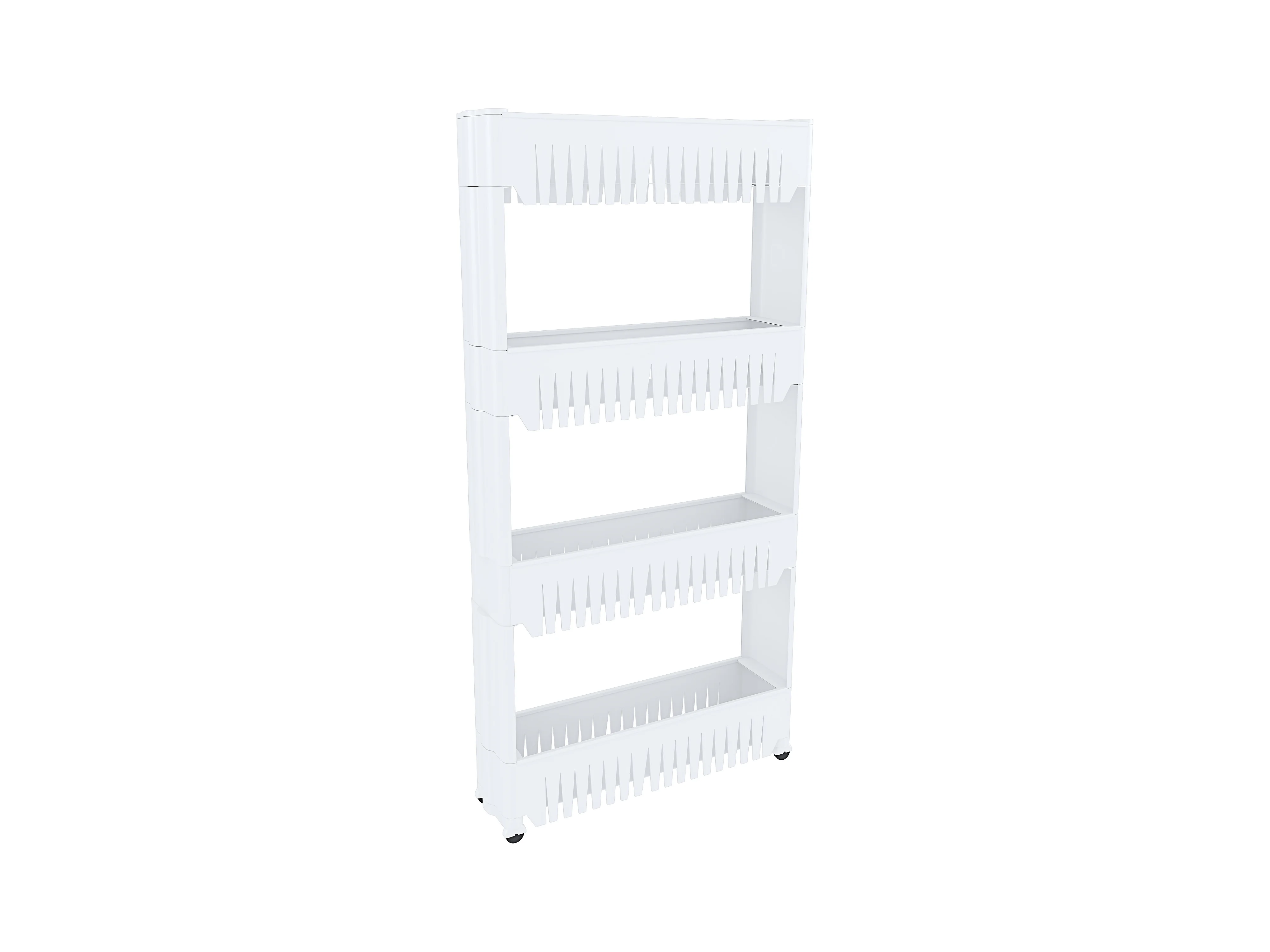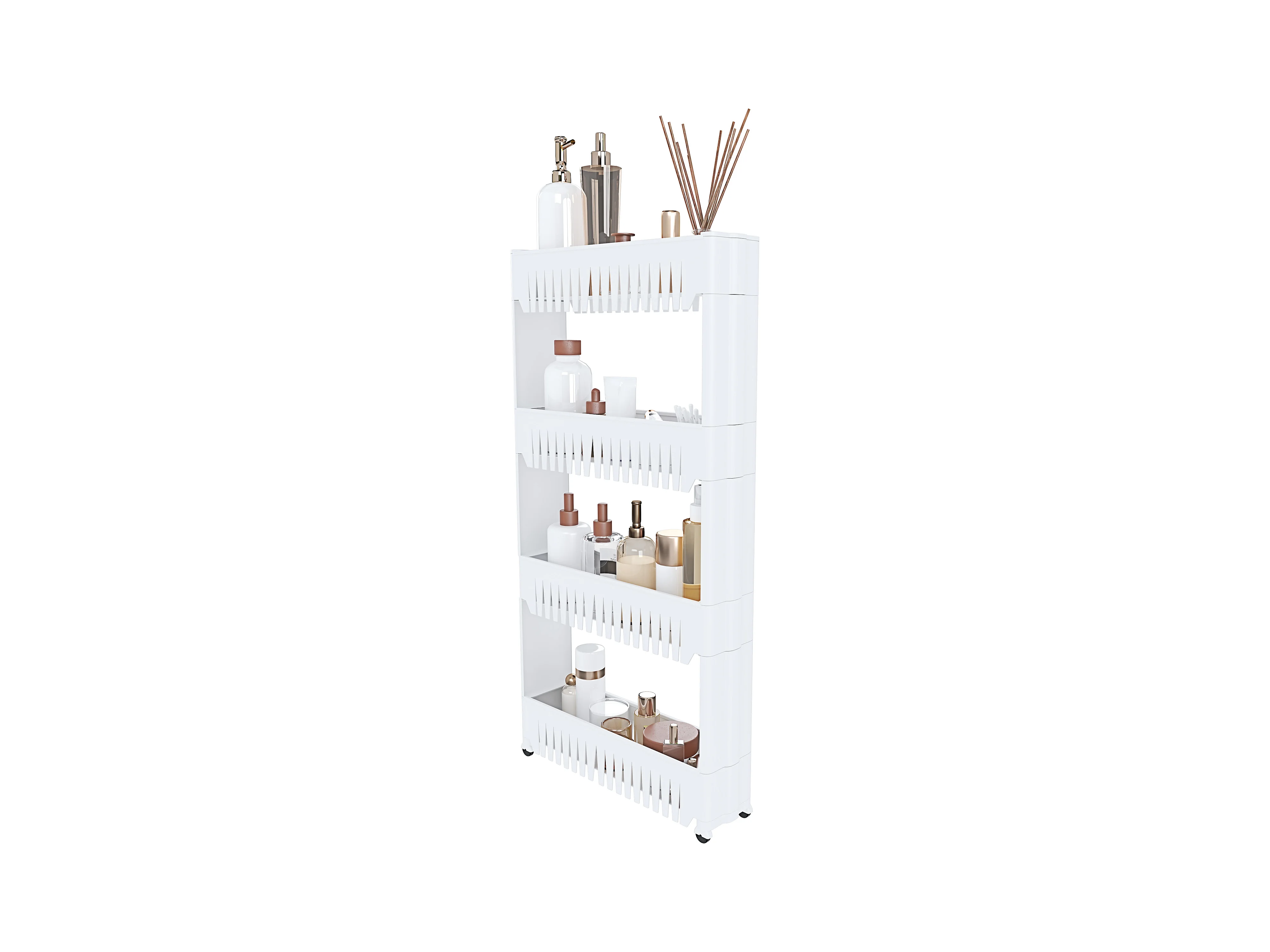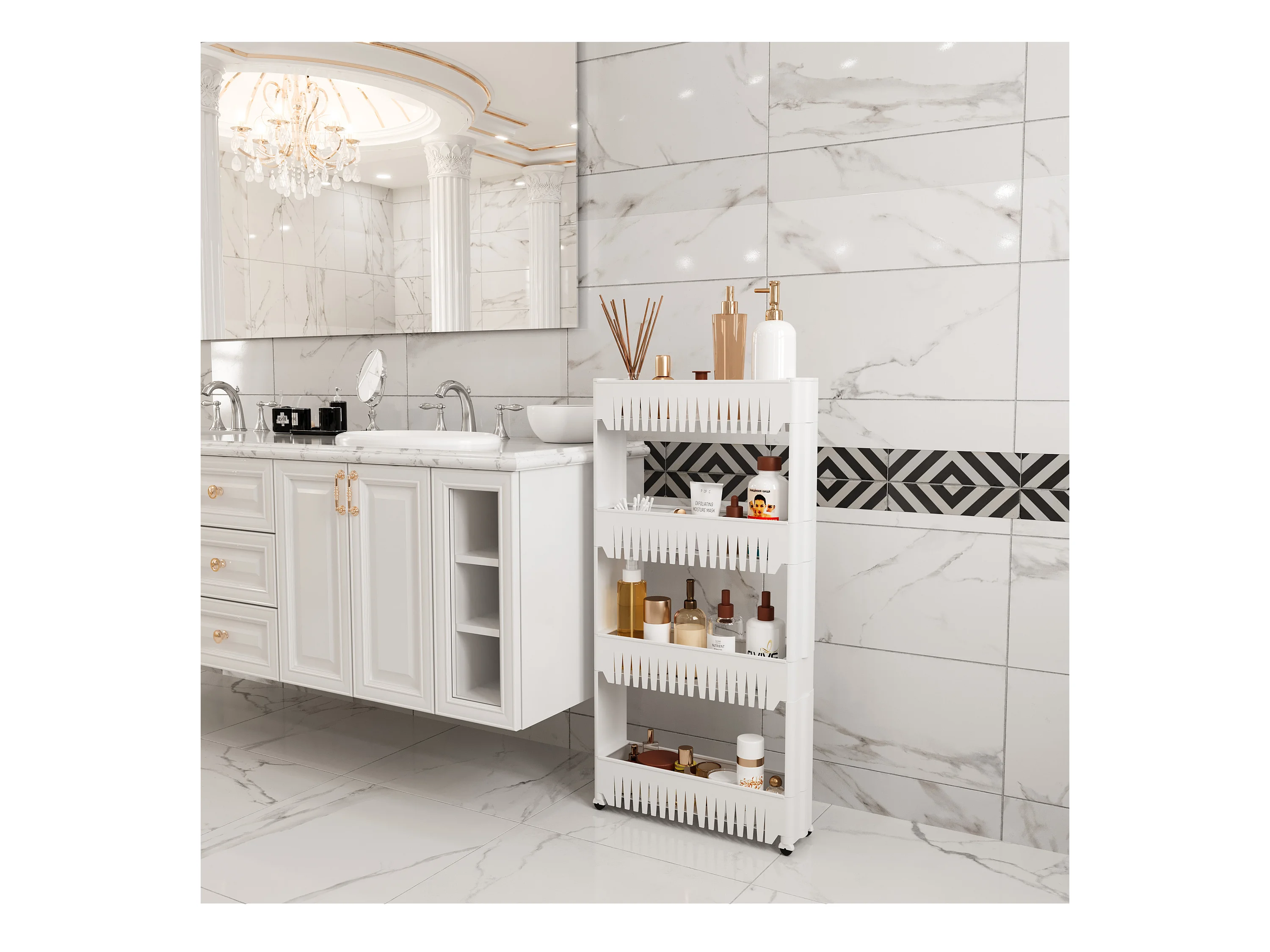 Carrellino con 4 Ripiani Salvaspazio Scaffale Portaoggetti Per Cucina Soggiorno Bagno Portaoggetti Con Rotelle 54 x 12,5 x 72 cm Colore Bianco