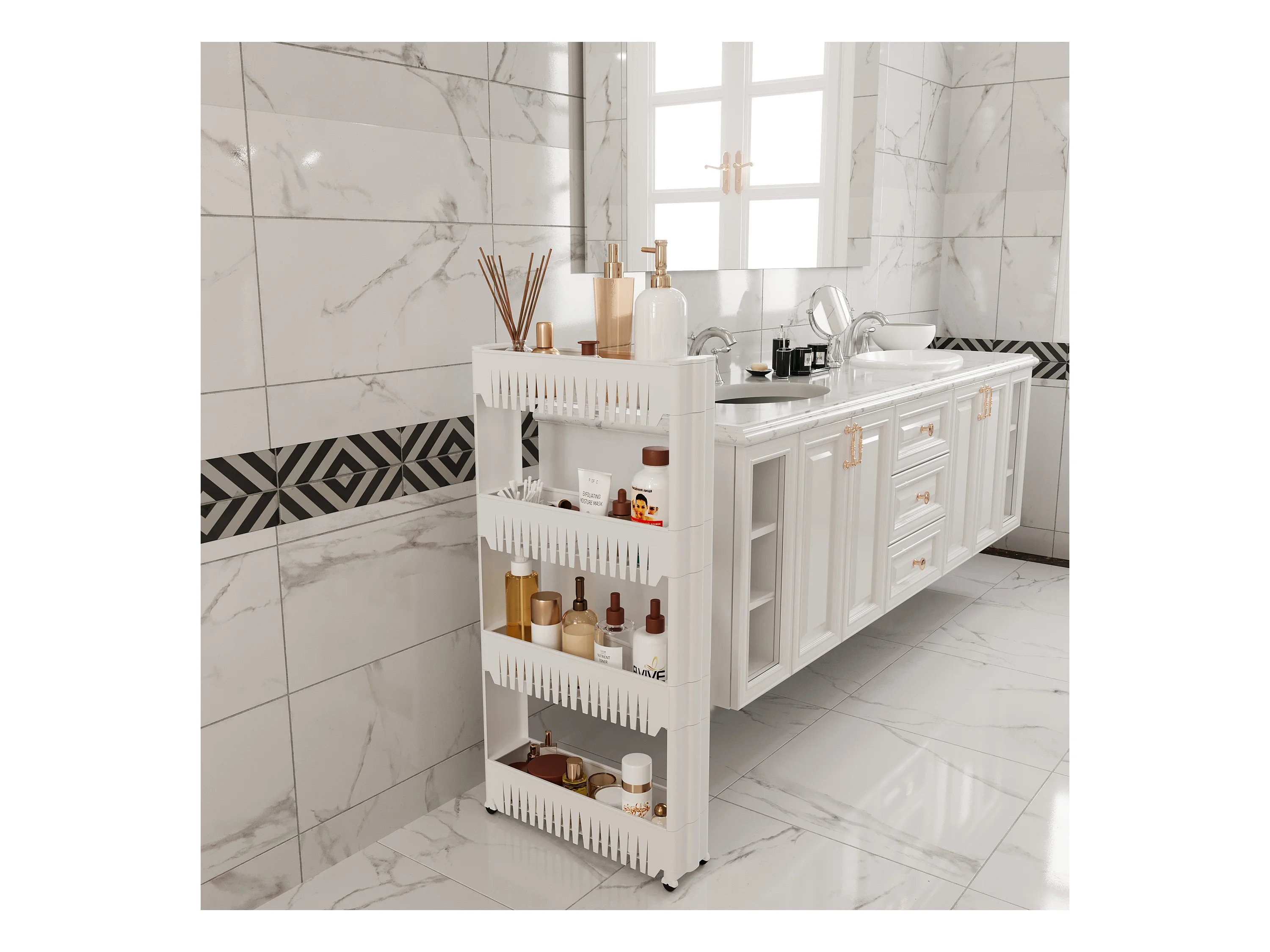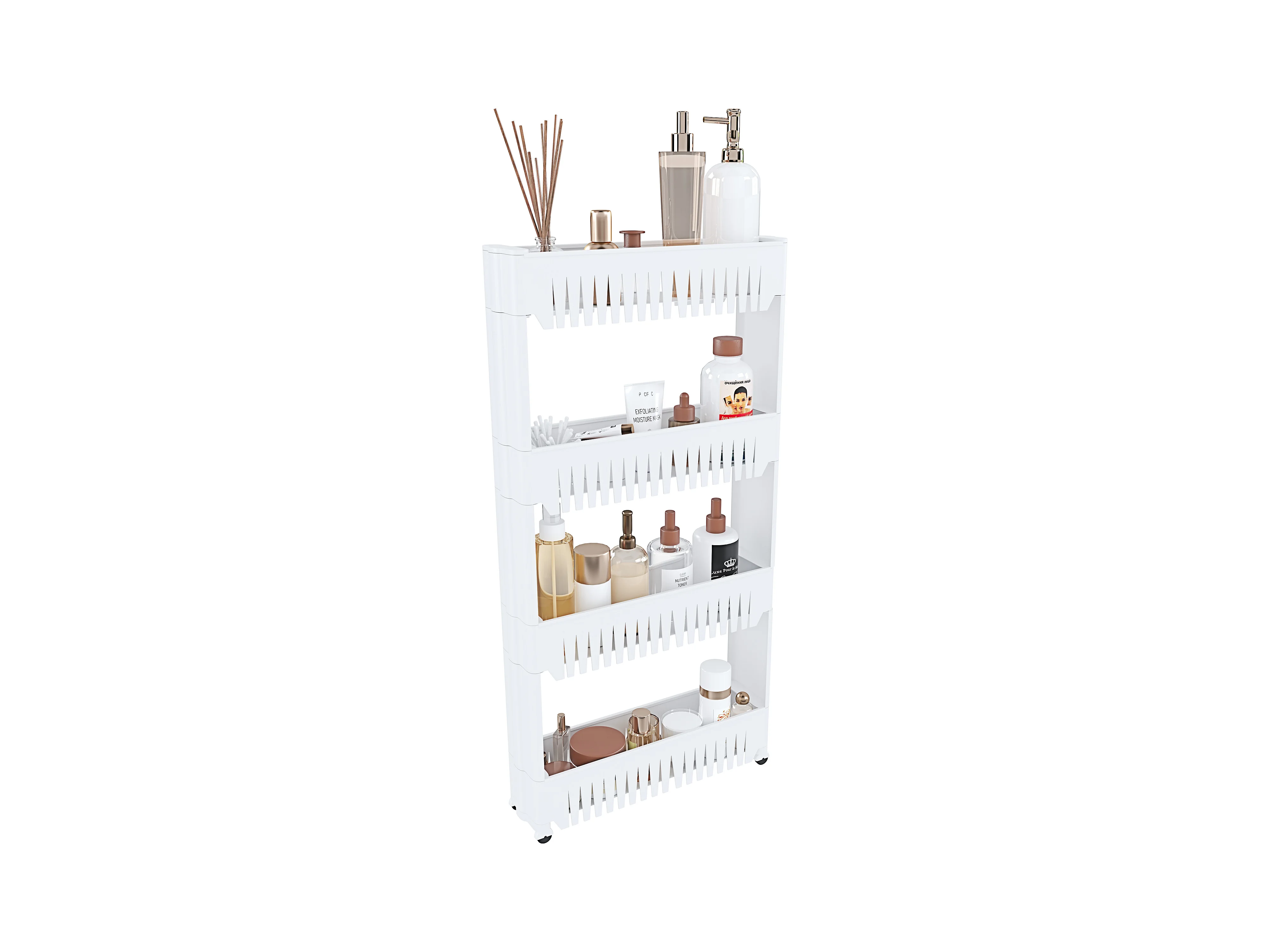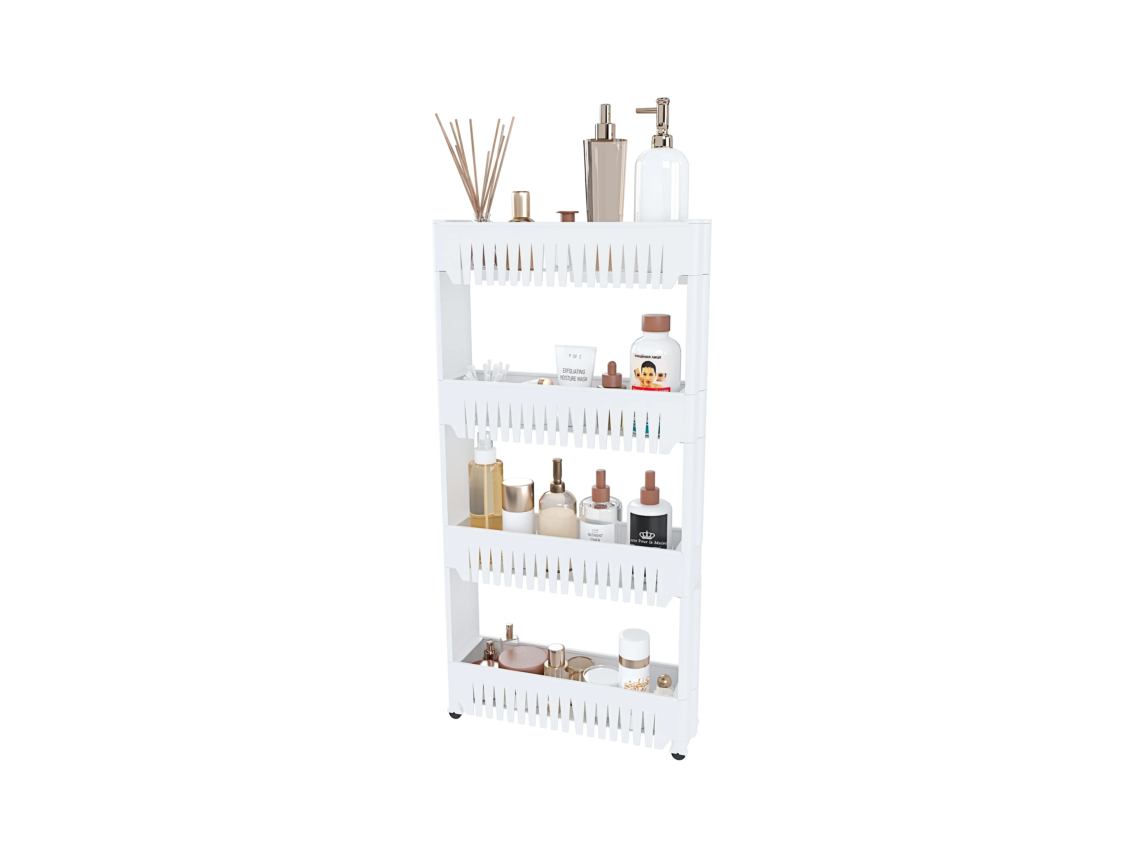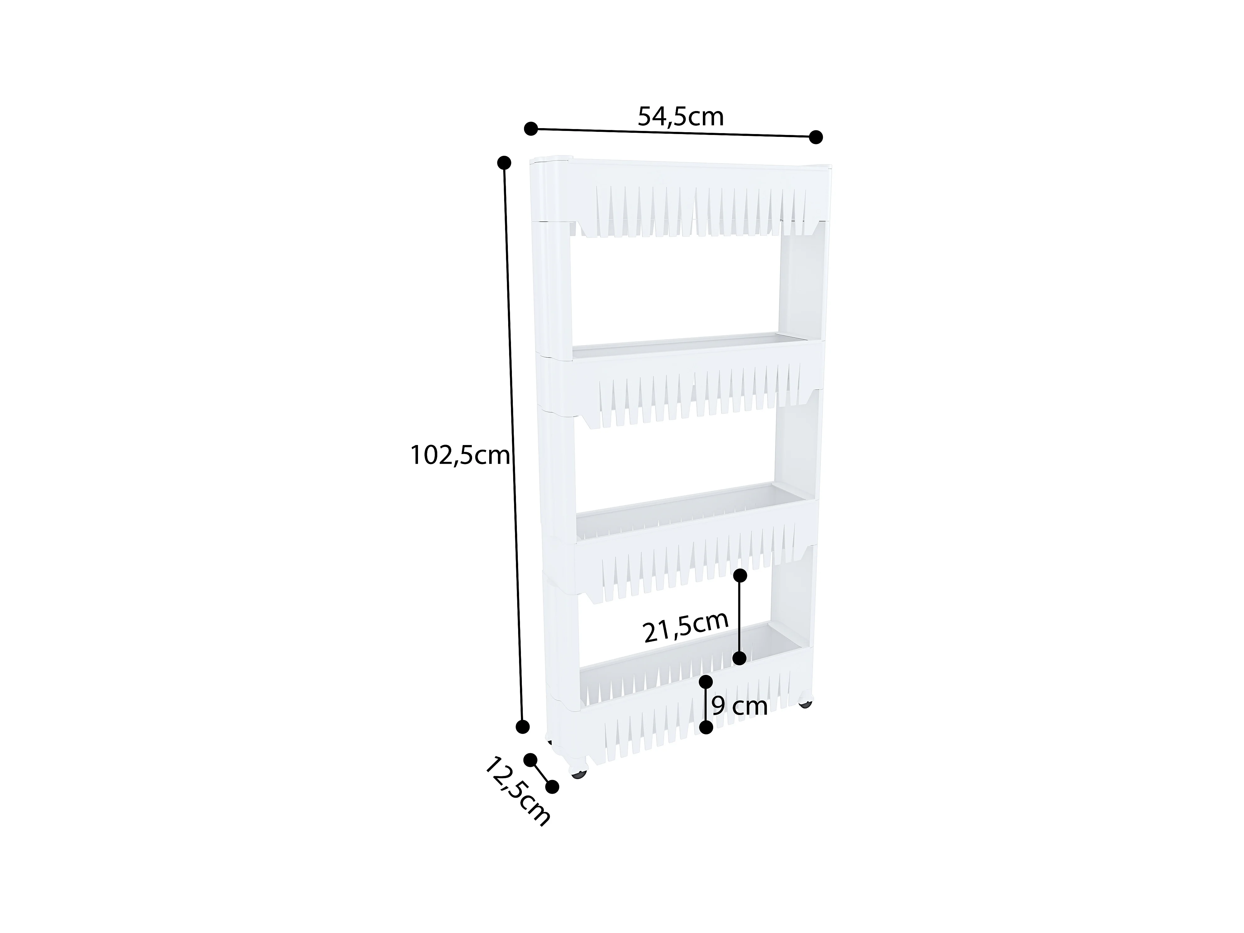 Carrellino con 4 Ripiani Salvaspazio Scaffale Portaoggetti Per Cucina Soggiorno Bagno Portaoggetti Con Rotelle 54 x 12,5 x 72 cm Colore Bianco