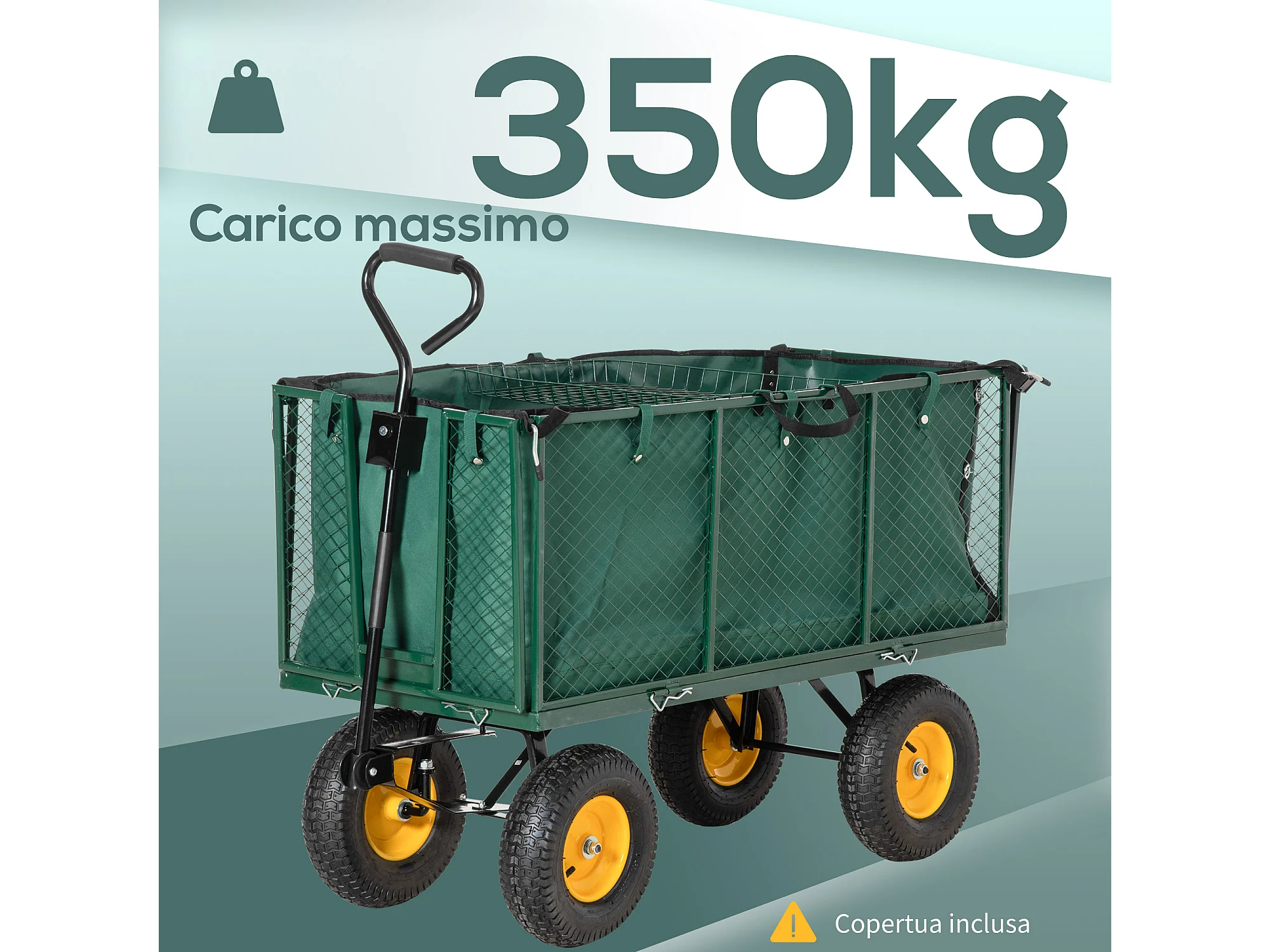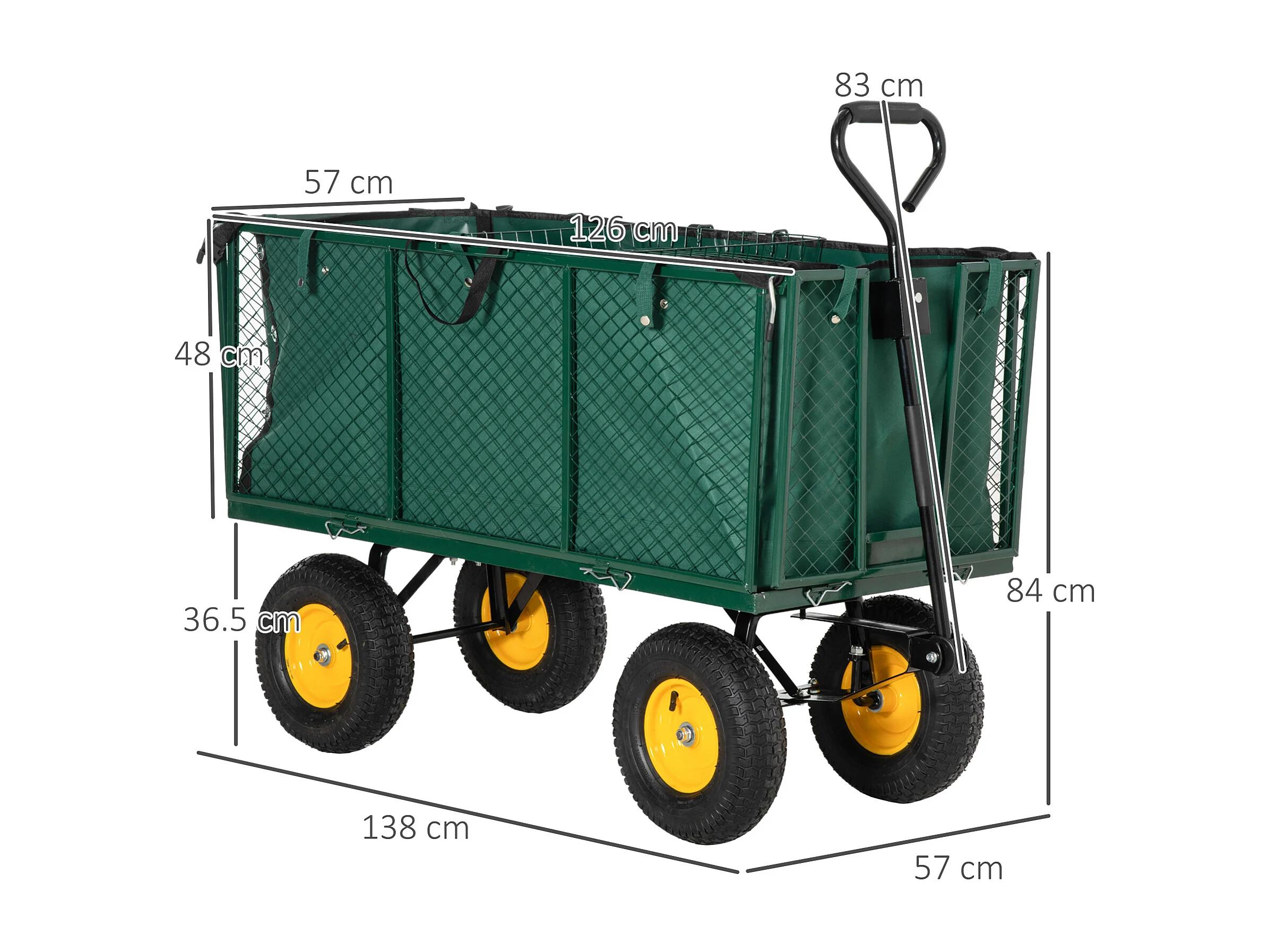 Carrello da giardino 342l con maniglia pareti laterali ribaltabili e 4 ruote