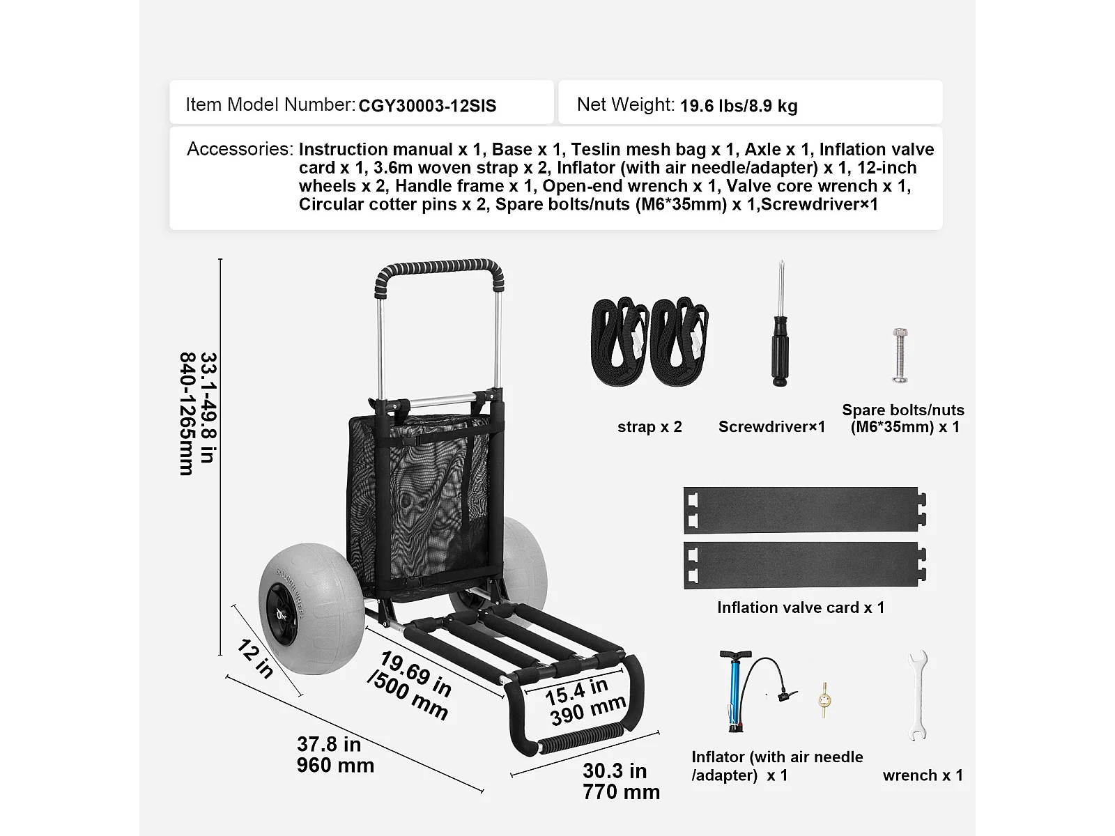 Carrello da Spiaggia SucceBuy, con Grandi Ruote - Ruote da 304 mm per Spiaggia e Giardinaggio
