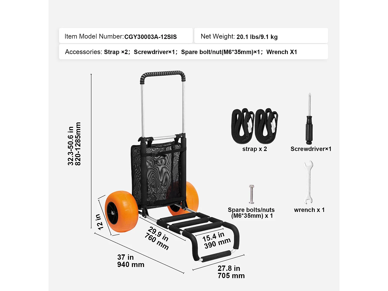 Carrello da Spiaggia SucceBuy, Ruote in Schiuma da 30,5 cm per la Spiaggia e il Giardinaggio