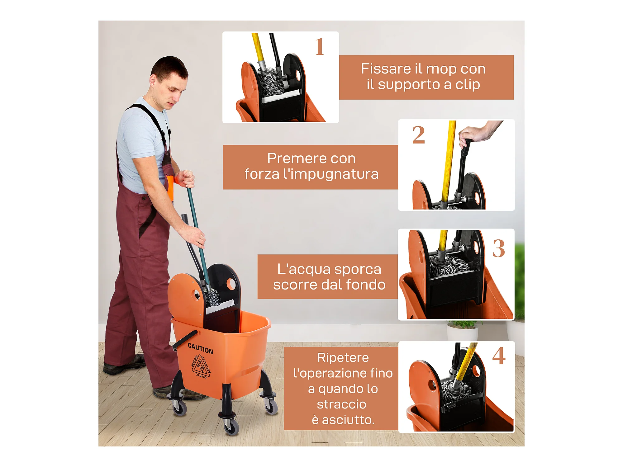 Carrello Lavapavimenti Professionale Secchio 26L e Strizzatore Rimovibile
