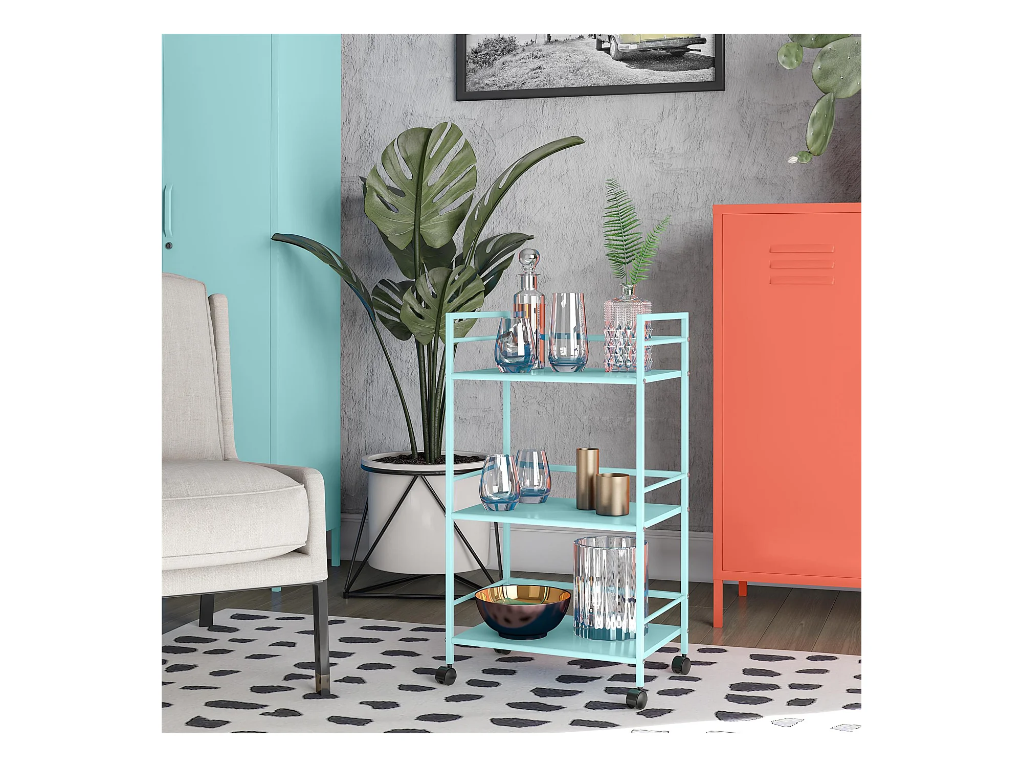 Cache | Carrello rotante in metallo menta