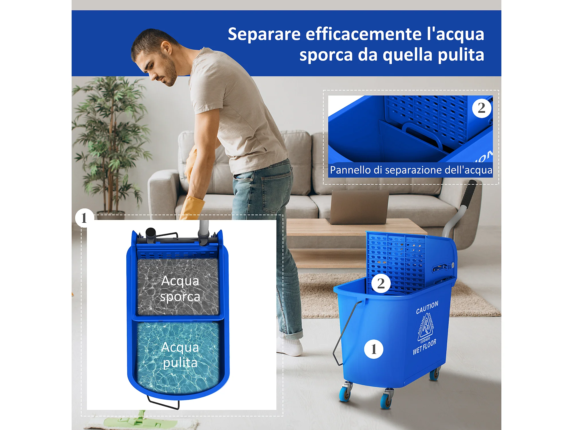 Carrello Lavapavimenti Professionale Secchio 26L e Strizzatore Rimovibile