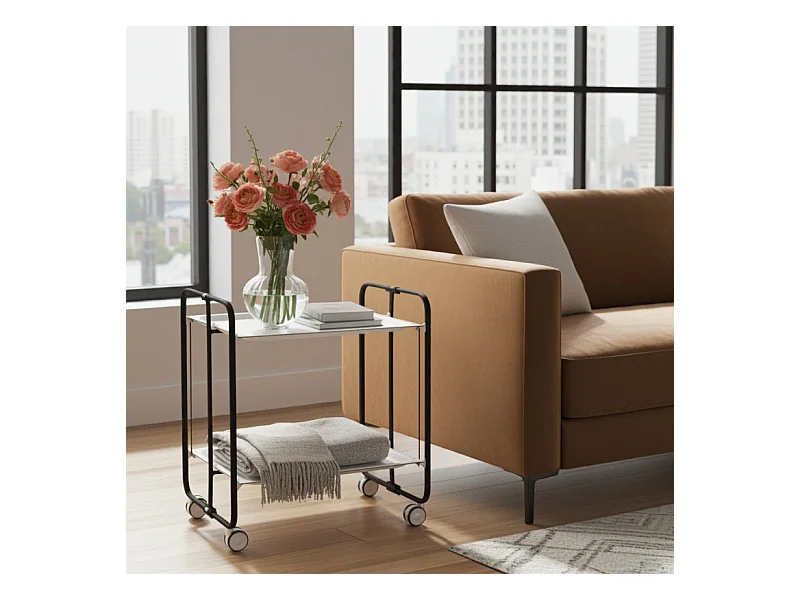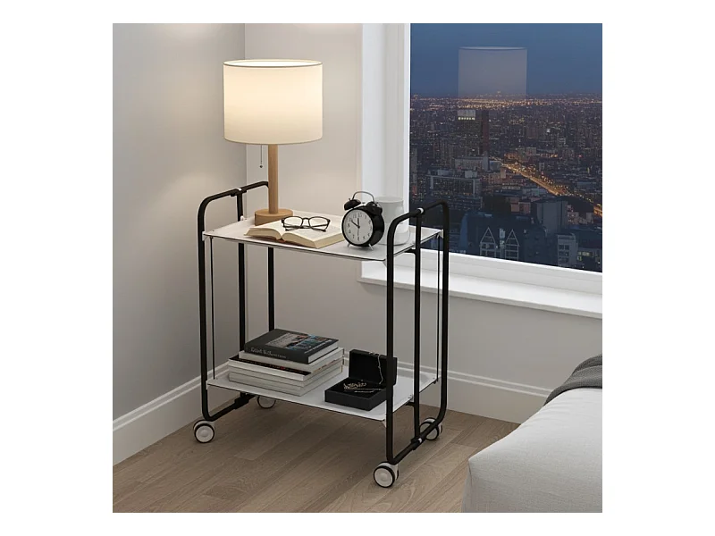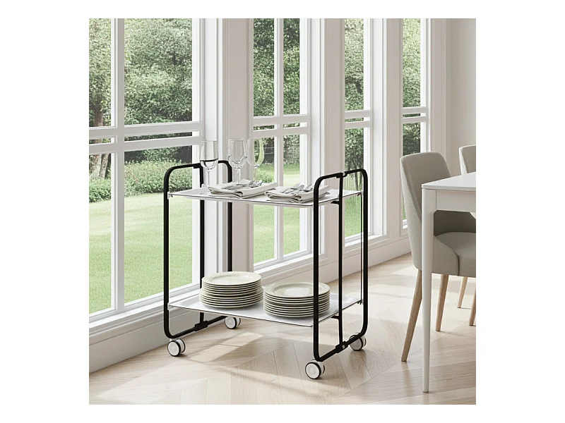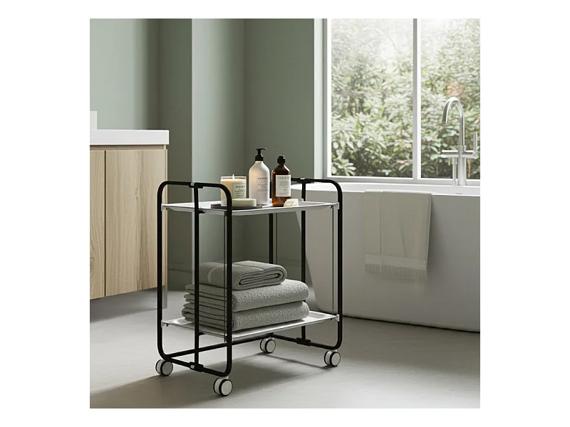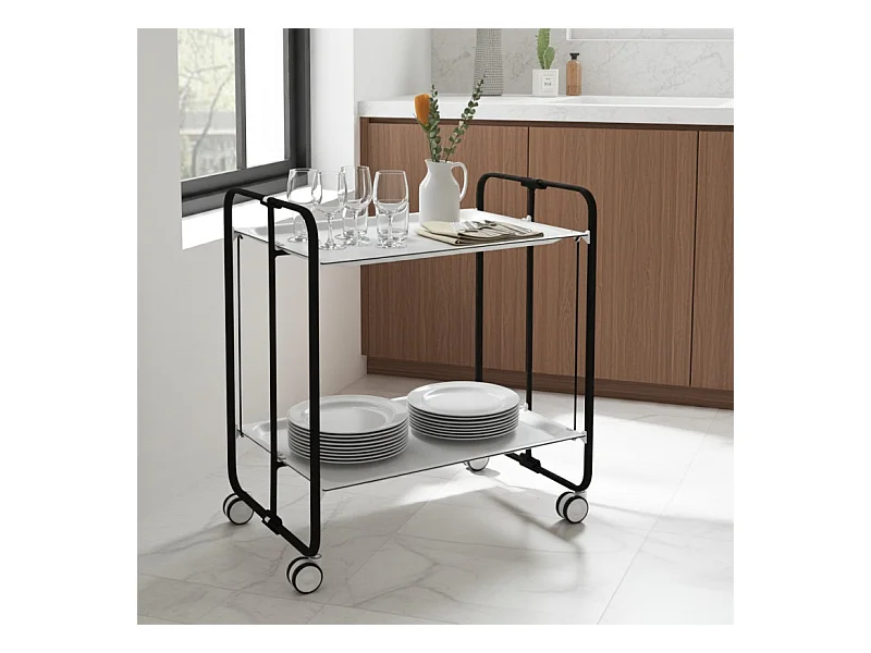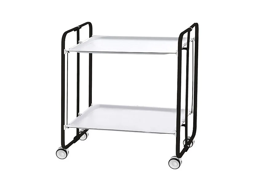 Carrello pieghevole con ruote - Struttura in metallo nero,2 ripiani in laminato bianco - 72*66*43 cm - BAUHAUS