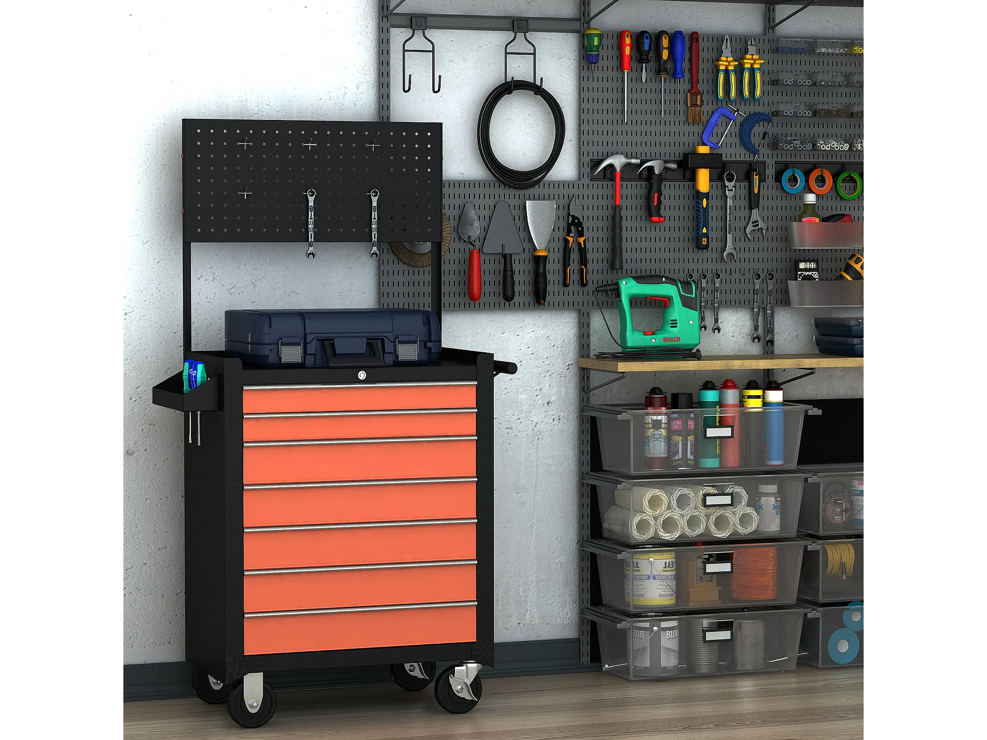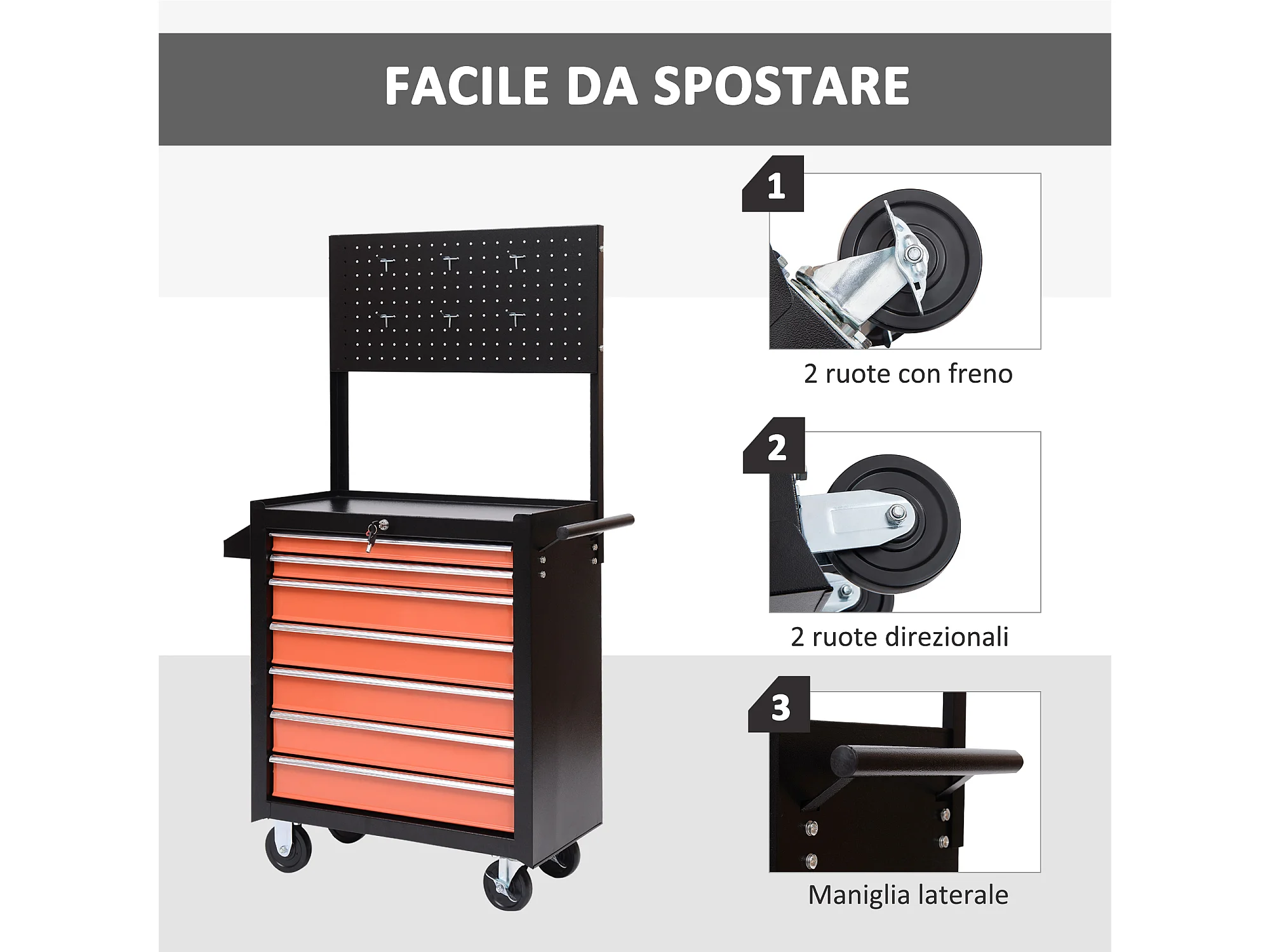 Carrello officina a 7 cassetti con serratura e chiavi in acciaio nero