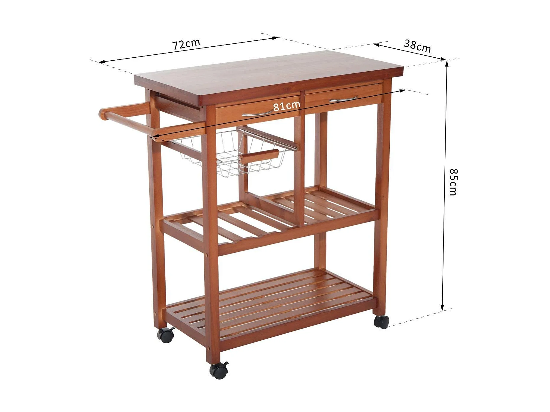 Carrello da portata cucina MCW-K11 bambu cassetti e sportello 85x84x36cm