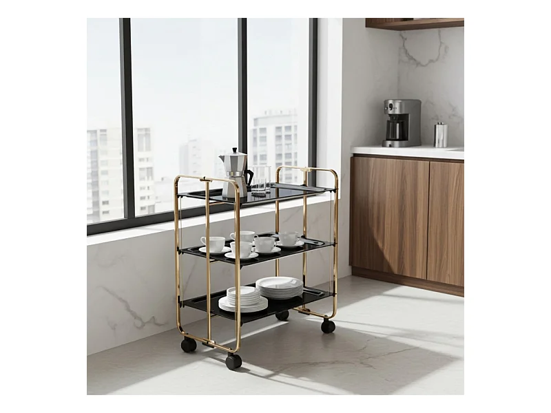 Carrello pieghevole da cucina BAUHAUS, 2 vassoi. Telaio bagno d'oro