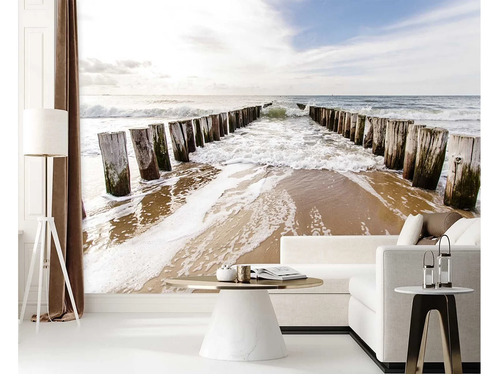 Carta Da Parati, 3D Spiaggia Vista Mare Frangiflutti - 200x140