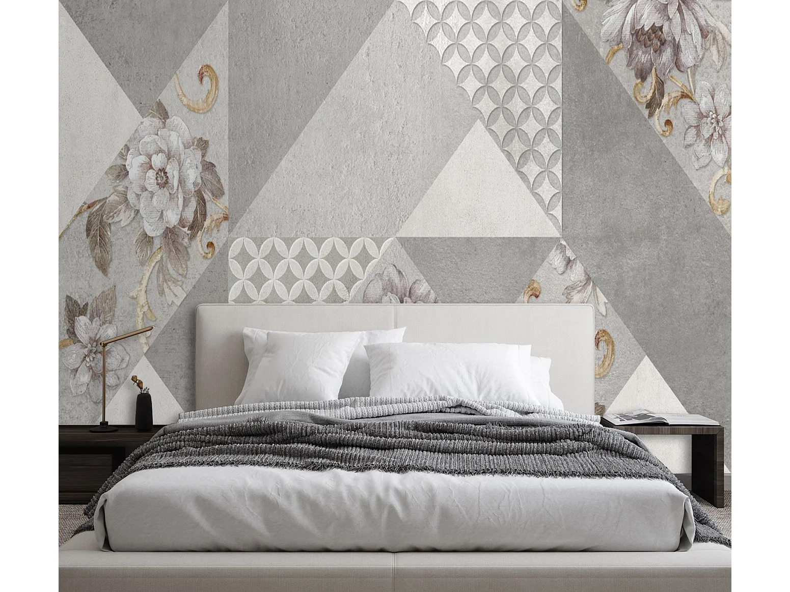 Carta Da Parati, Fiori su texture grigia - 150x105