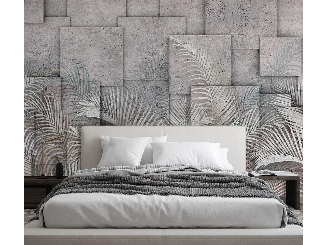 Carta Da Parati, Foglie di palma 3d Grigio - 450x315