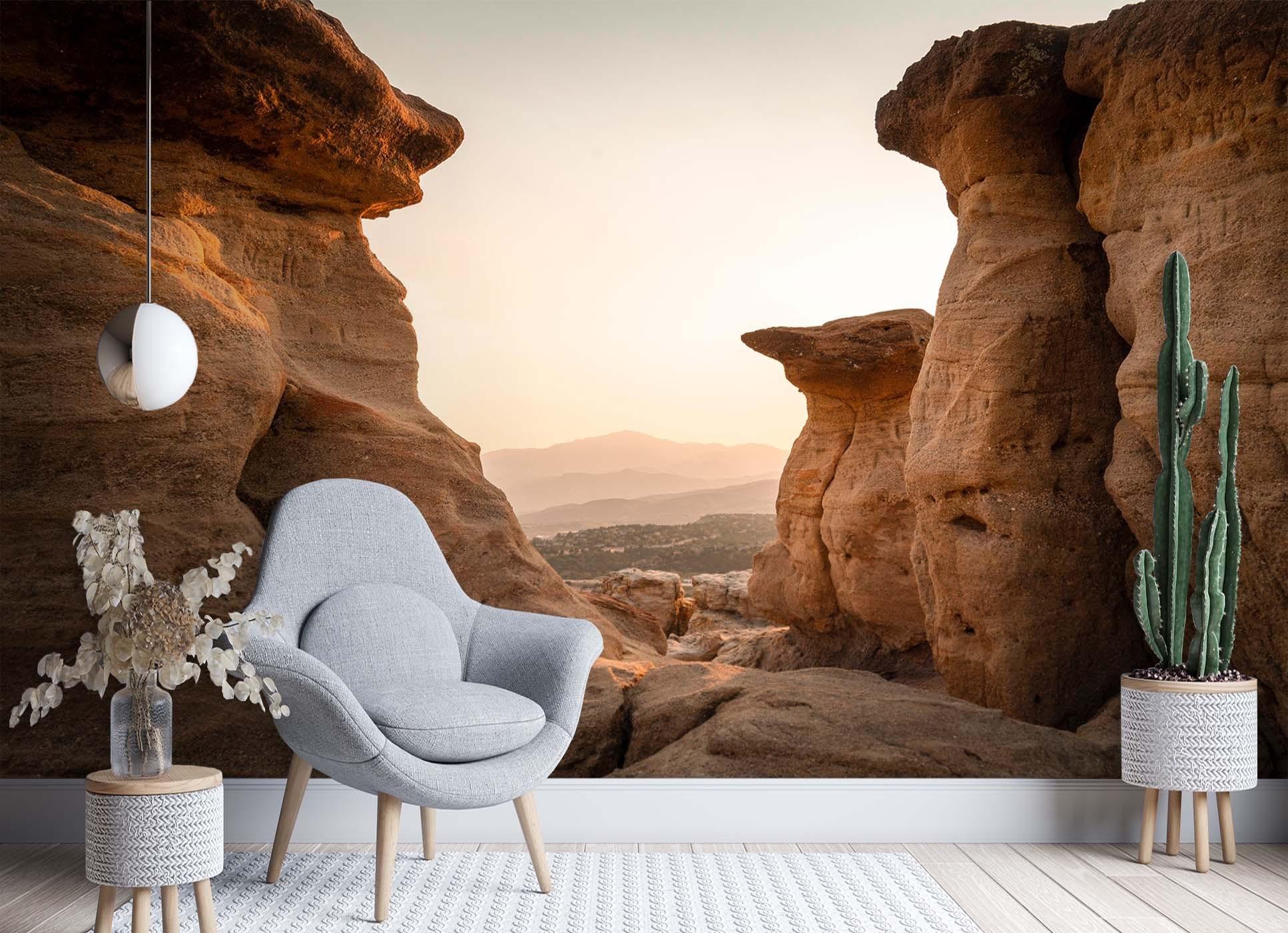 Carta Da Parati, Fiori di ciliegio su sfondo montano - 250x175