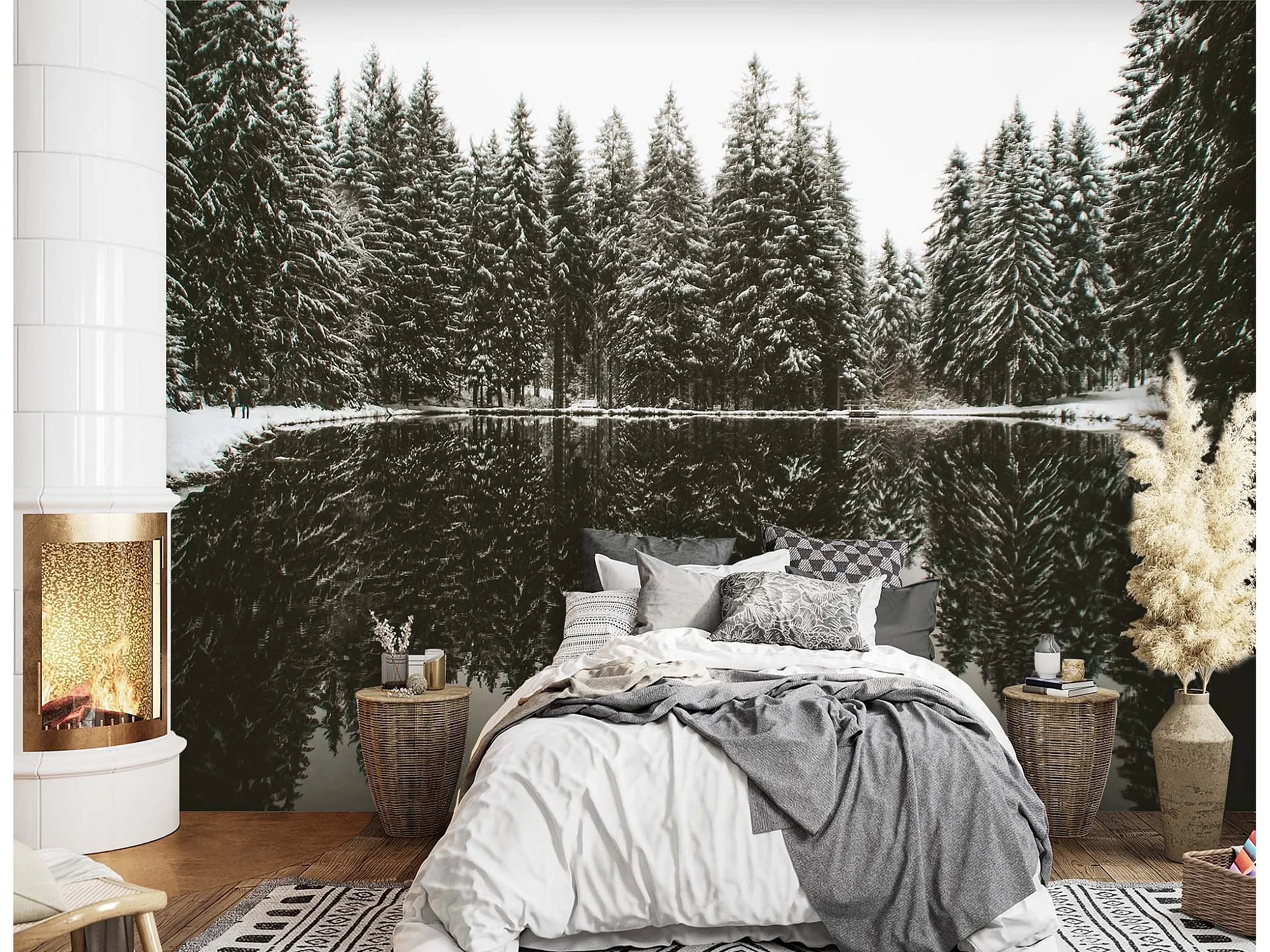 Carta Da Parati, Lago nella foresta in inverno - 350x245