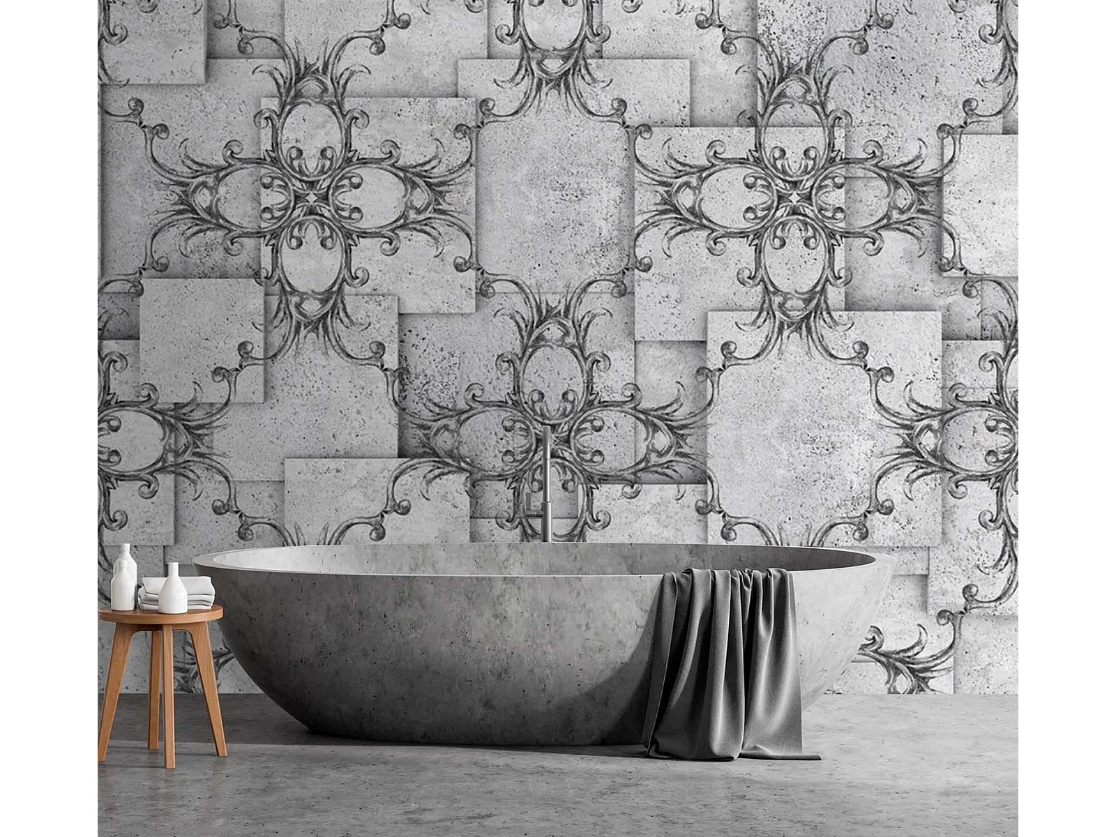 Carta Da Parati, Motivo orientale su sfondo grigio - 400x280