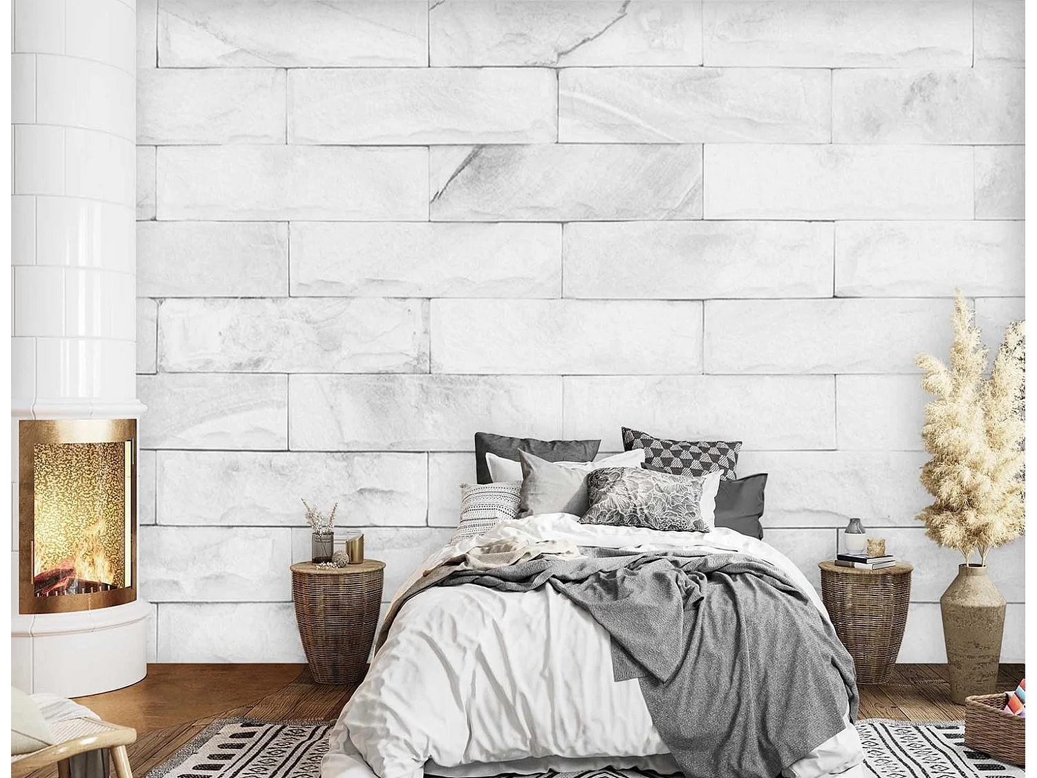 Carta Da Parati, Muro di mattoni bianchi - 350x245