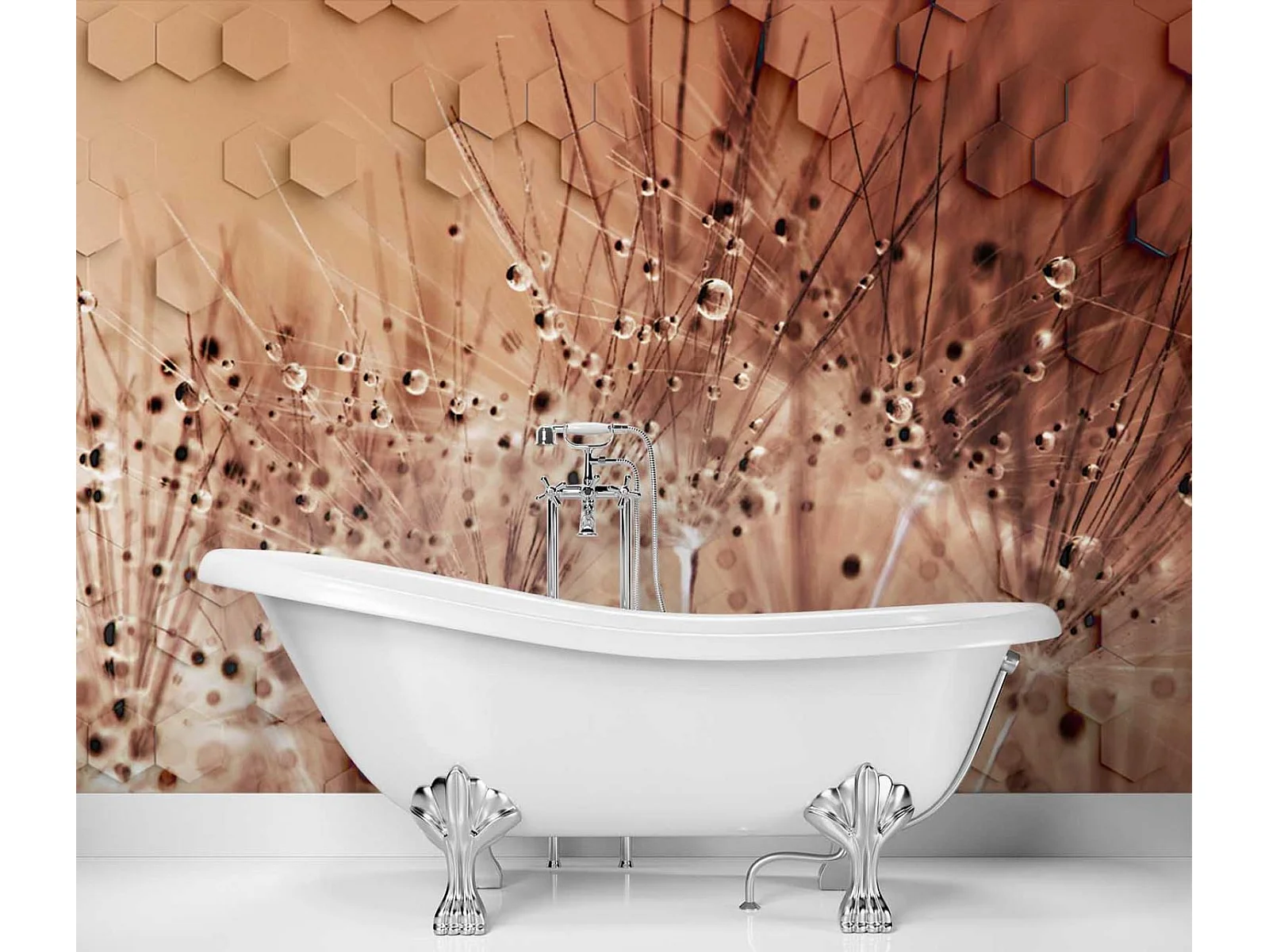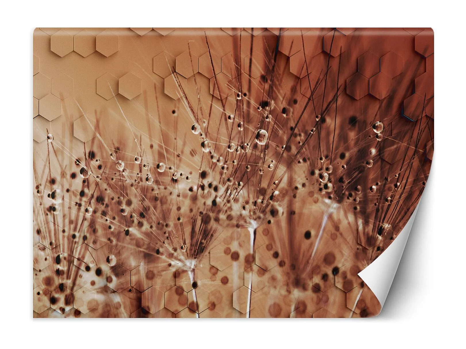 Carta Da Parati, Tarassaco in gocce di rugiada marrone - 254x184