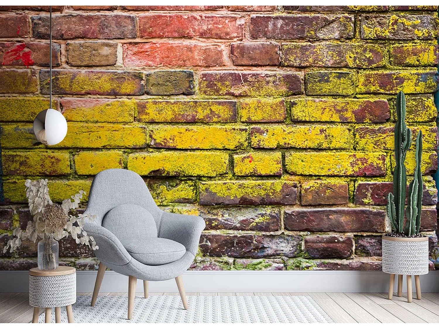 Carta Da Parati, Vecchio muro di mattoni colorati - 350x245