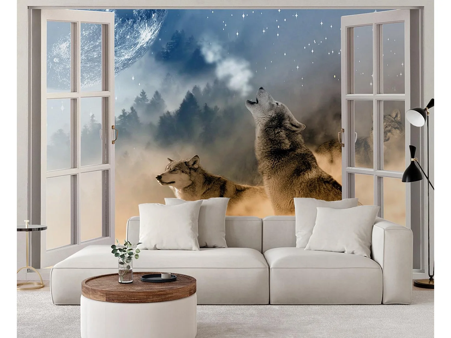 Carta Da Parati, Vista finestra Lupo animale natura astratta - 280x200