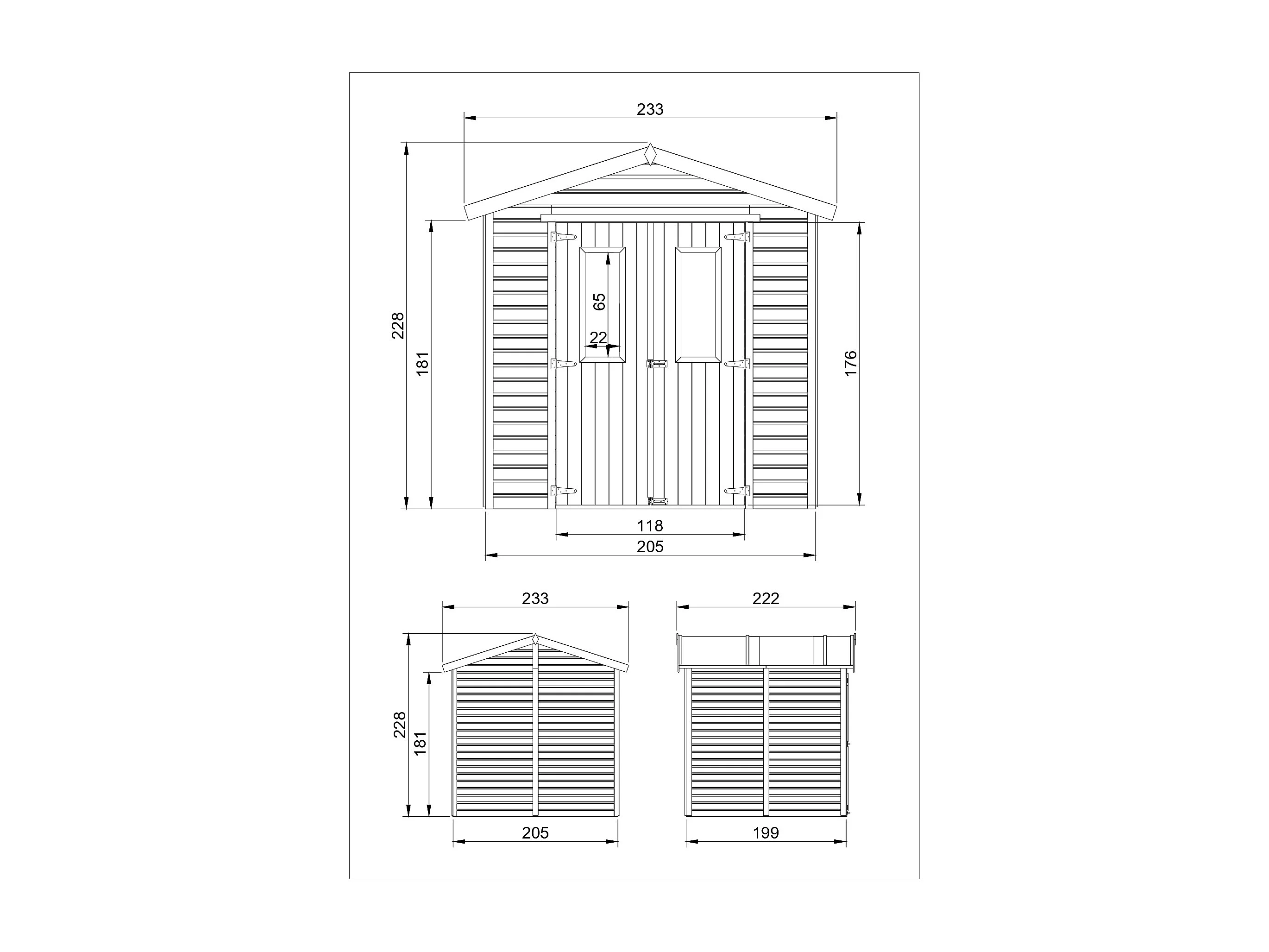 Casa da giardino in legno con pavimento impregnato - H228x222x233 cm / 4.08 m²- M351C+M351G