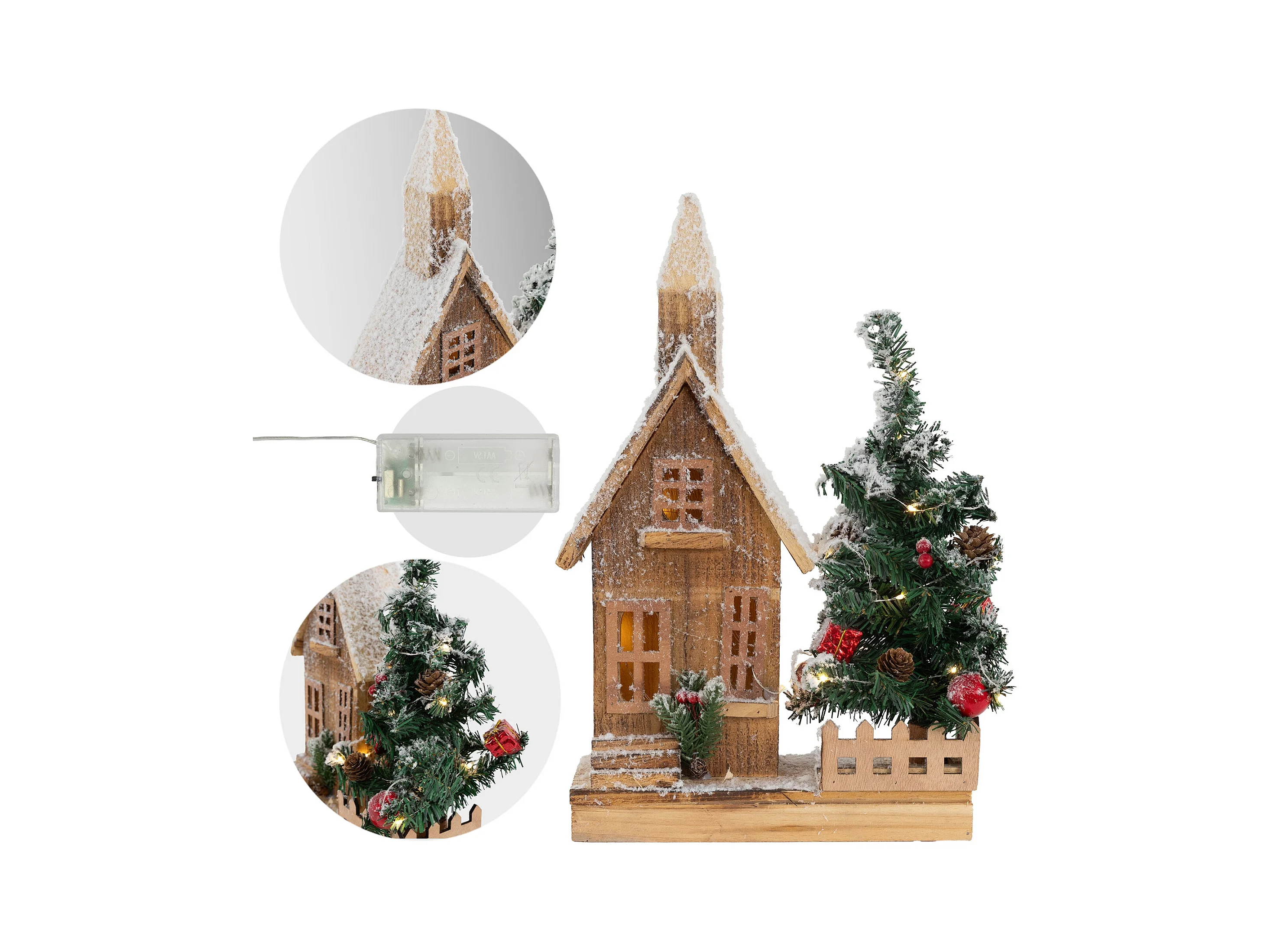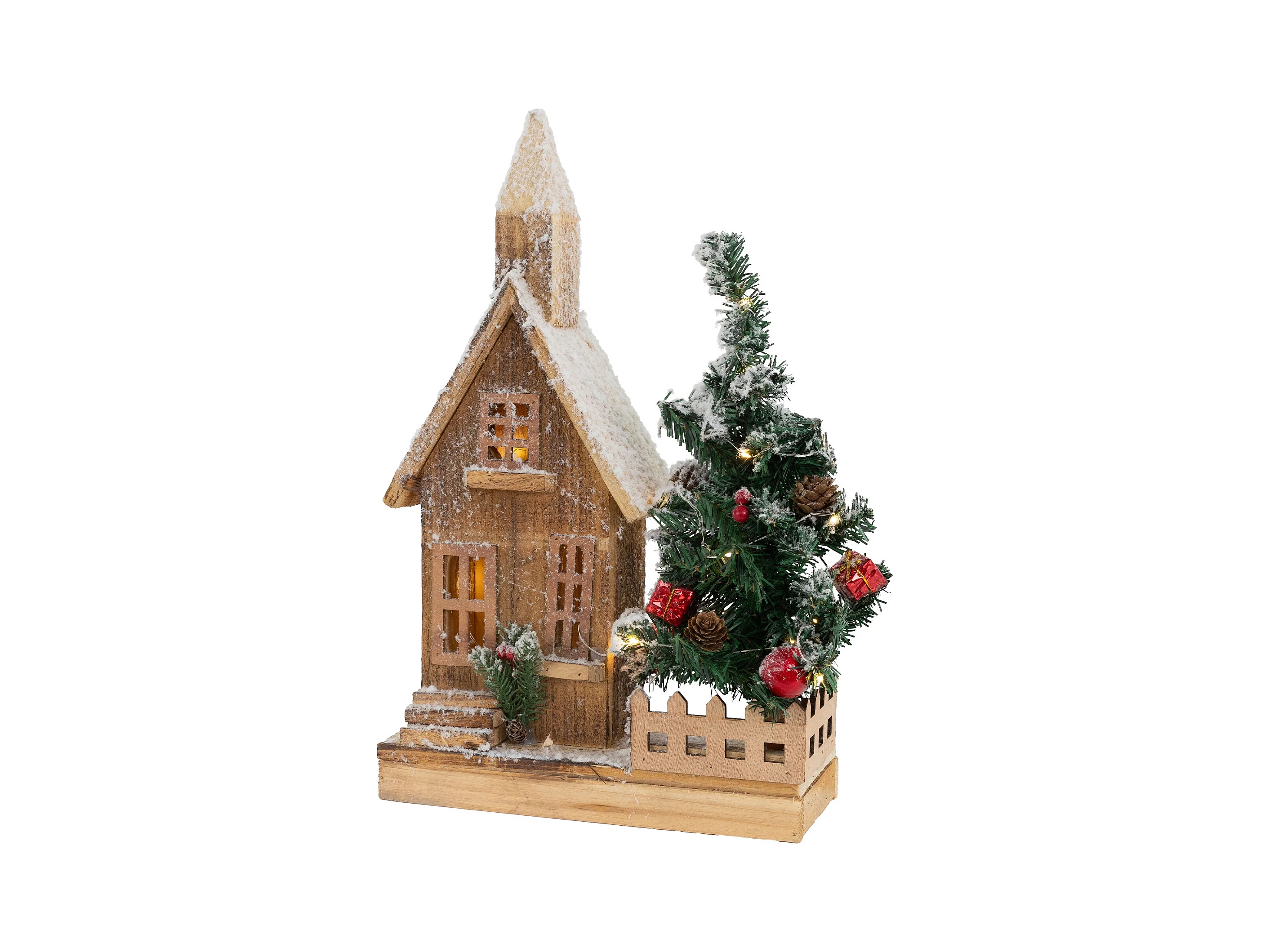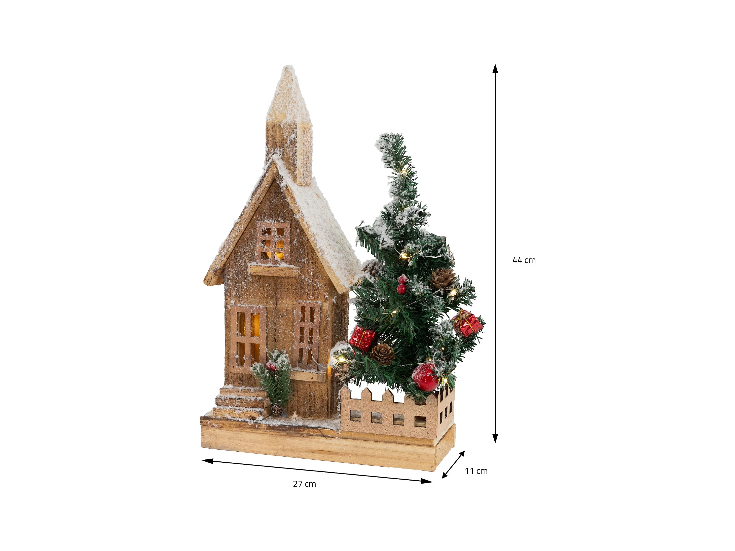 Casetta di Natale con luci decorazione in legno ornamento a batteria 27x11x44 cm