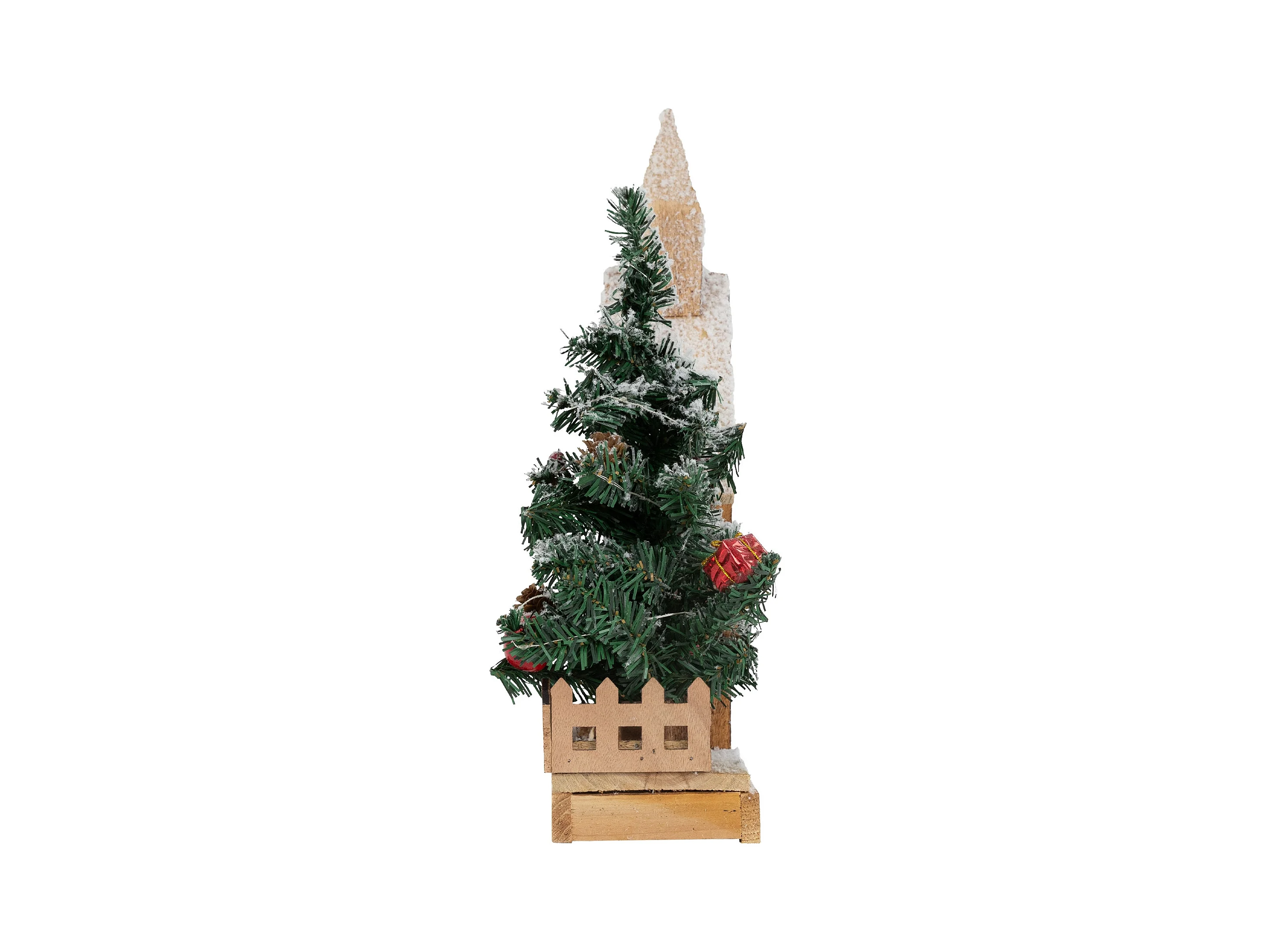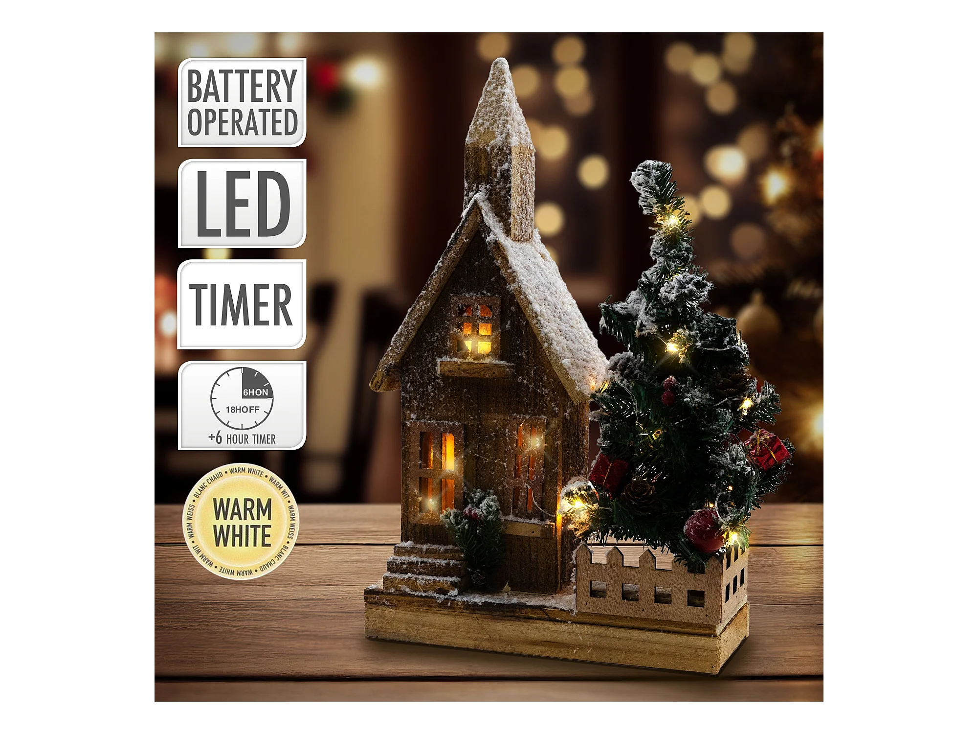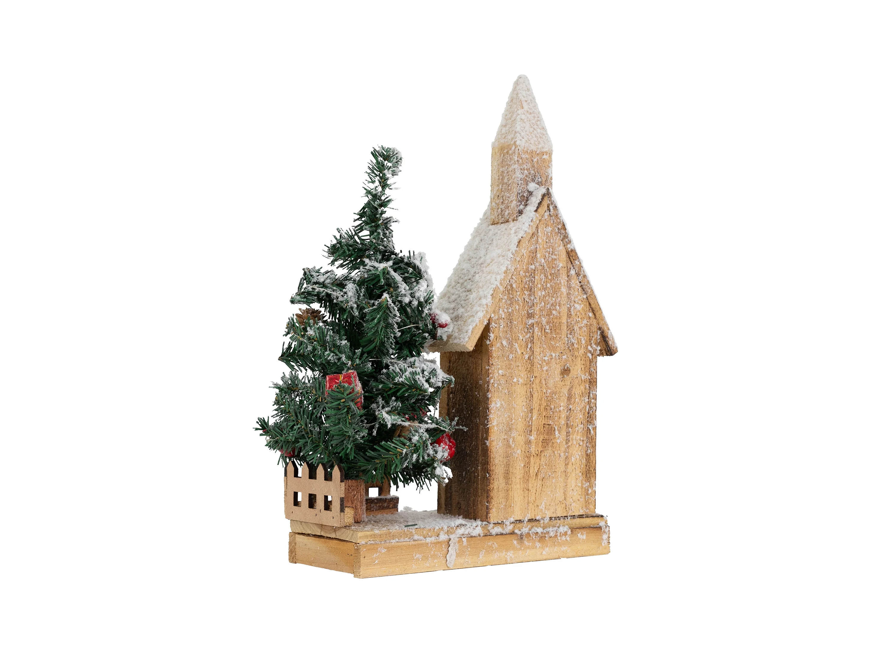 Casetta di Natale con luci decorazione in legno ornamento a batteria 27x11x44 cm