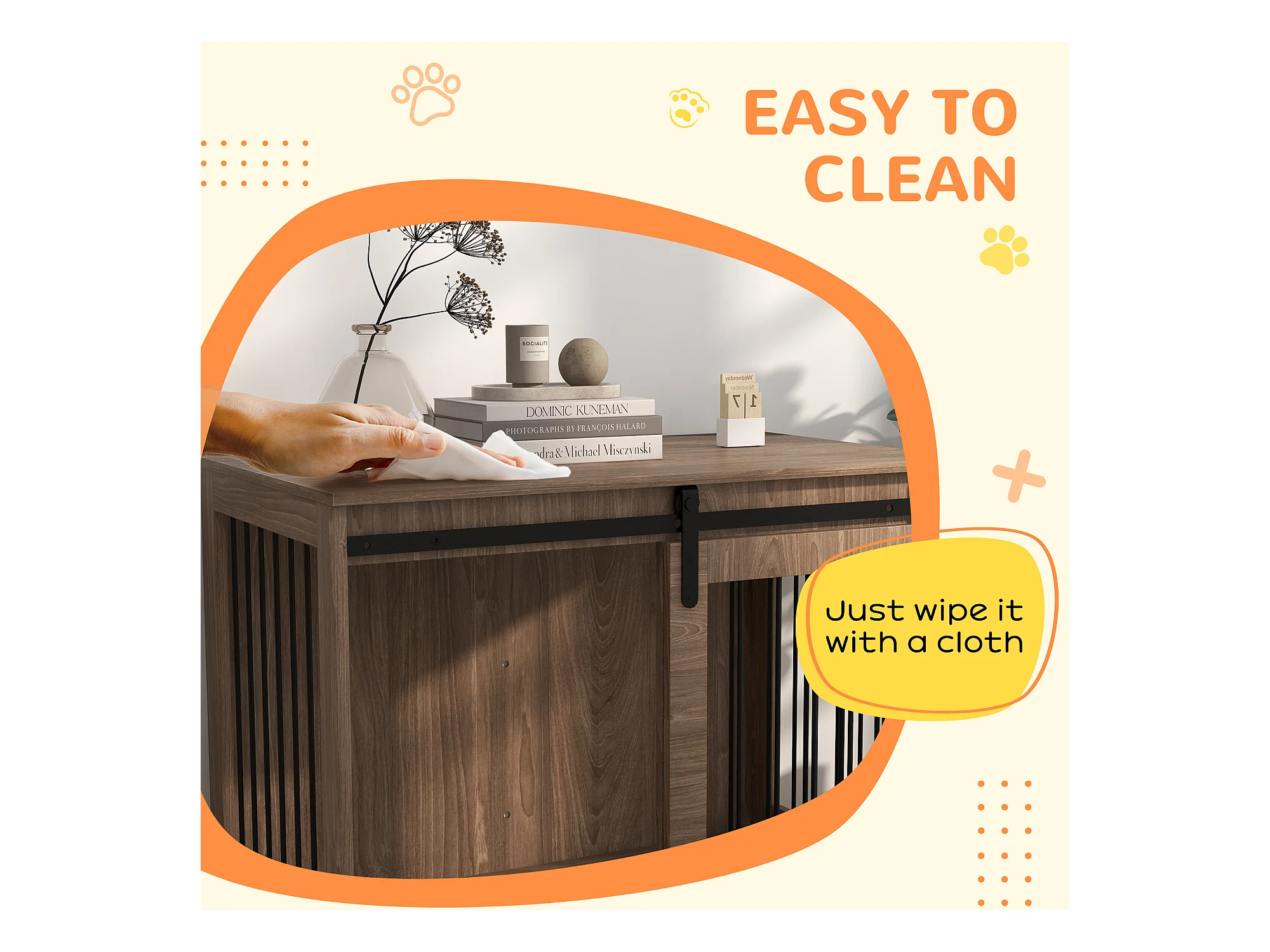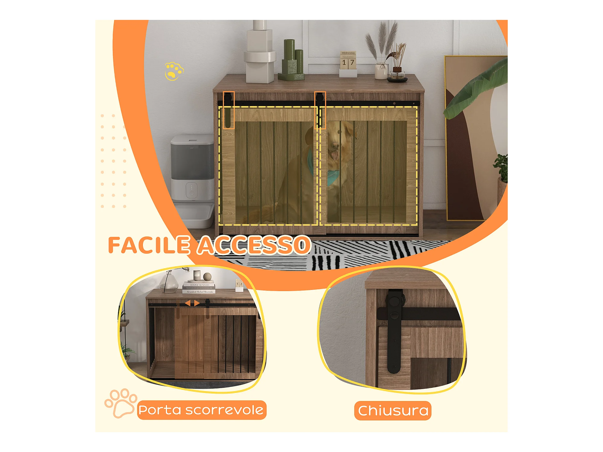 Casetta cani grandi con porta scorrevole per interno in legno 98x58x61cm