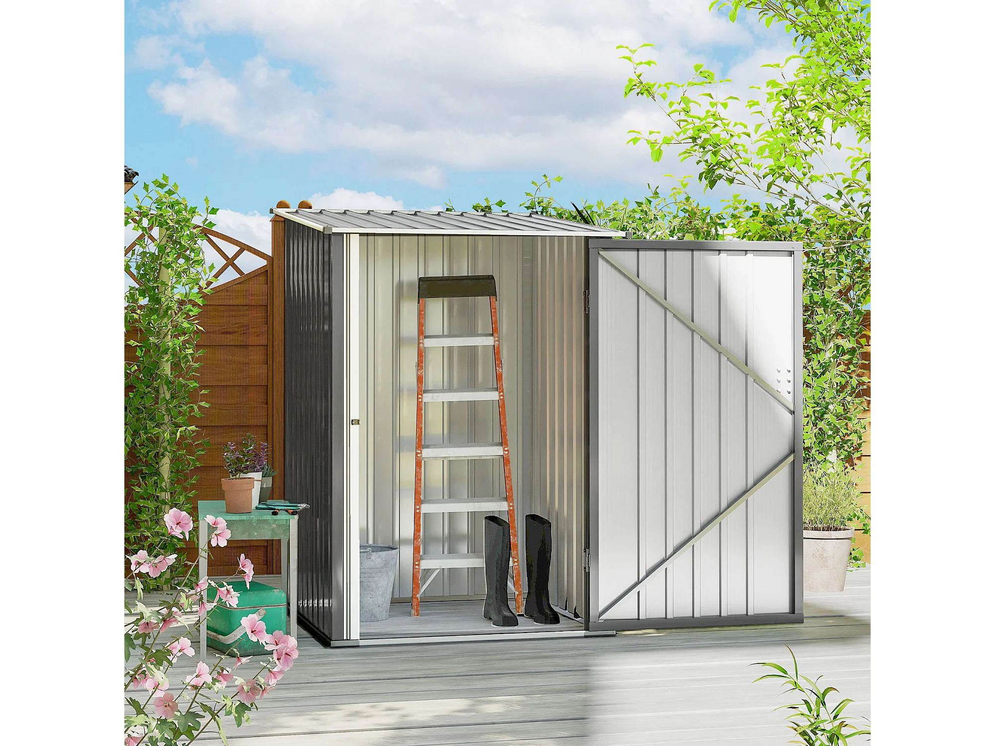 Capanno attrezzi in acciaio con tetto inclinato grigio