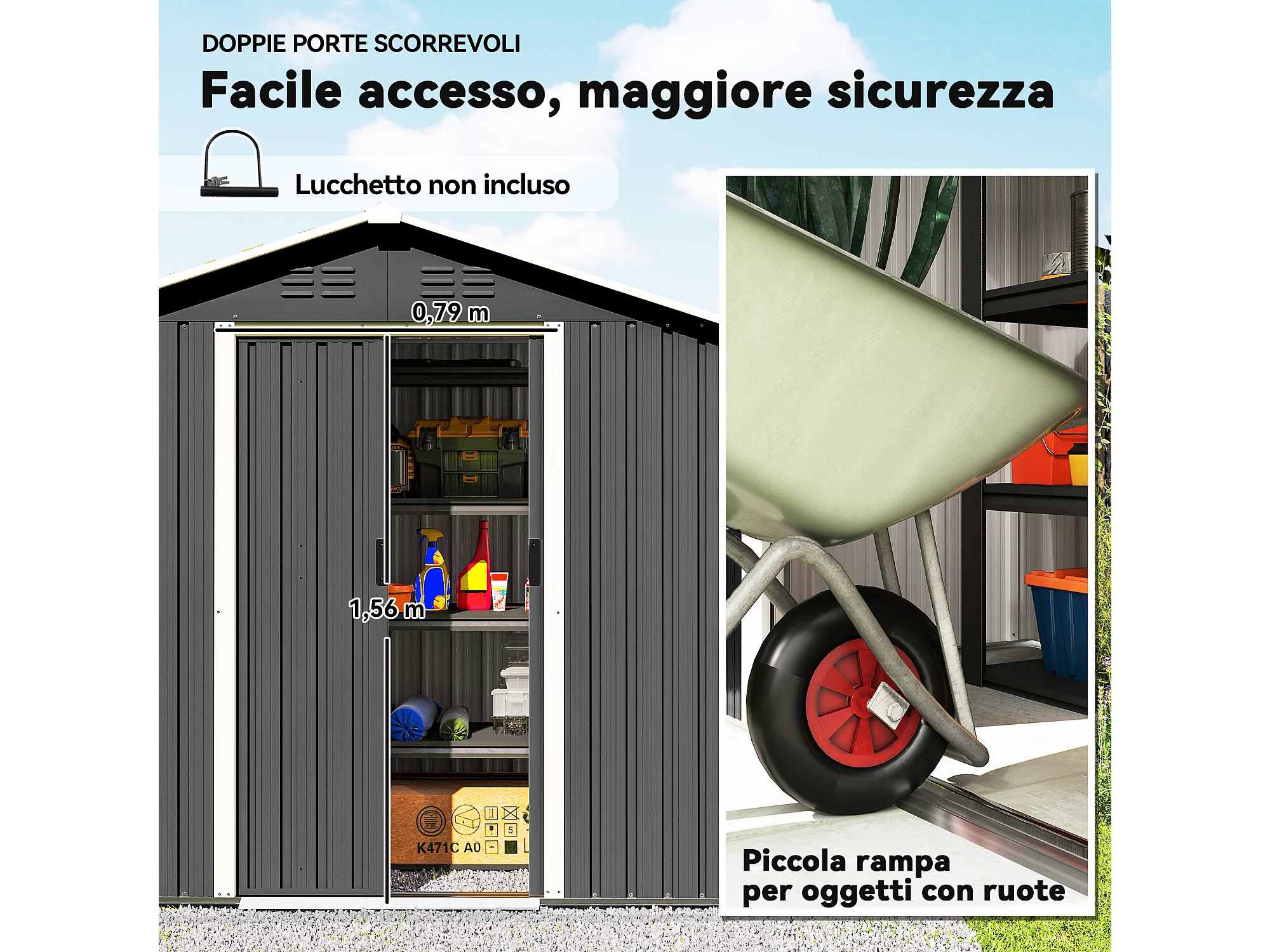 Casetta da giardino 1.8m2 in acciaio zincato grigio scuro
