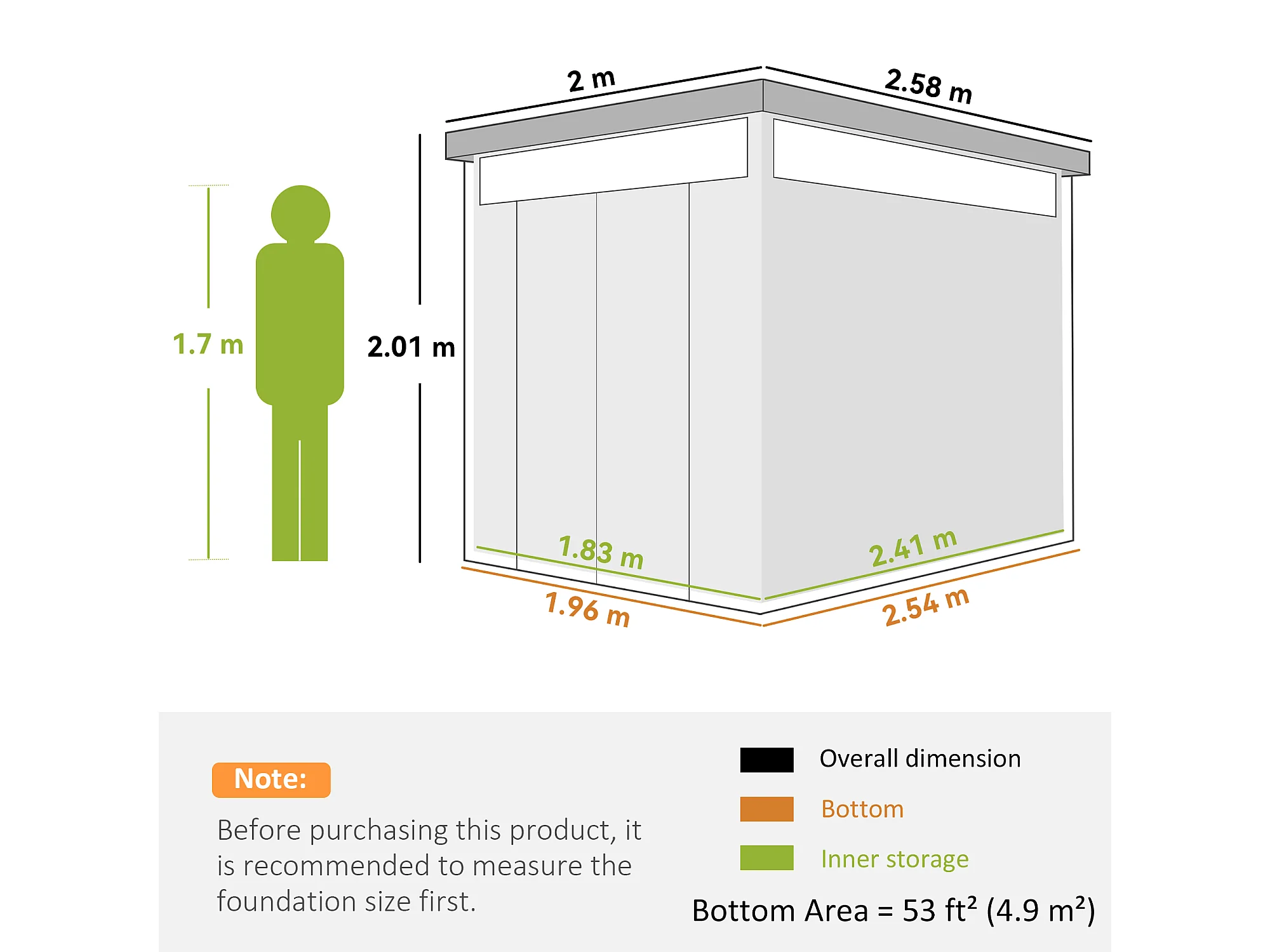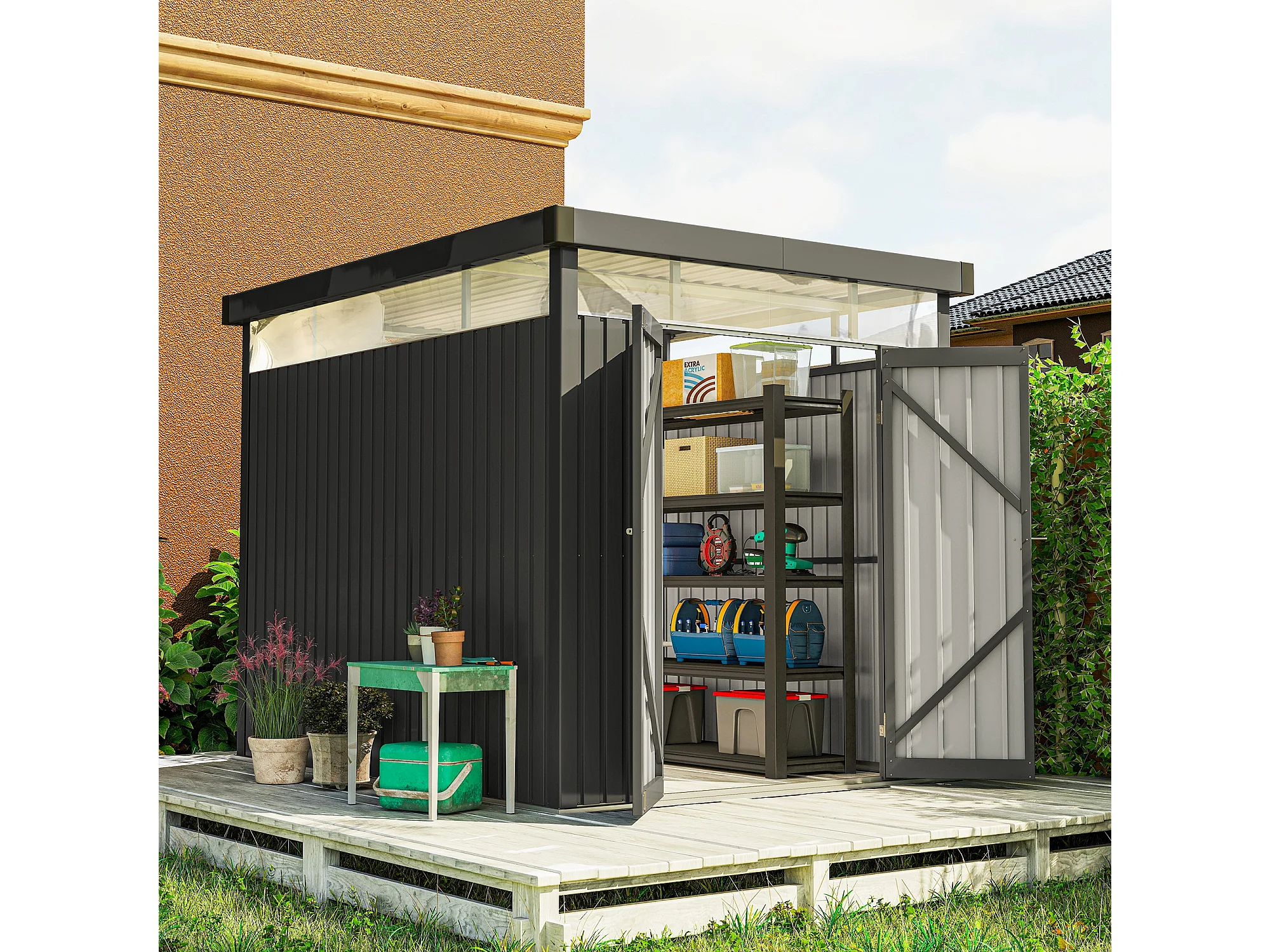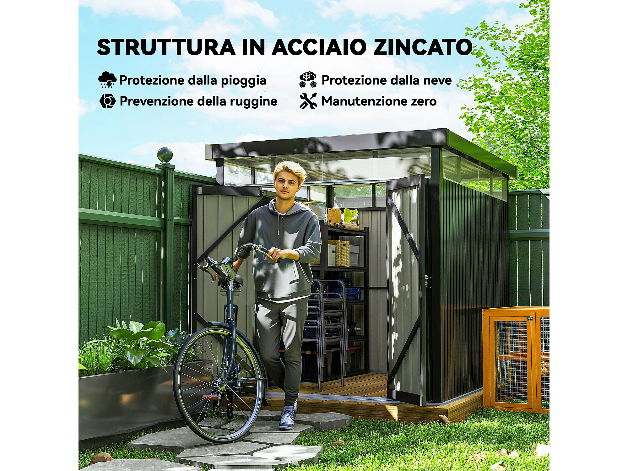 Casetta da giardino 4.9m² in acciaio zincato con fori di drenaggio