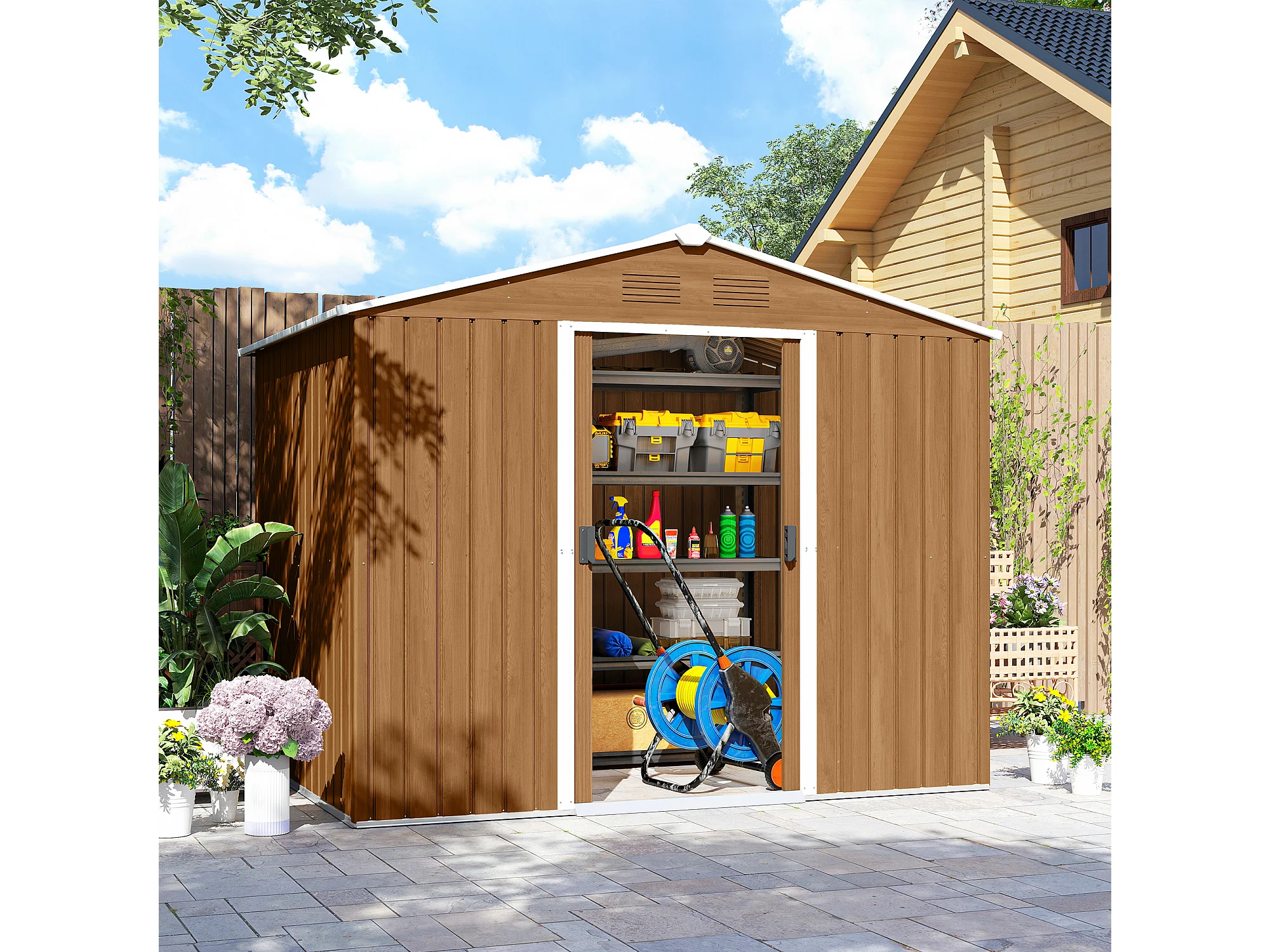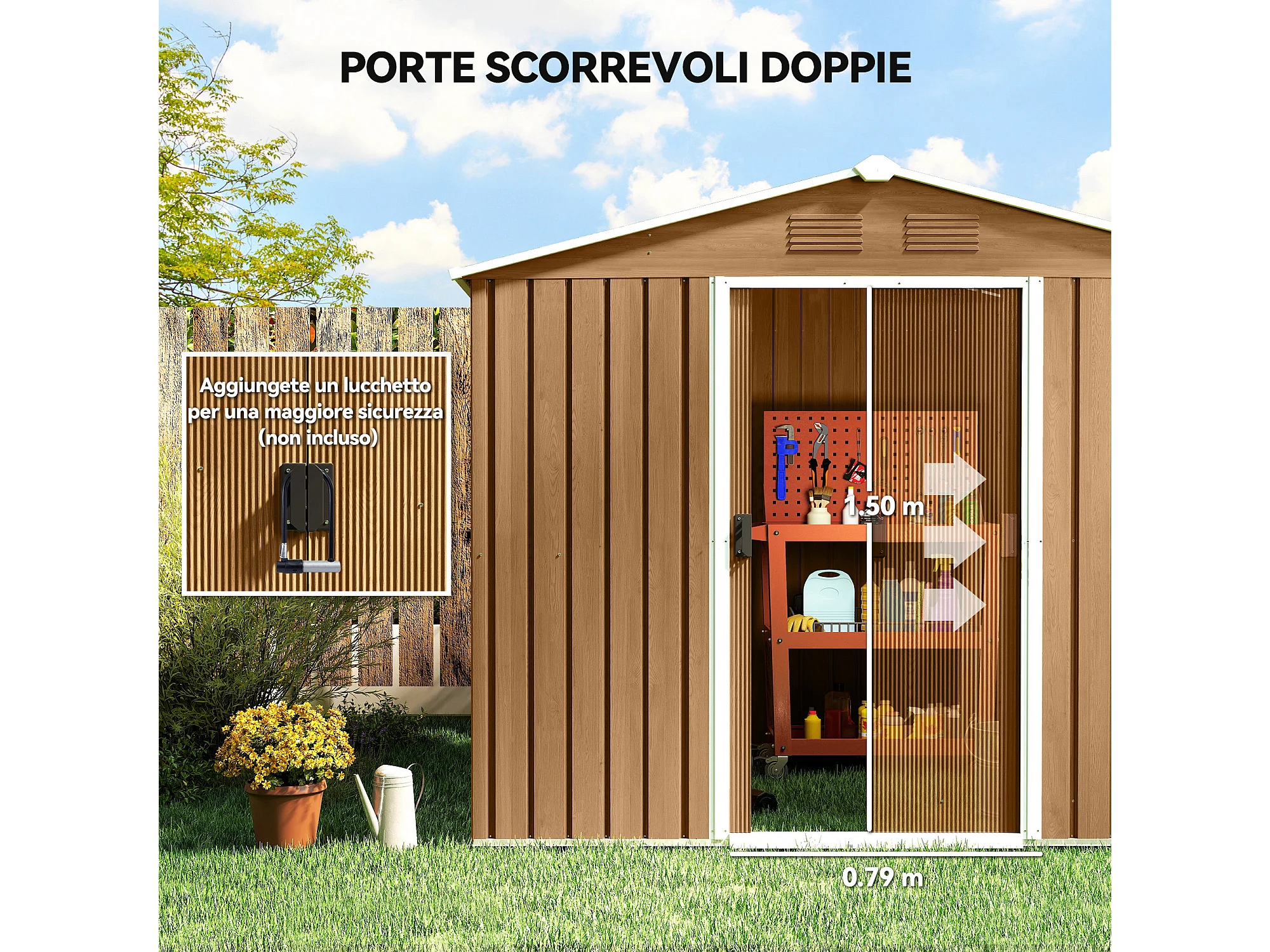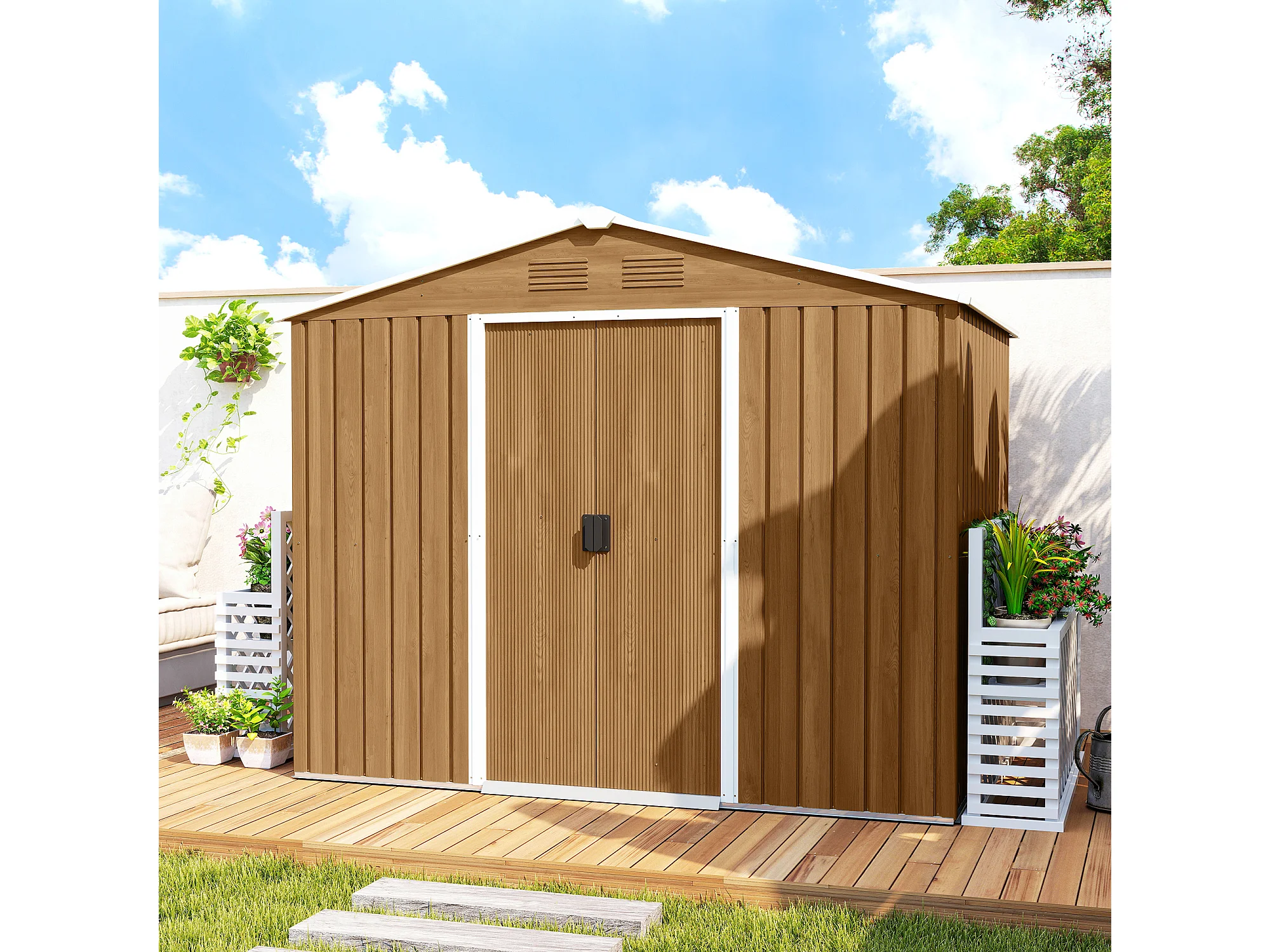 Casetta da giardino con doppia porta e 4 prese d'aria marrone legno
